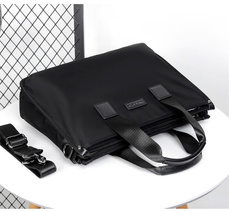 CavlslKcat business briefcase men's handbag large capacity commuter computer bag Oxford cloth casual business trip shoulder crossbody bag black large bag 15.6 inches 39*11*29cm
