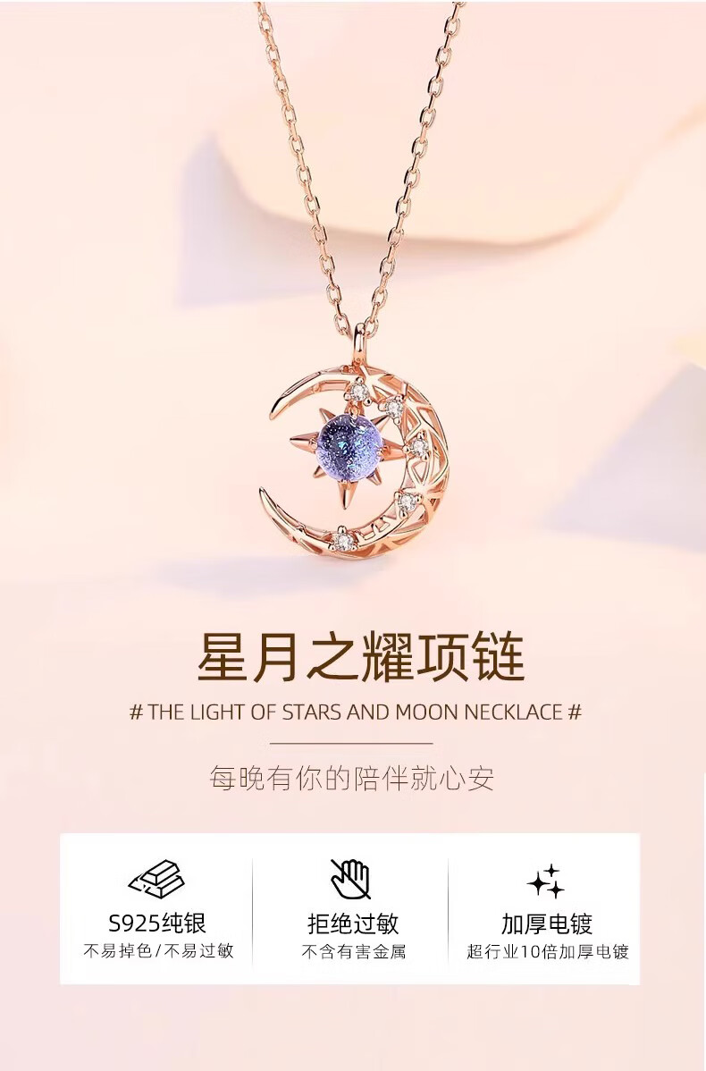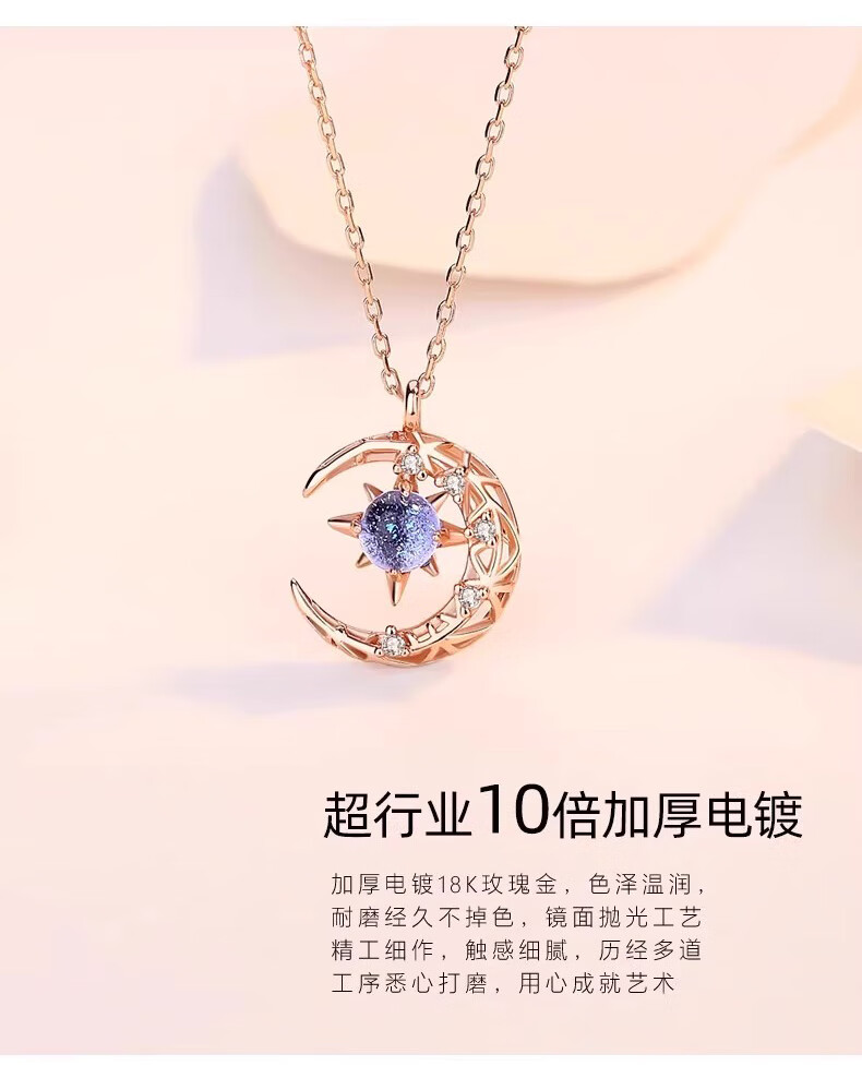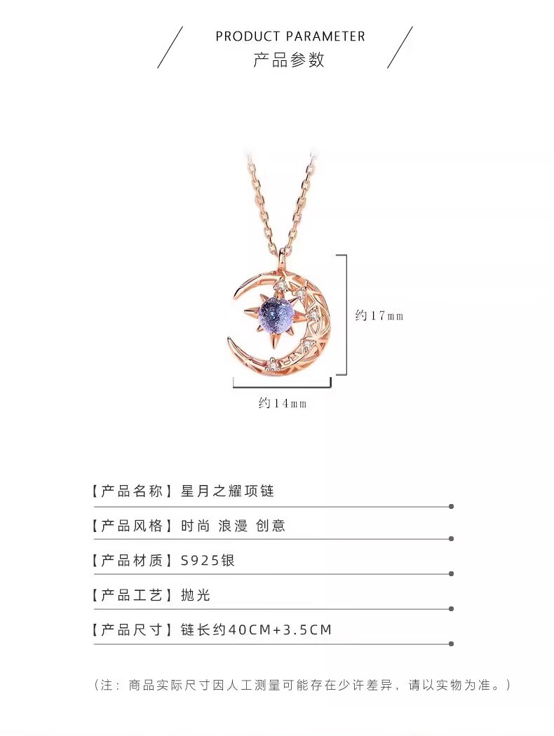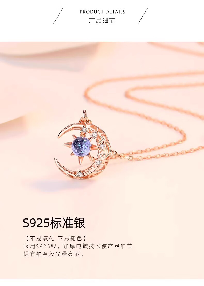 HYPATIA Necklace for Women Star and Moon Glory 925 Silver Clavicle Chain Light Luxurious and High-Level Confession Valentine's Day Gift for Girlfriend Star and Moon Glory Necklace-Rose Gold