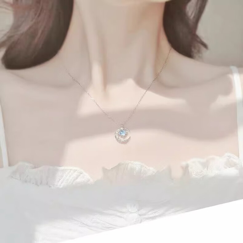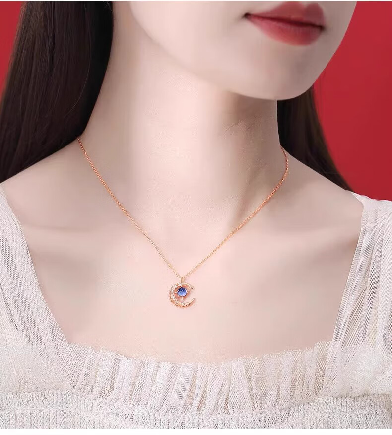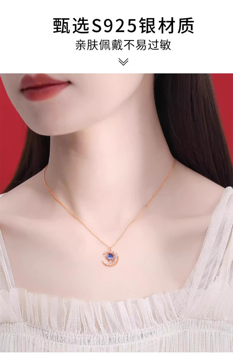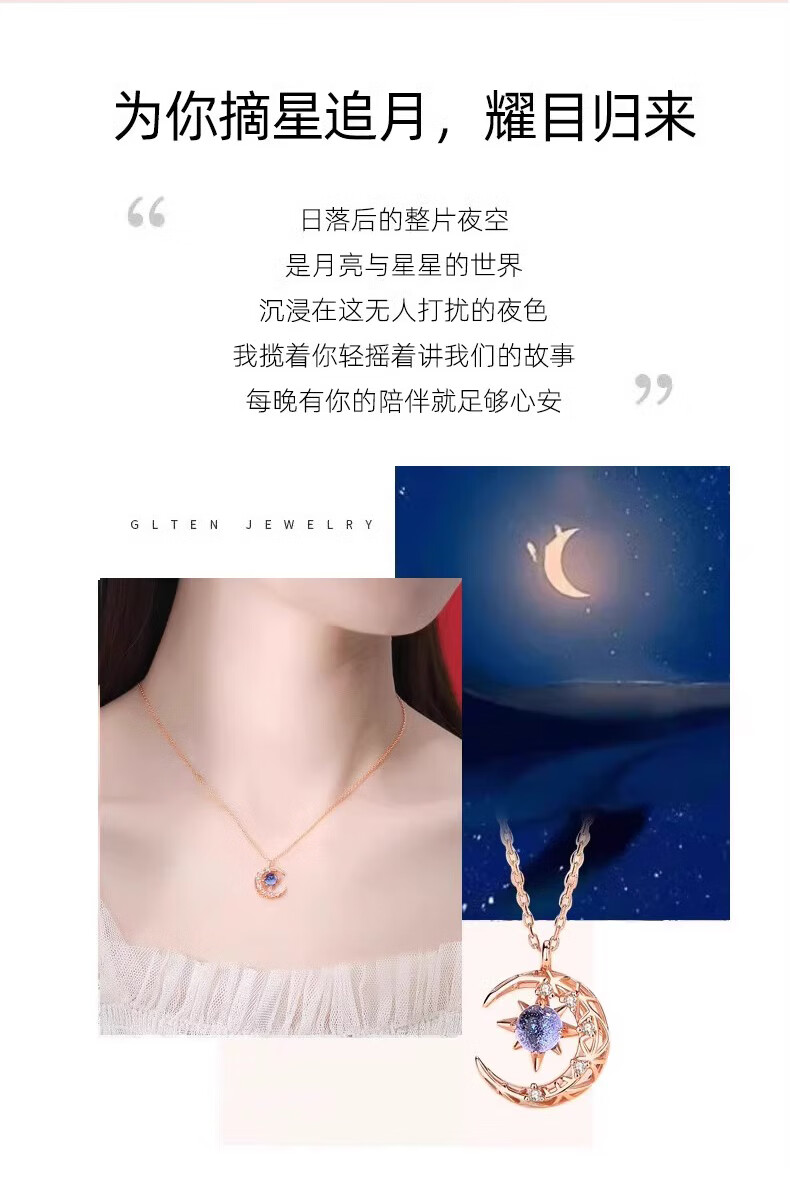 HYPATIA Necklace for Women Star and Moon Glory 925 Silver Clavicle Chain Light Luxurious and High-Level Confession Valentine's Day Gift for Girlfriend Star and Moon Glory Necklace-Rose Gold