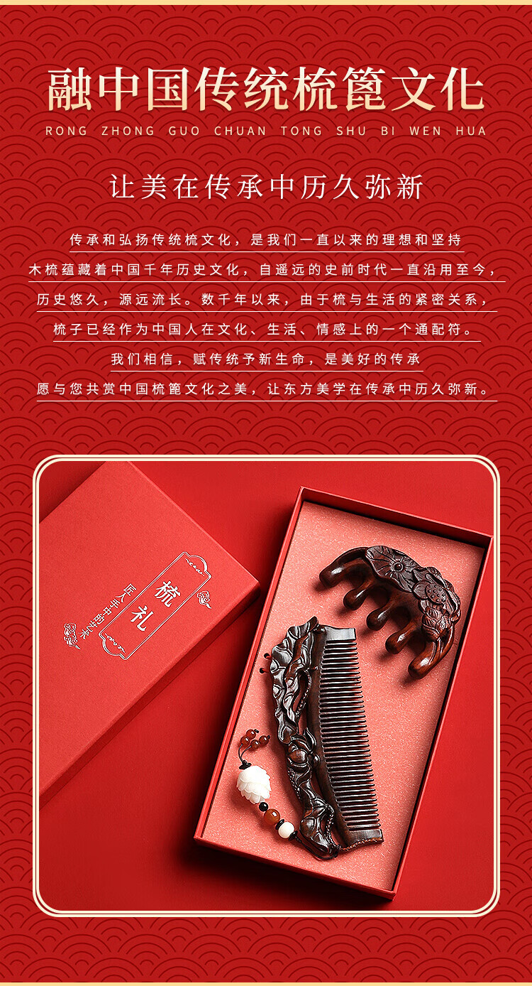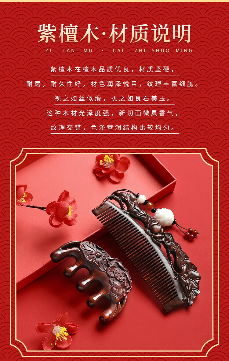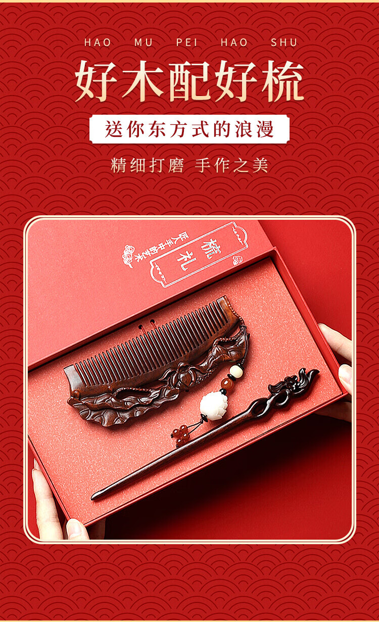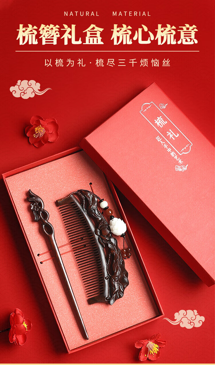 Dingjing hairpin ancient style hairpin comb women's sandalwood comb gift box birthday gift for girls to give to girlfriends high-end niche practical TY113 sandalwood comb + hairpin - with gift box gift bag