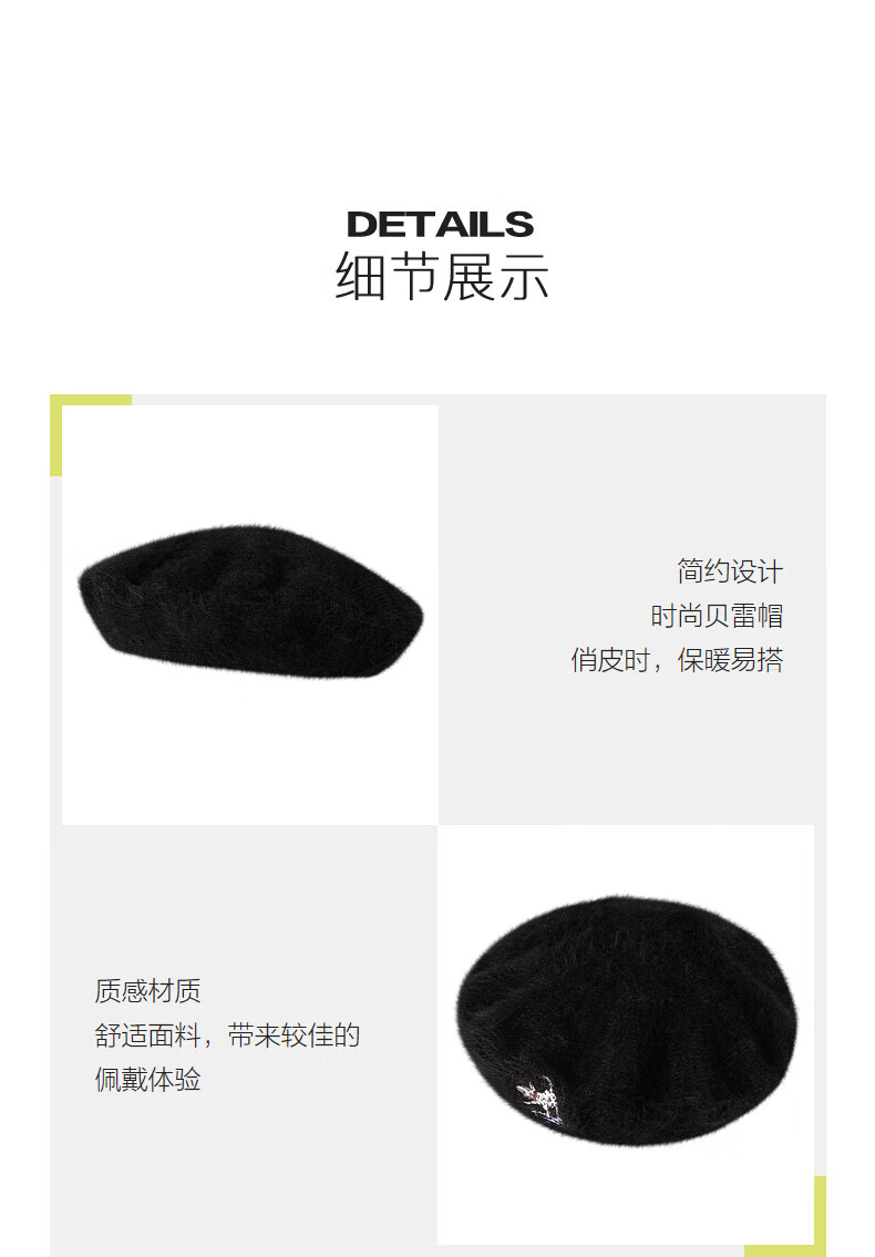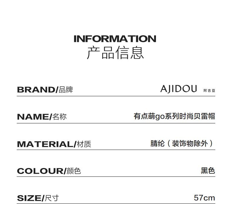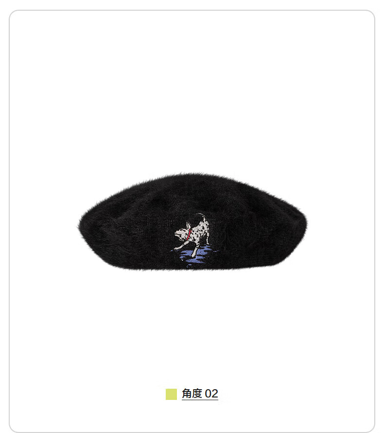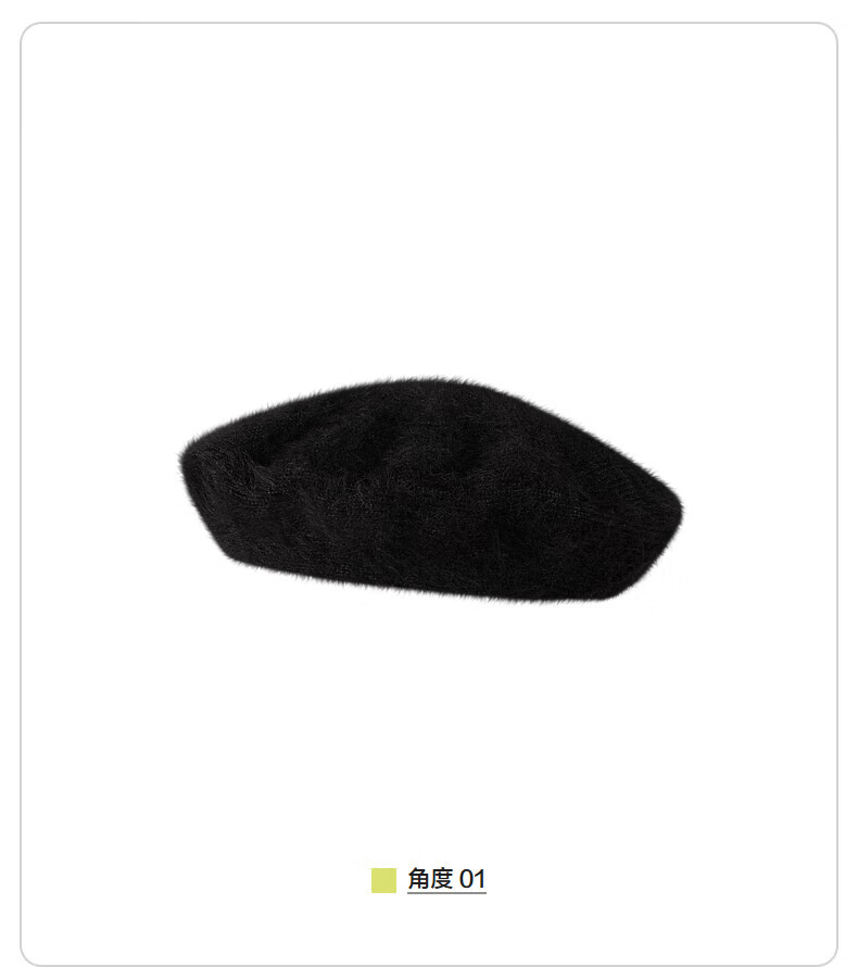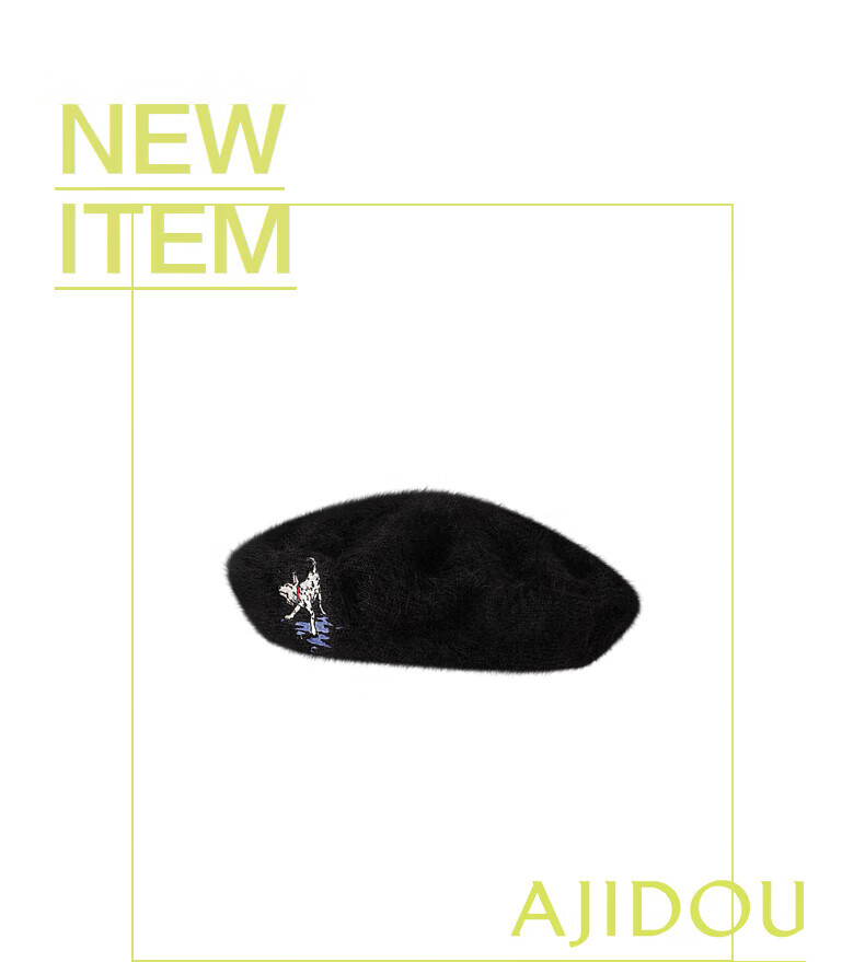 AJIDOU Ajidou beret women's simple, fashionable and versatile cooling plus velvet warm counter same style hat black one size