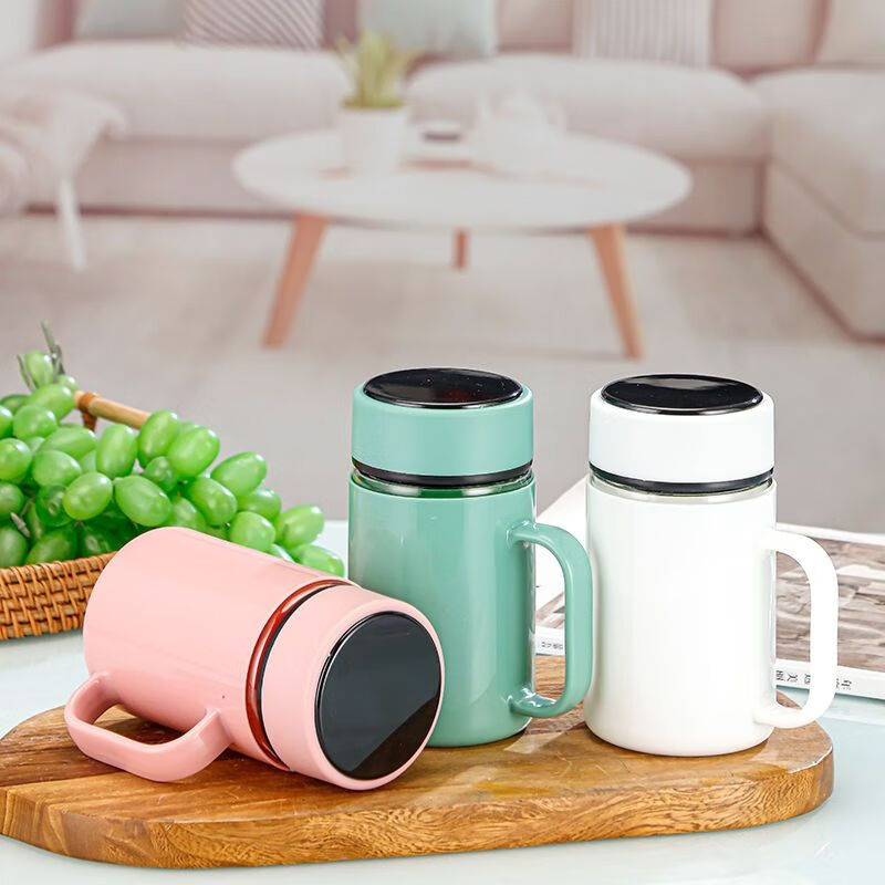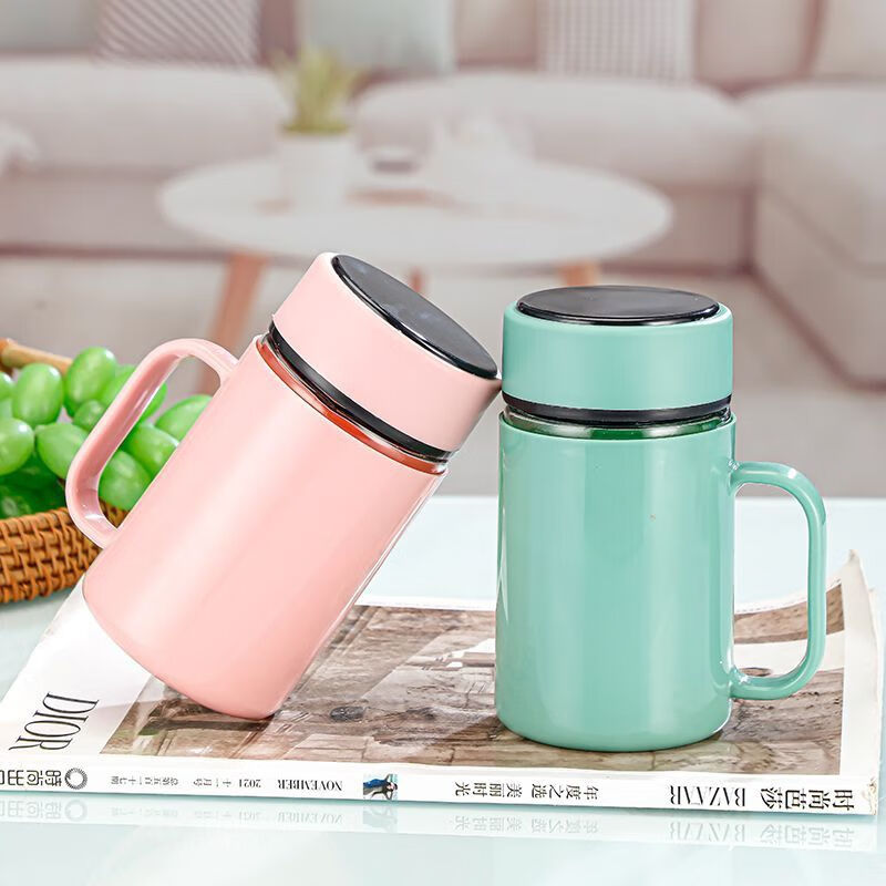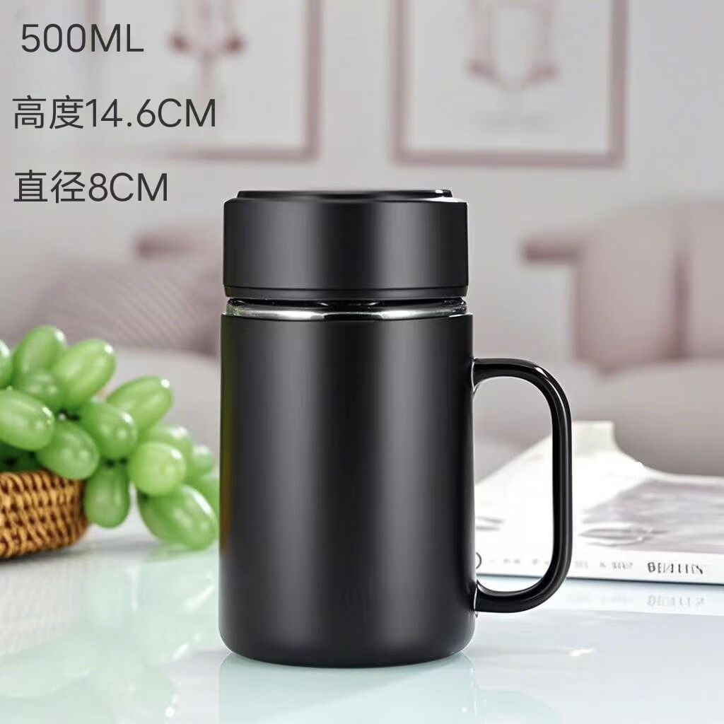 New teacup glass insulated glass large capacity with tea separator handle men and women water cup handle cup black 500ml 1 piece