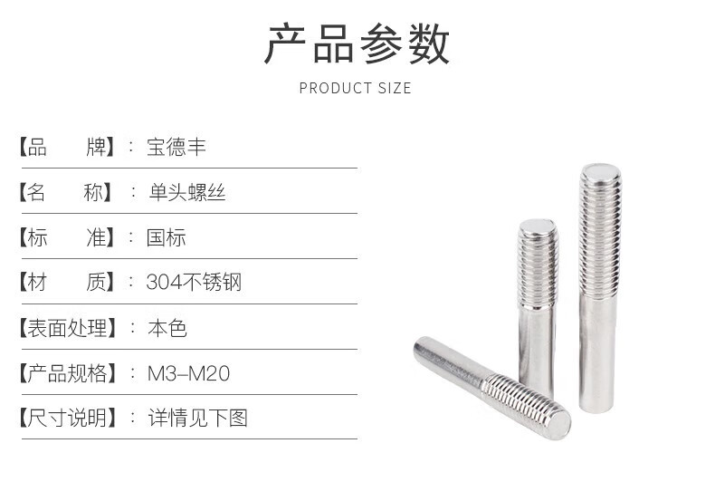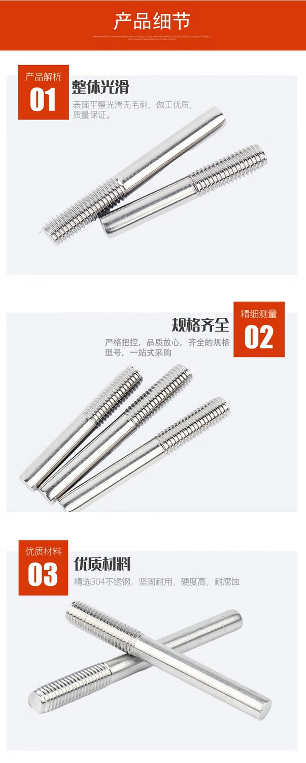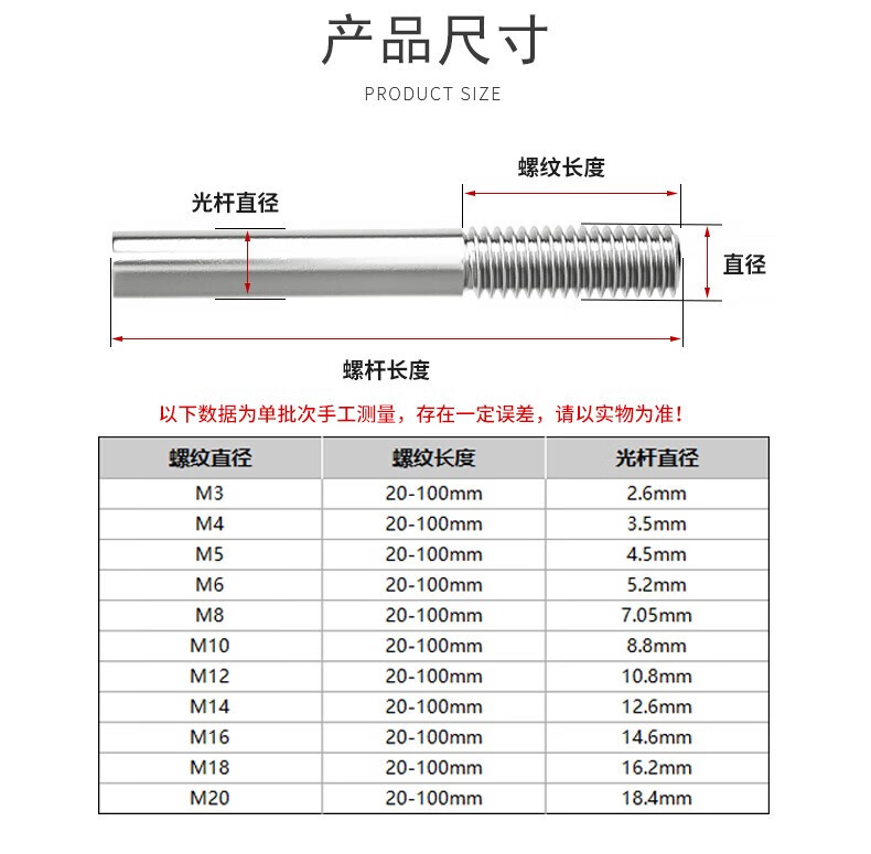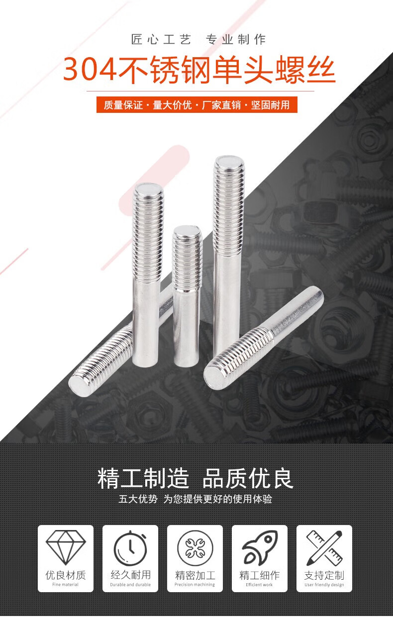 Ben Xinnong 304 stainless steel single-head screw headless half-thread bolt lengthened screw rod one-end thread welding rod M3x450 (10 pieces)