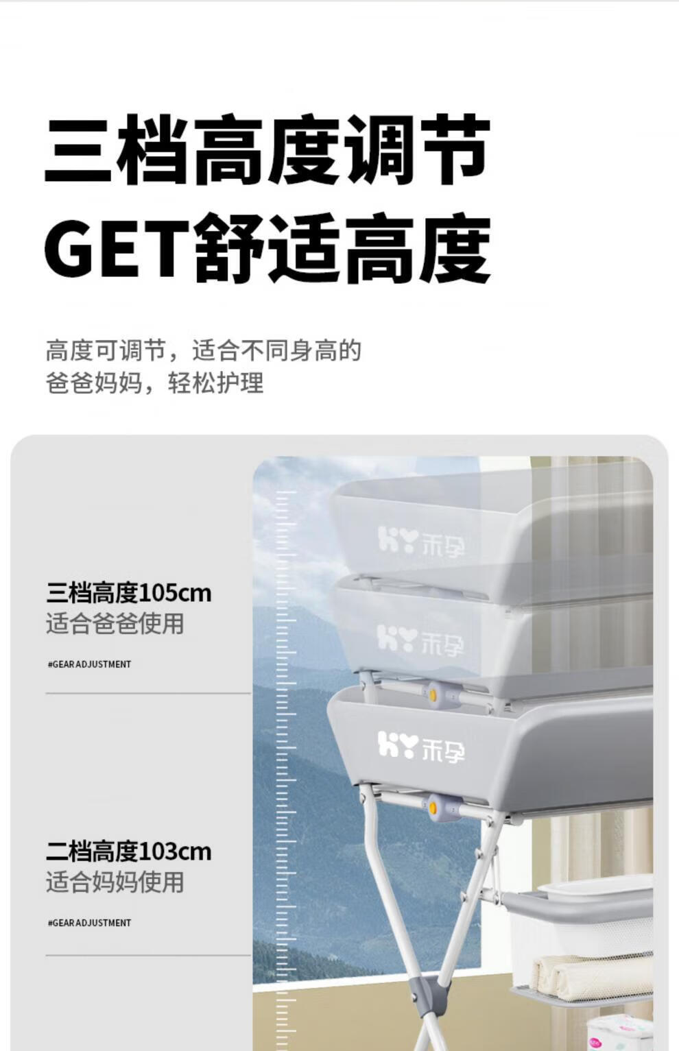 Diaper table, infant care table, bed, diaper changing, multi-functional foldable newborn touch table, A seventh generation Max-double-layer baby care model, eight horizontal