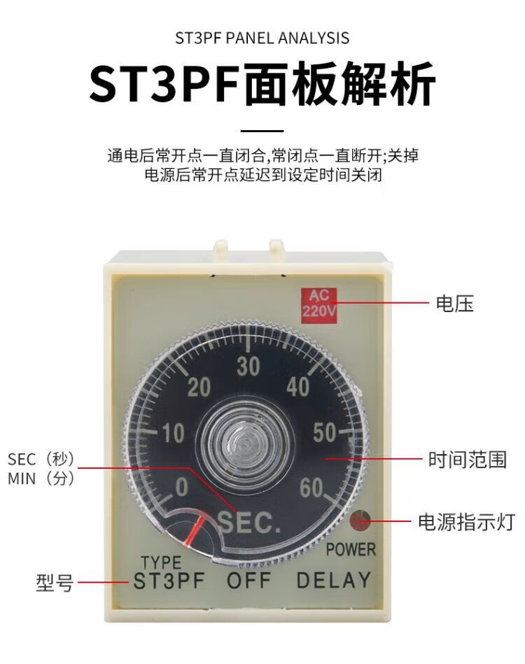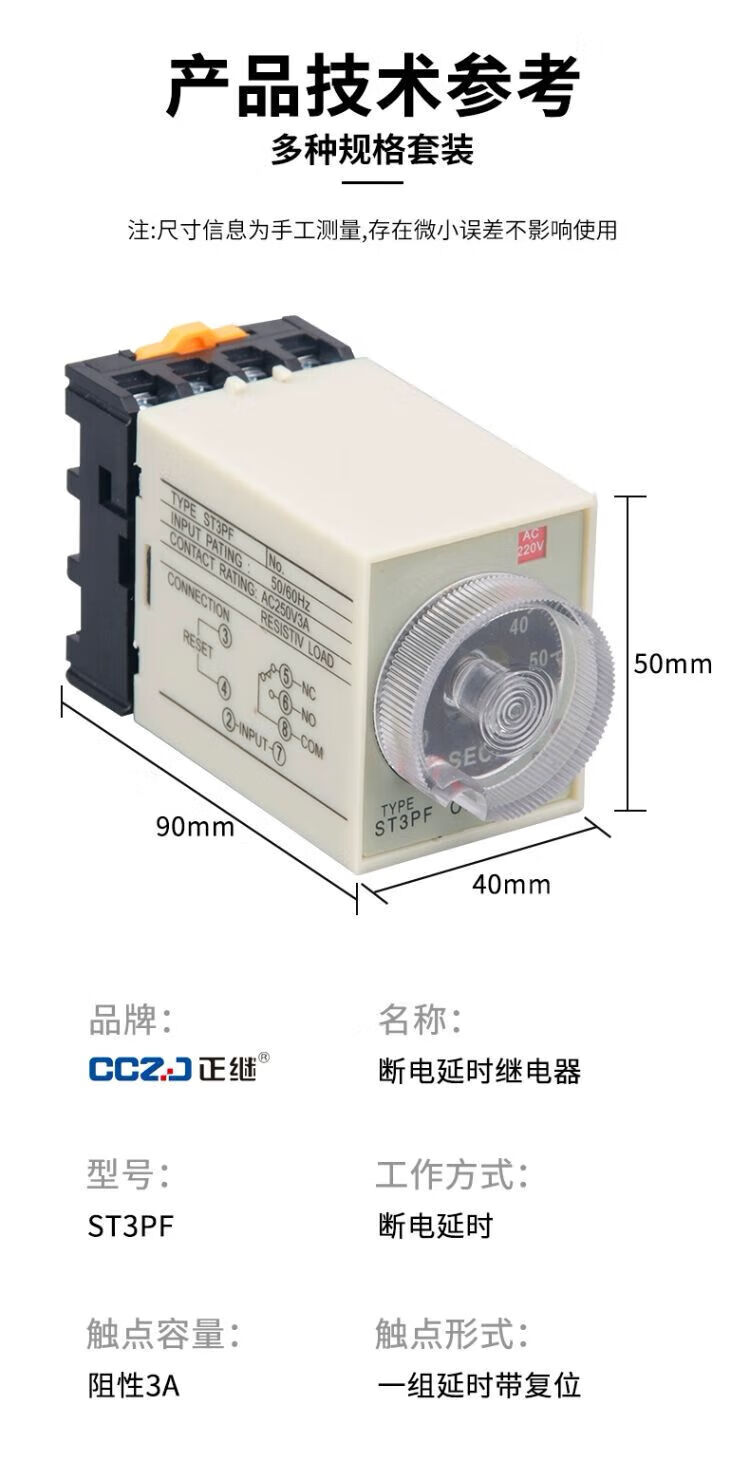DYQTST3PF power off delay time relay small AC220VDC24V AC 12V delay adjustable with scale ST3PF without base For other voltages, please contact customer service