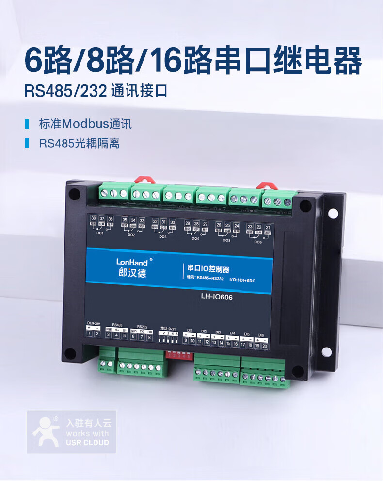 6/8/16-channel serial port relay output IO control switch 485232 input acquisition module industrial Modbus optional power supply 12V 1A