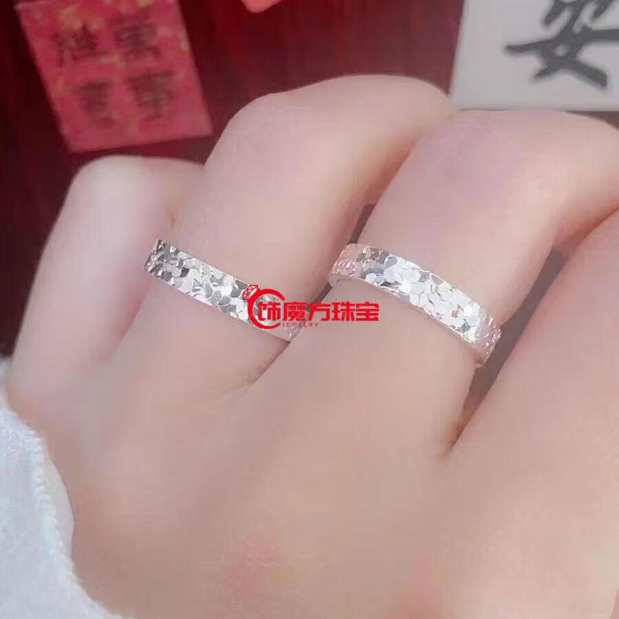 Guanpu Pavilion Fat Donglai quality pt950 platinum ring ring PT950 male and female internet celebrity simple fish scale crushed ice platinum single-sided crushed ice women's ring + counter packaging opening adjustable with test certificate