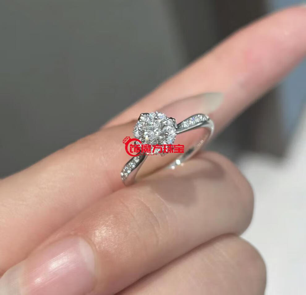 Guanpu Pavilion Fat Donglai's same style pt950 platinum moissanite diamond ring for women D color moissanite diamond proposal shining like stars and silver, thickened platinum 50 points D color moissanite, benchmarking South Africa No. 14