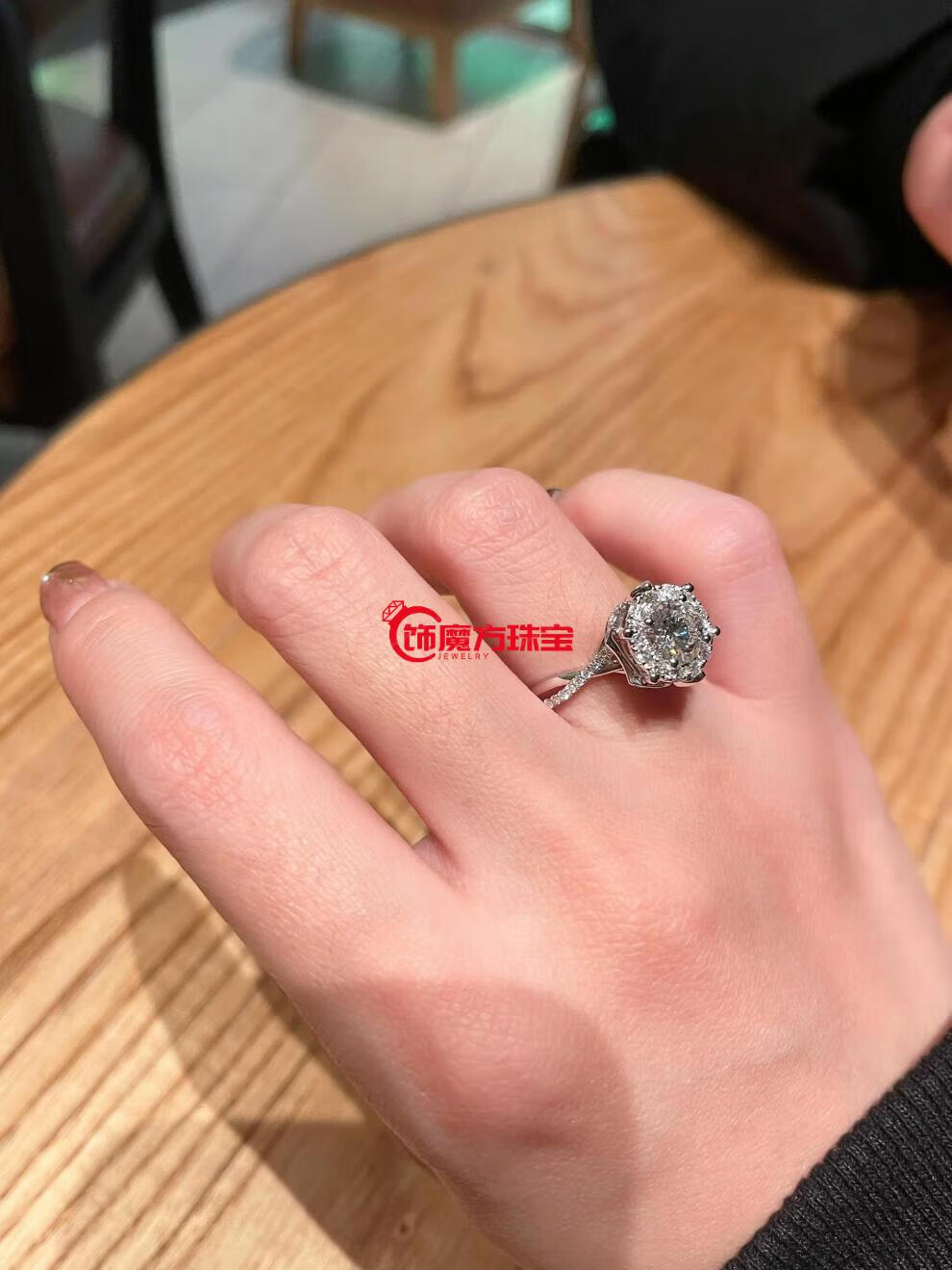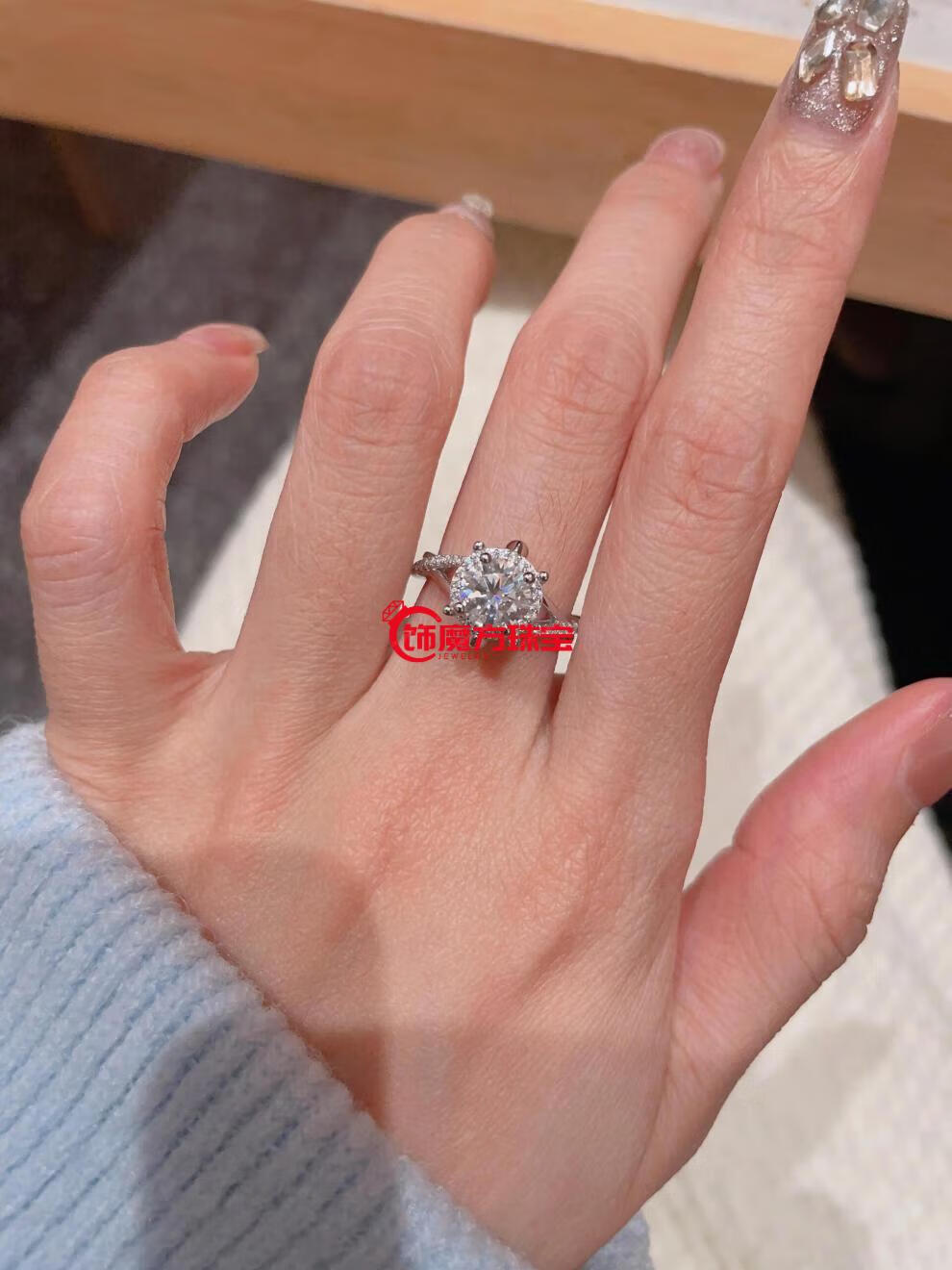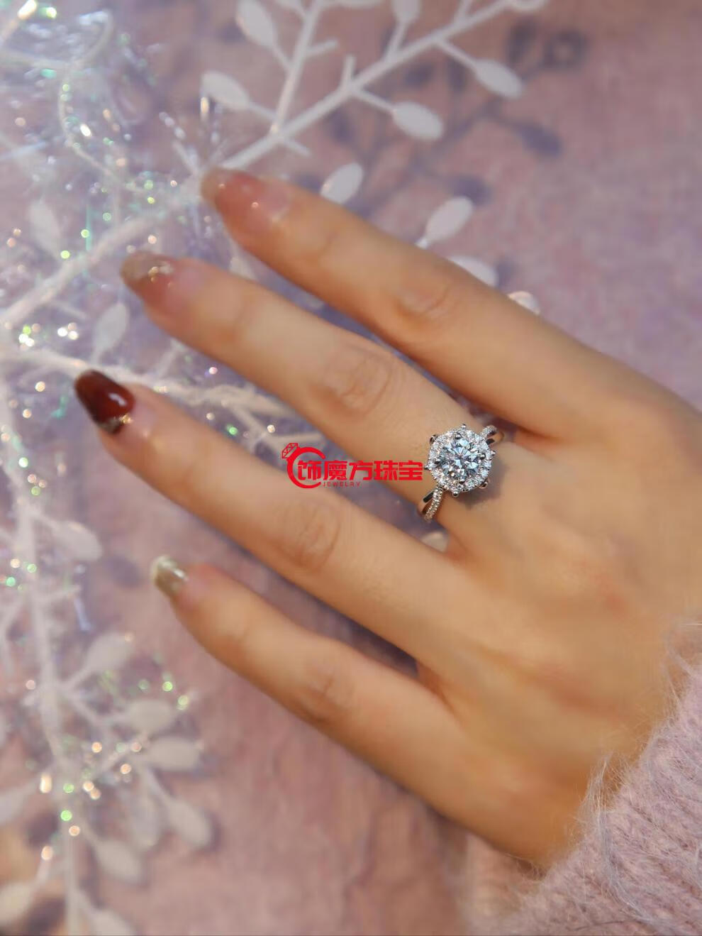 Guanpu Pavilion Fat Donglai quality pt950 platinum moissanite diamond ring women's moissanite diamond ring luxury 1g 2 carat proposal knot 2 carat D color moissanite thickened platinum plated benchmark No. 9