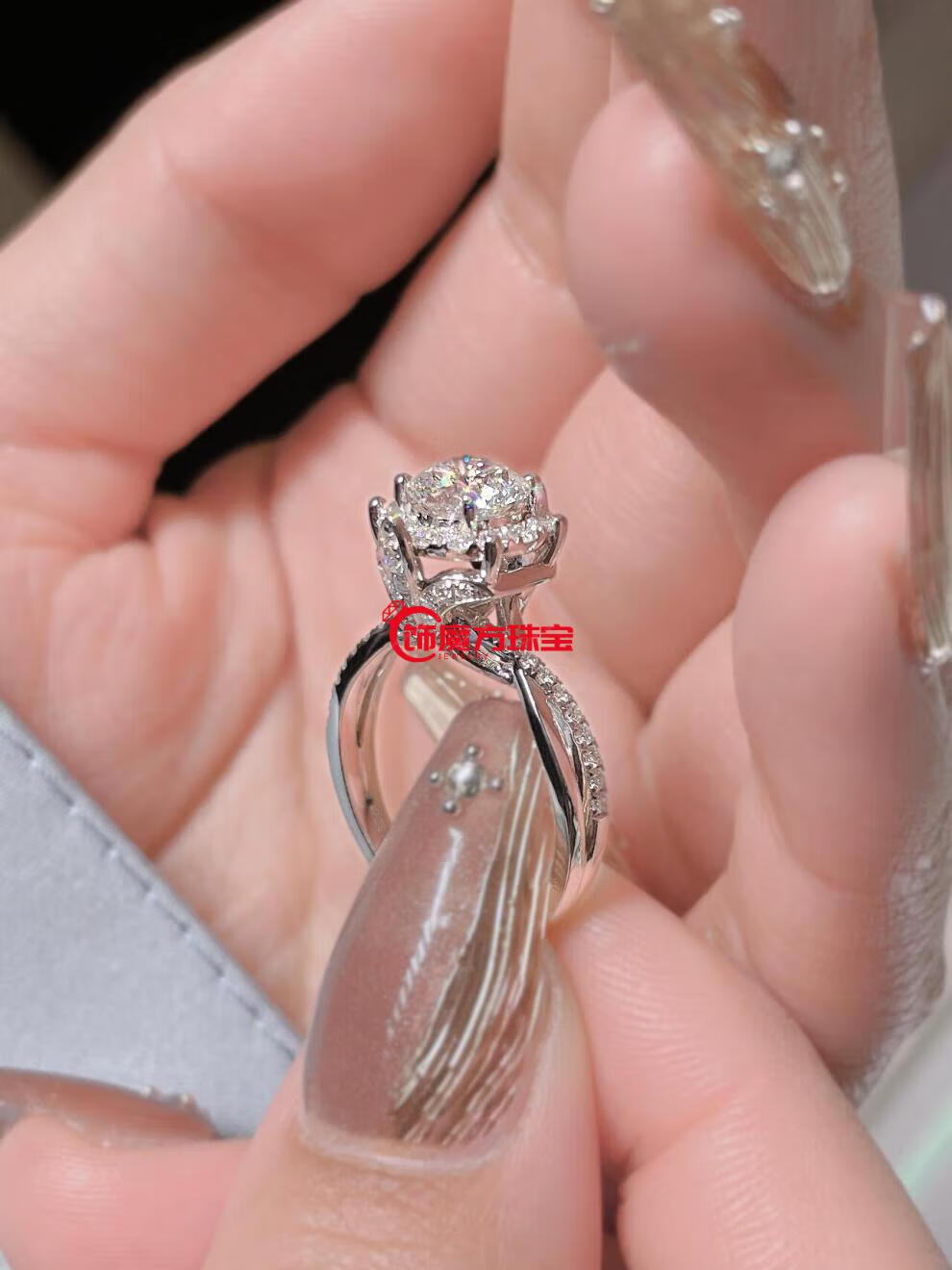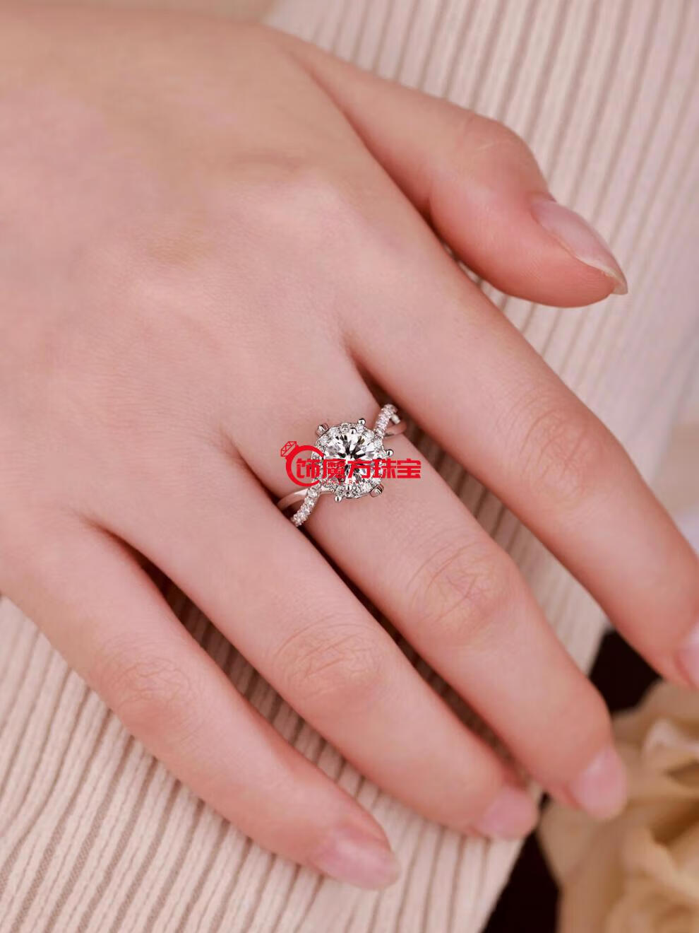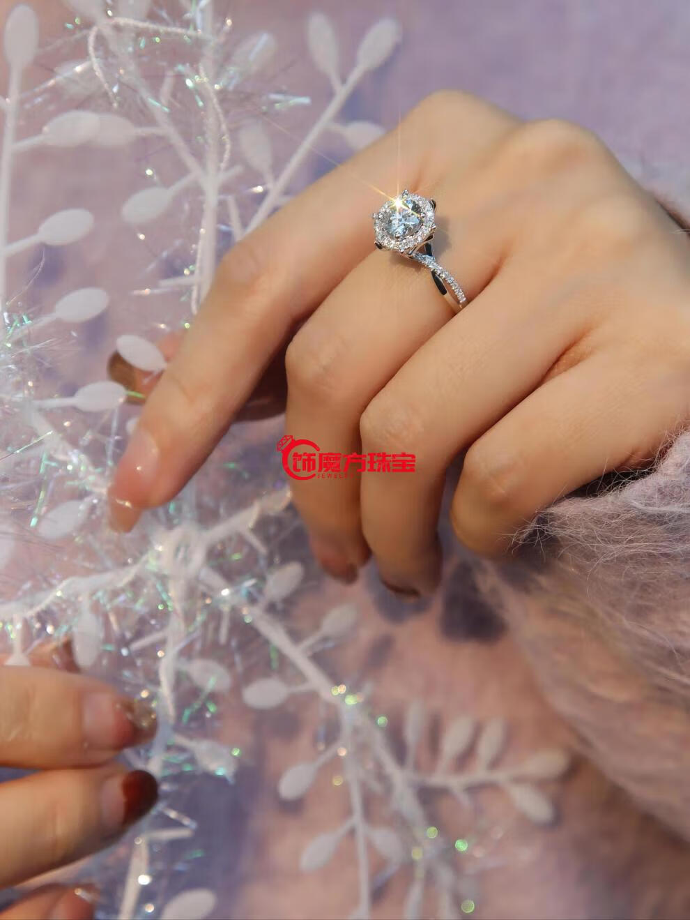 Guanpu Pavilion Fat Donglai quality pt950 platinum moissanite diamond ring women's moissanite diamond ring luxury 1g 2 carat proposal knot 2 carat D color moissanite thickened platinum plated benchmark No. 9