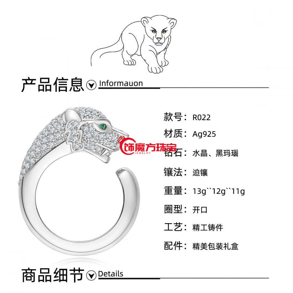 Guanpuge Fat Donglai quality pt950 platinum leopard head ring platinum men and women silver model live diamond lover inner diameter 16