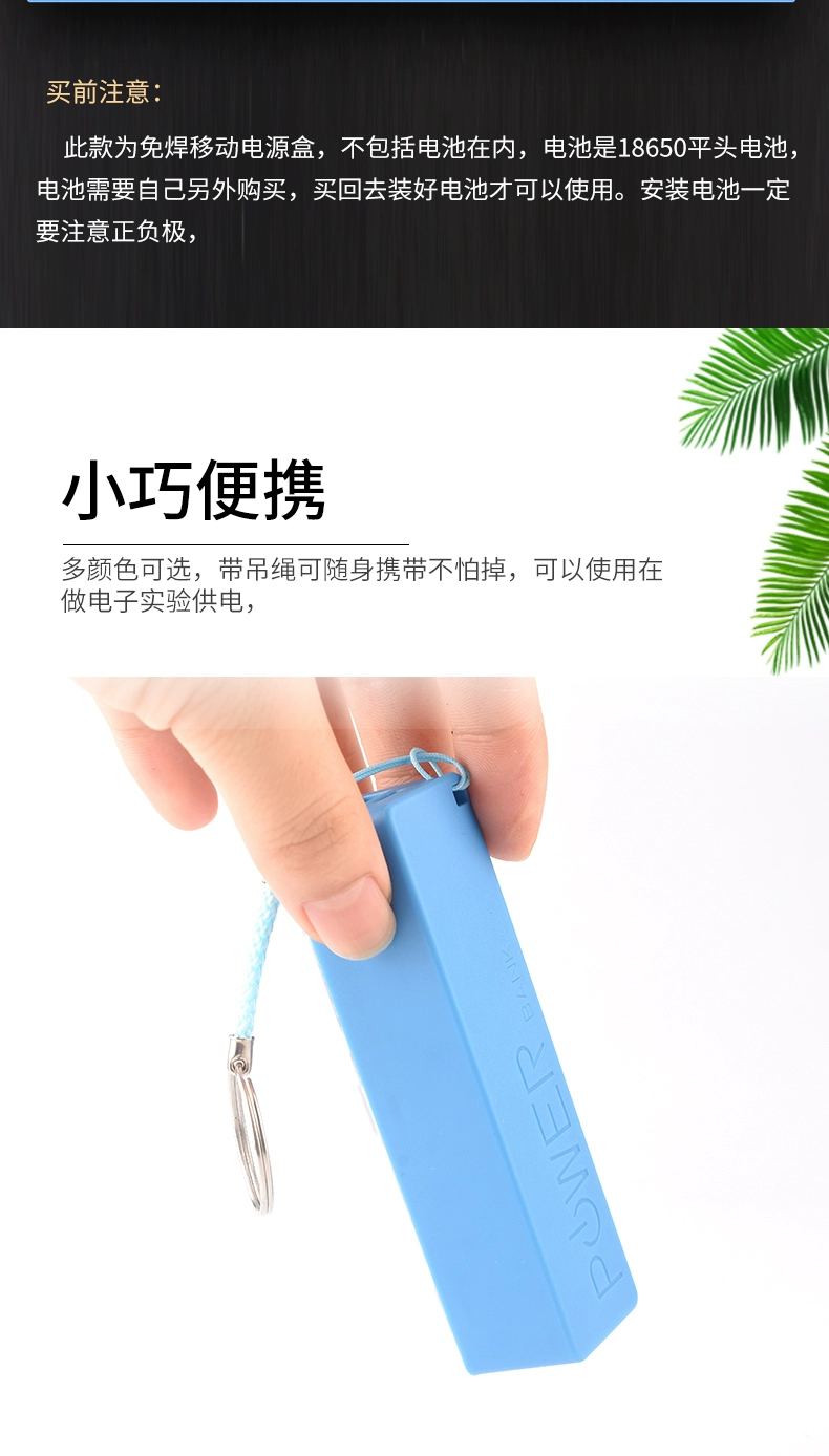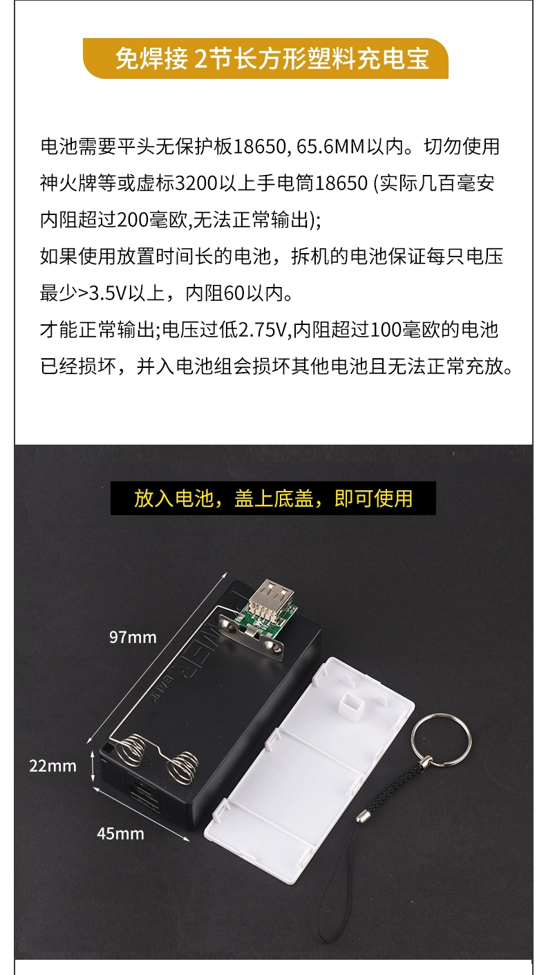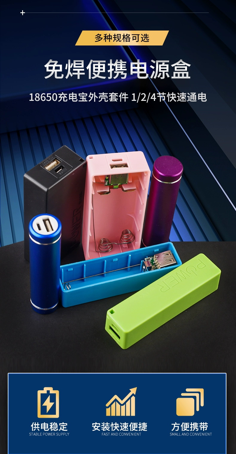 Welding-free mobile power supply box small shuttle 1/2 section 18650 power bank shell kit aluminum shell booster board diy 1 section black plastic case + Type-c port circuit board