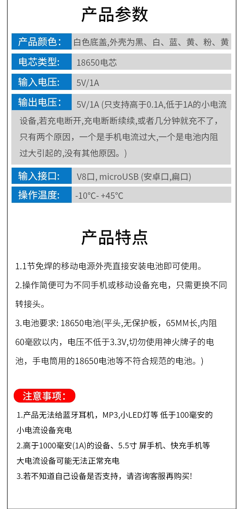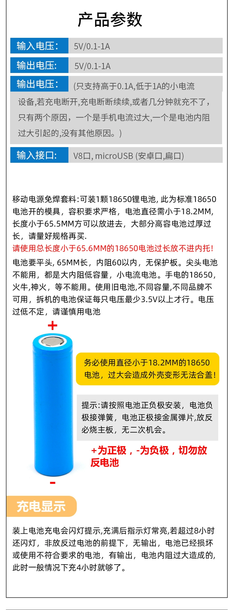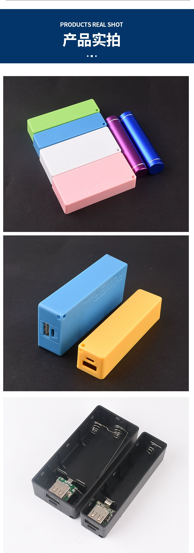 Welding-free mobile power supply box small shuttle 1/2 section 18650 power bank shell kit aluminum shell booster board diy 1 section black plastic case + Type-c port circuit board
