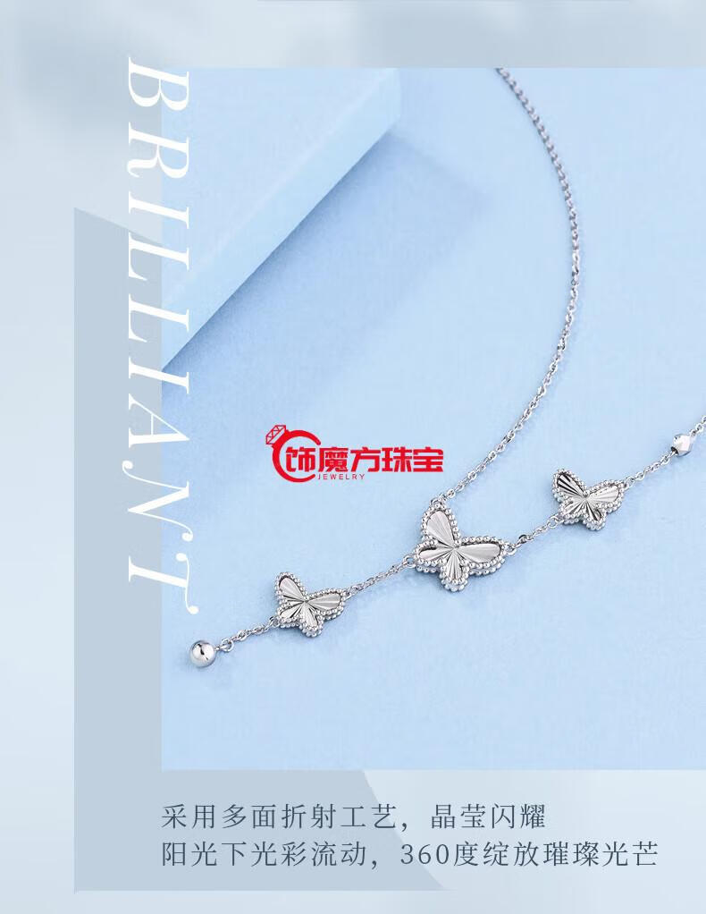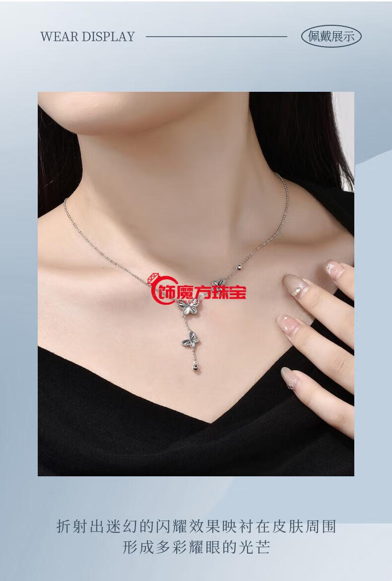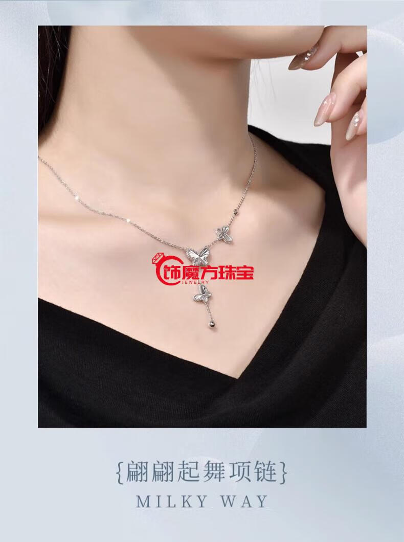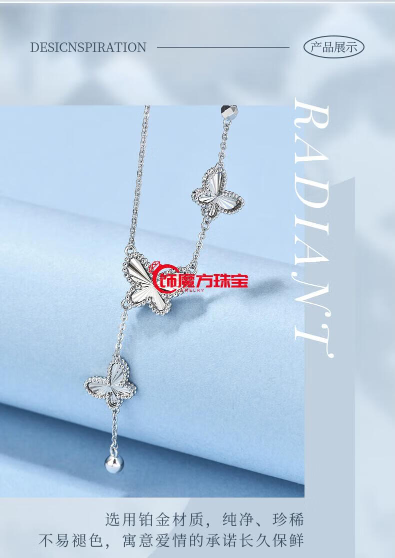 Guanpuge Fat Donglai same style pt950 platinum bow necklace women's platinum clavicle chain laser butterfly tassel necklace
