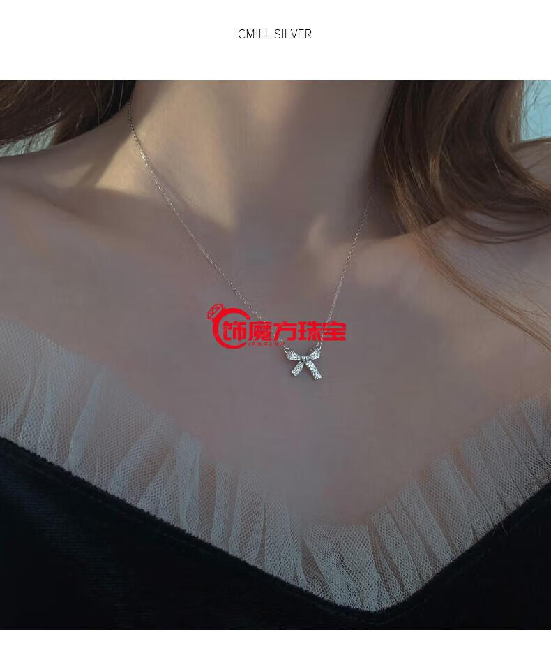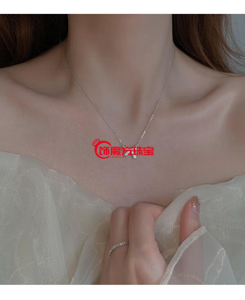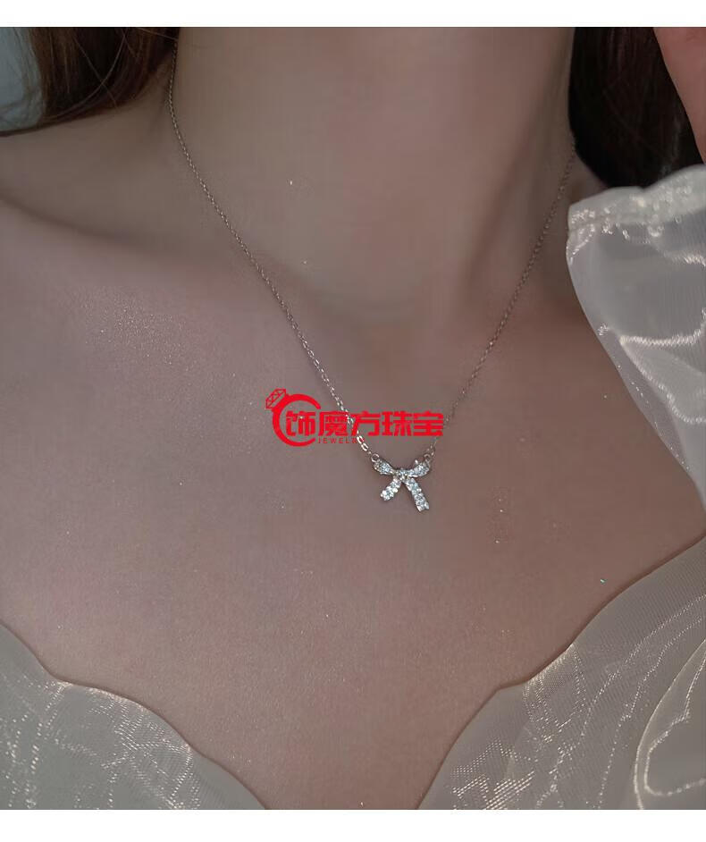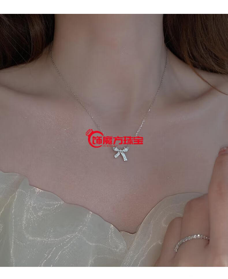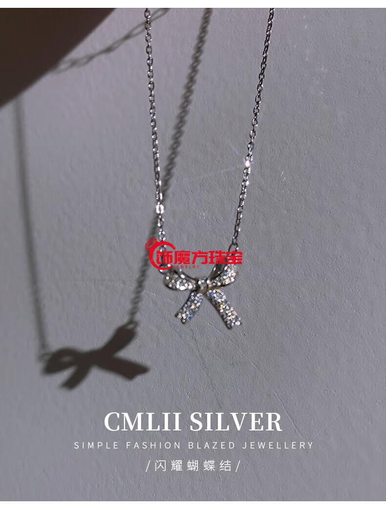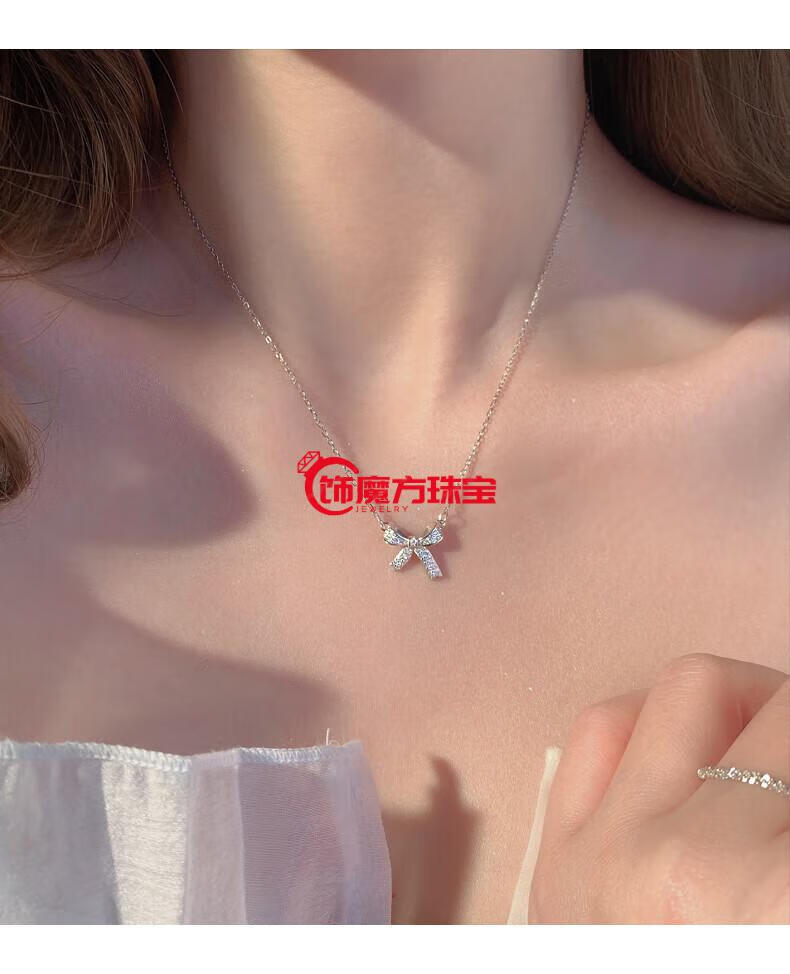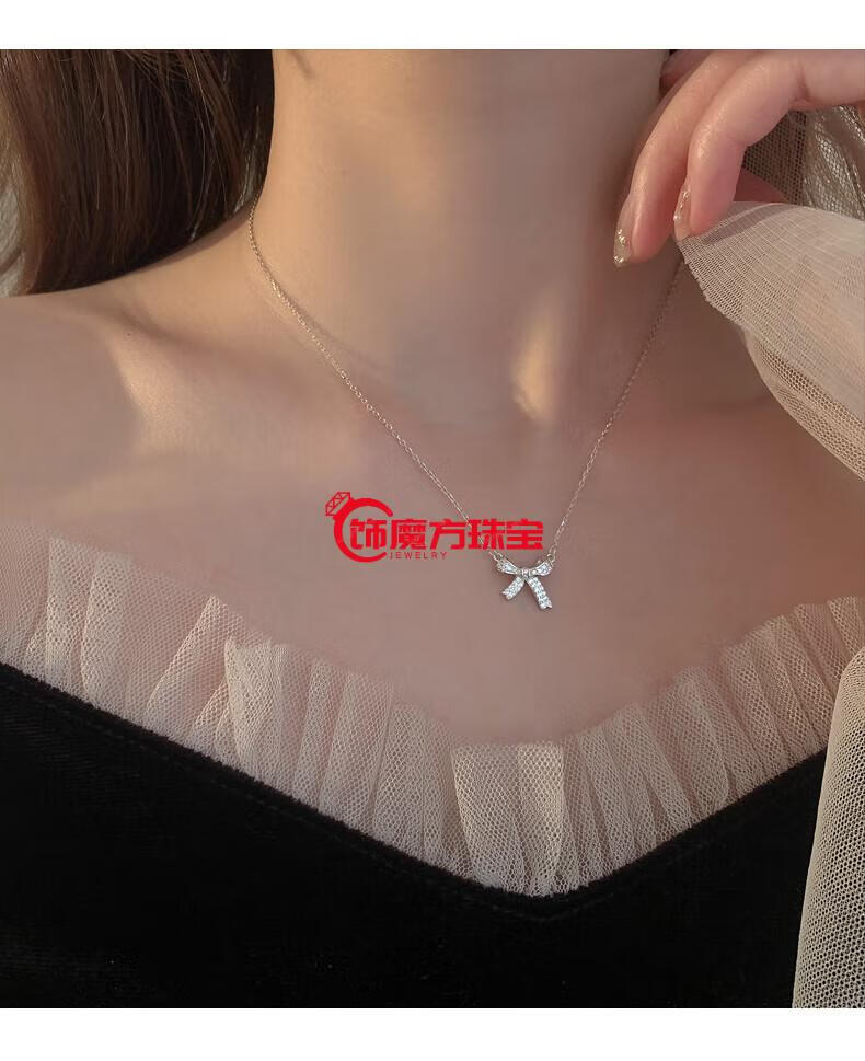 Guanpu Pavilion Fat Donglai's same style pt950 platinum bow necklace PT950 diamond women's light luxury niche platinum clavicle chain platinum bow necklace