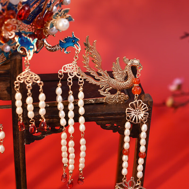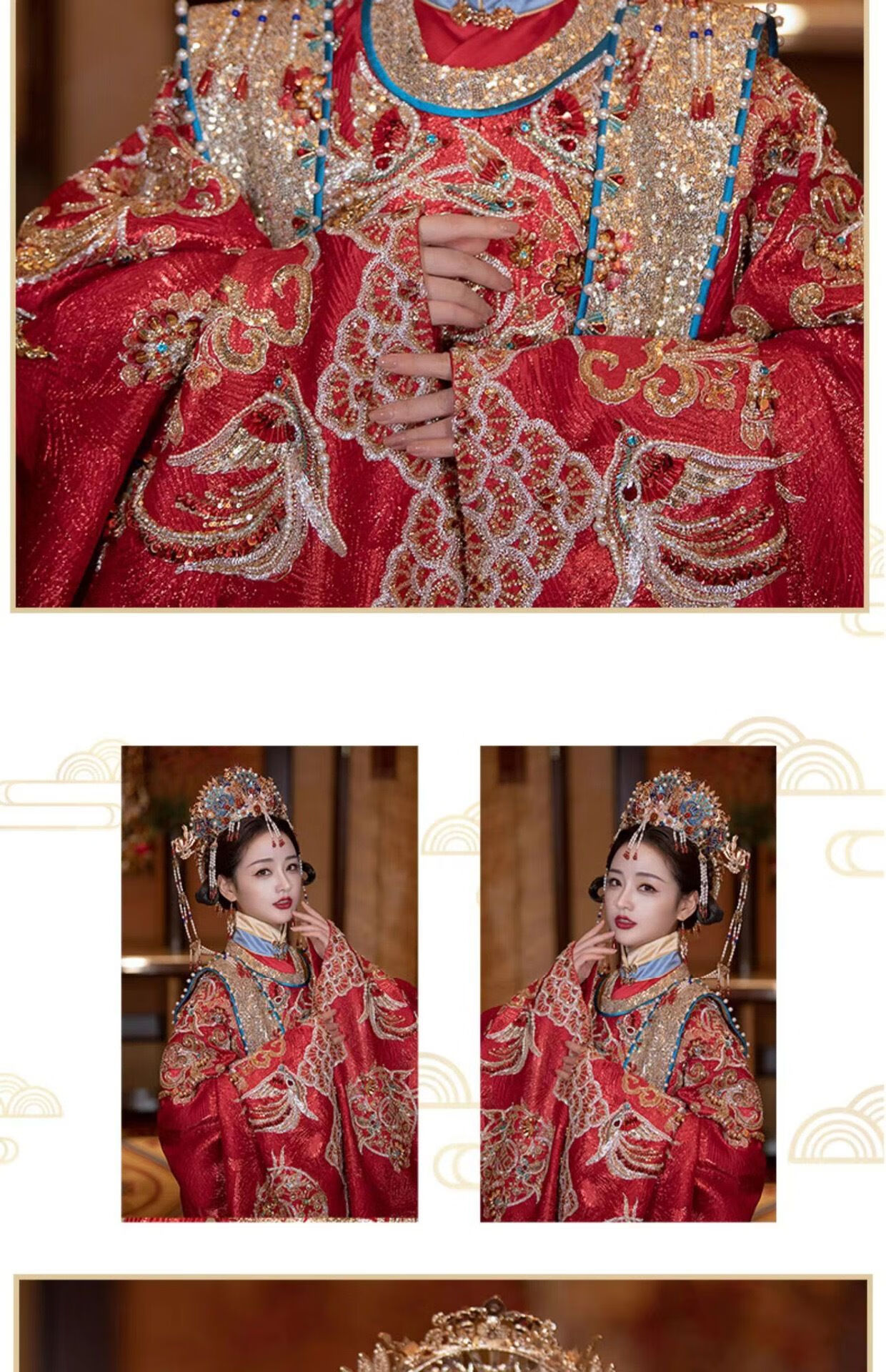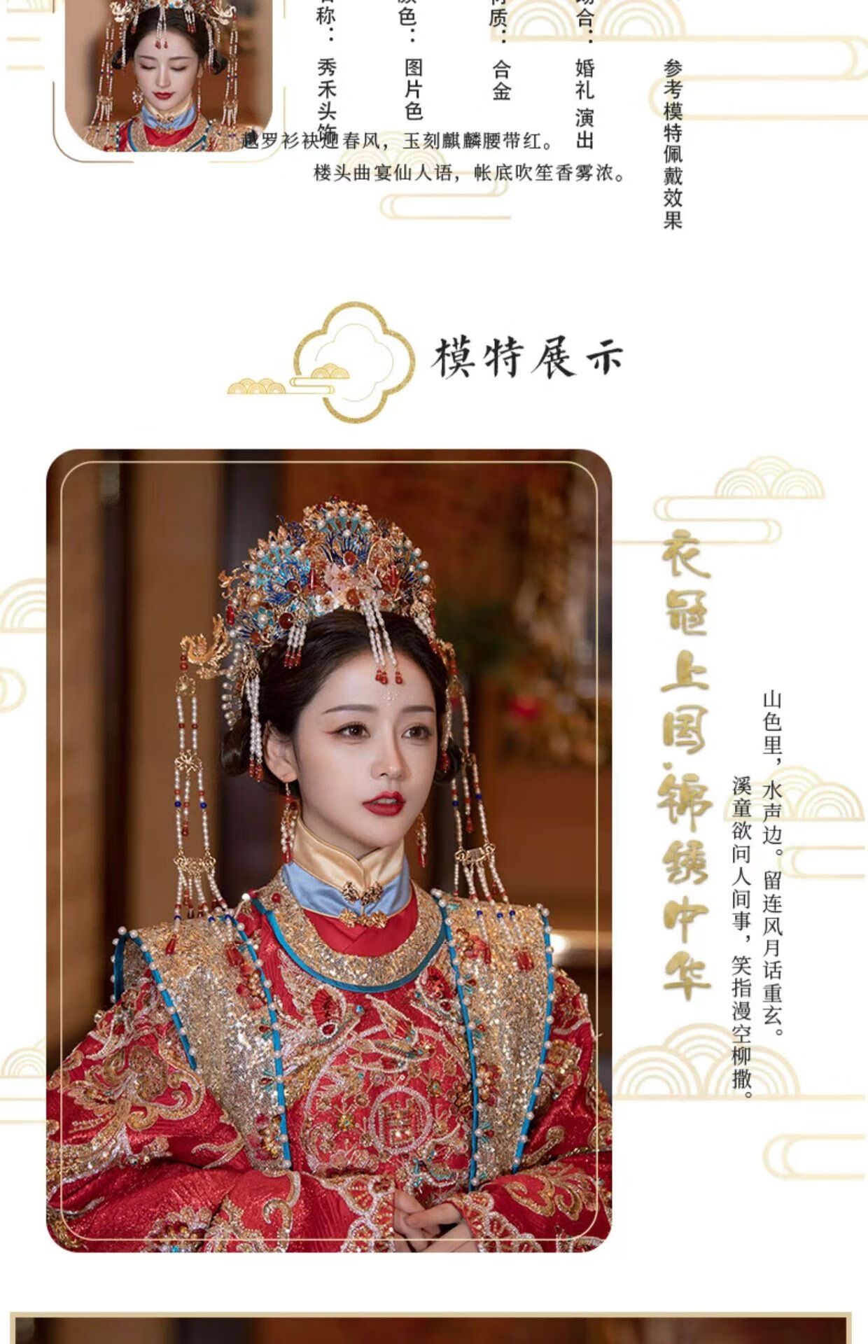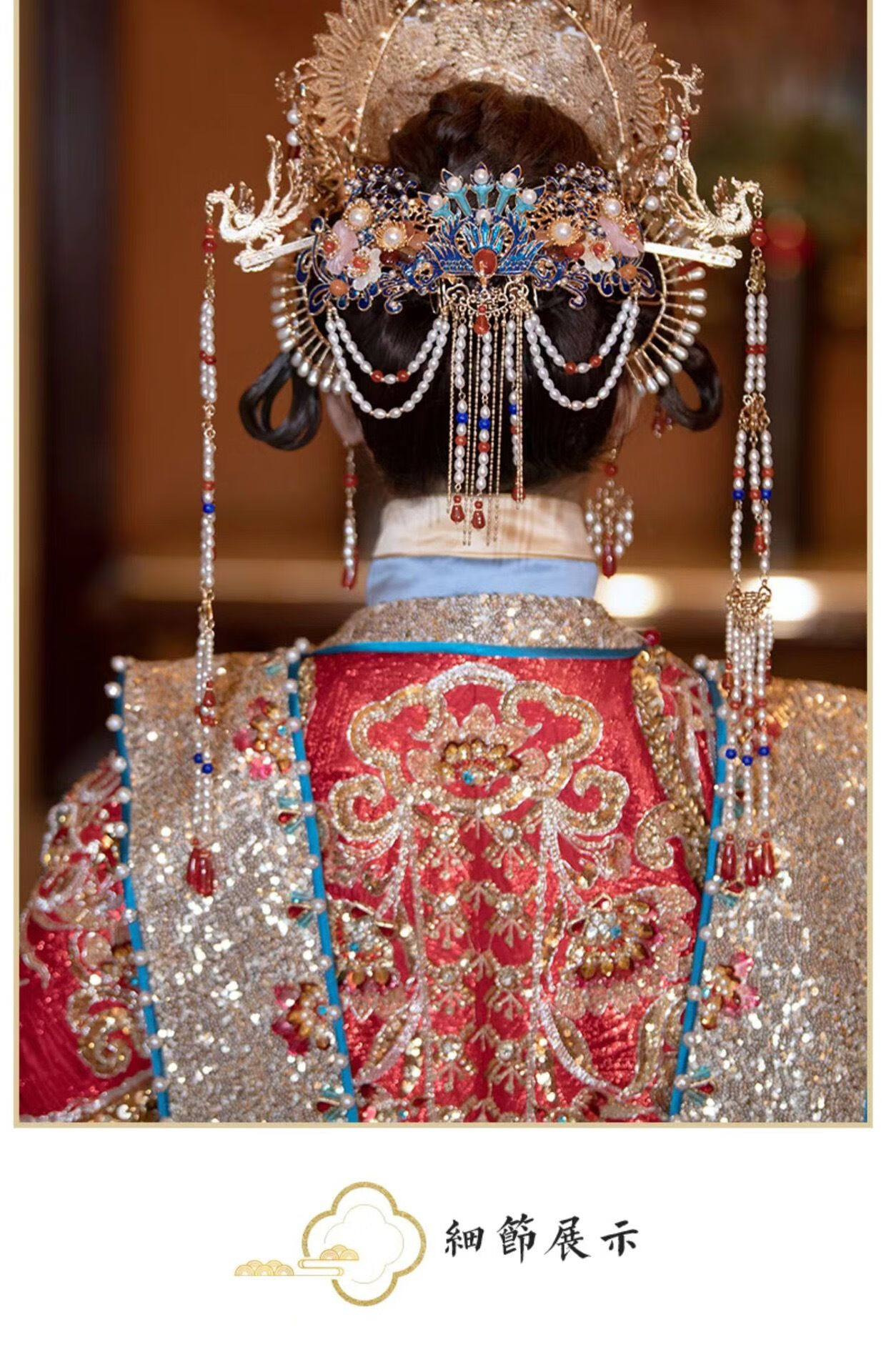 Meng Junchen made Ming Dynasty Chinese bridal ancient style headdress Xiuhe phoenix crown wedding grand golden new Hanfu hair accessories tassel wedding luxury bridal headwear