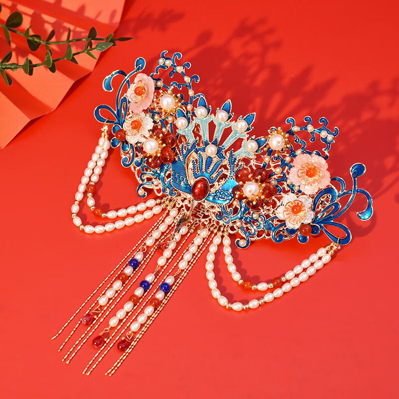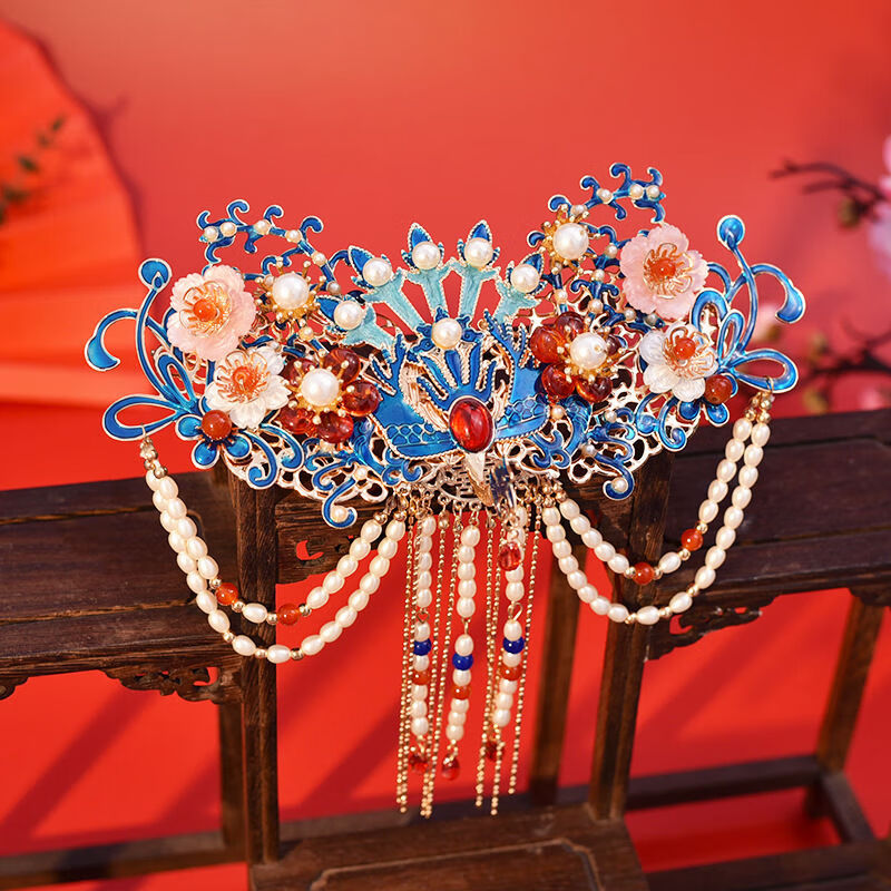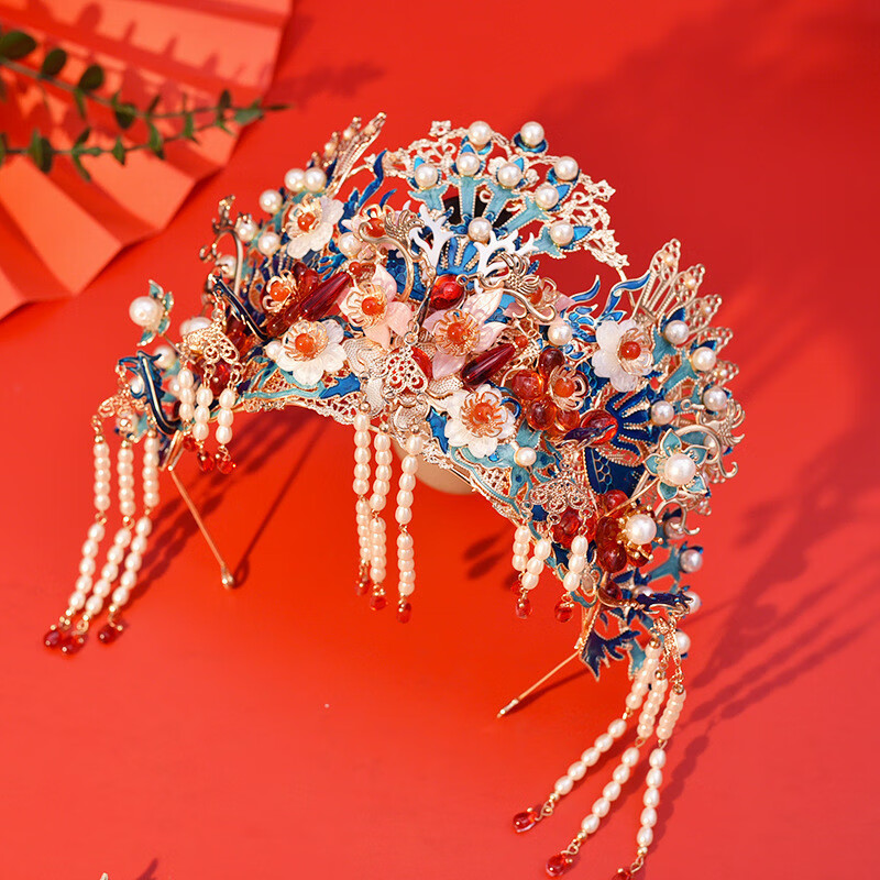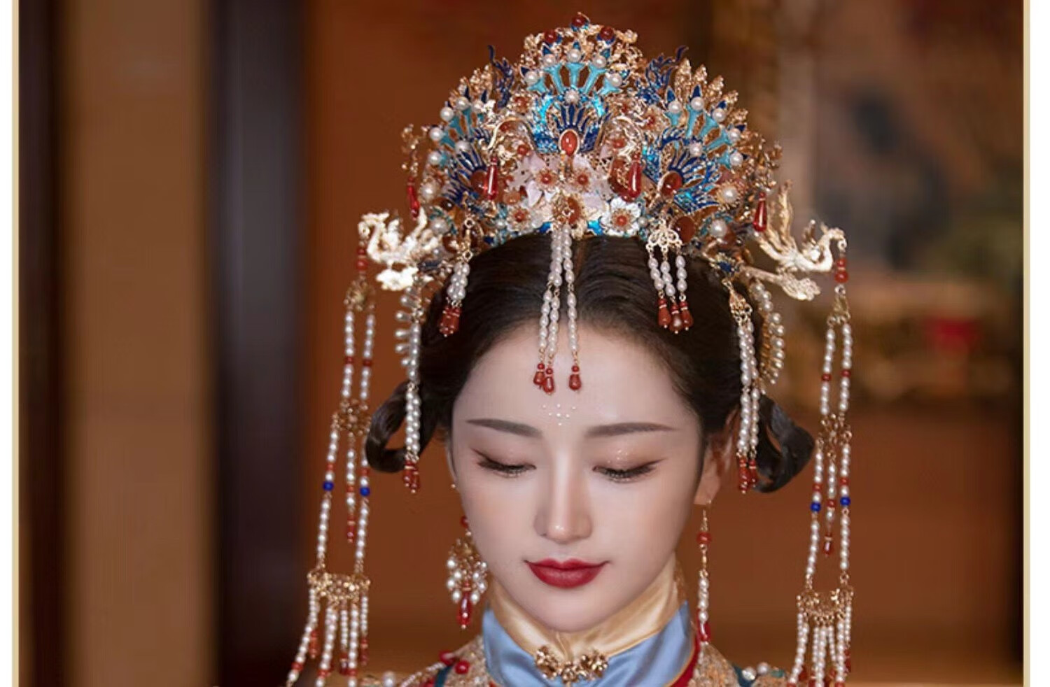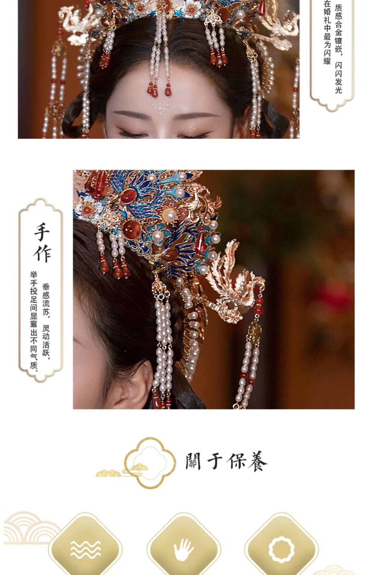 Meng Junchen made Ming Dynasty Chinese bridal ancient style headdress Xiuhe phoenix crown wedding grand golden new Hanfu hair accessories tassel wedding luxury bridal headwear