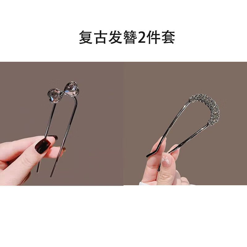 Jiemue antique style crystal bow hairpin on the back of the head, hairpin, cheongsam hairpin, simple headdress, combing hair, black hairpin, U-shaped single flower