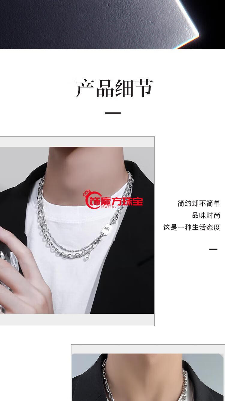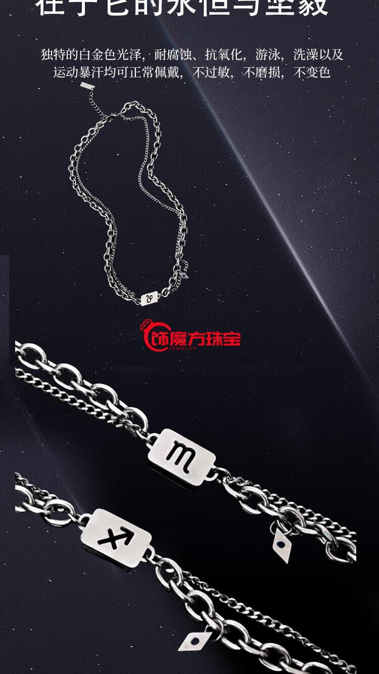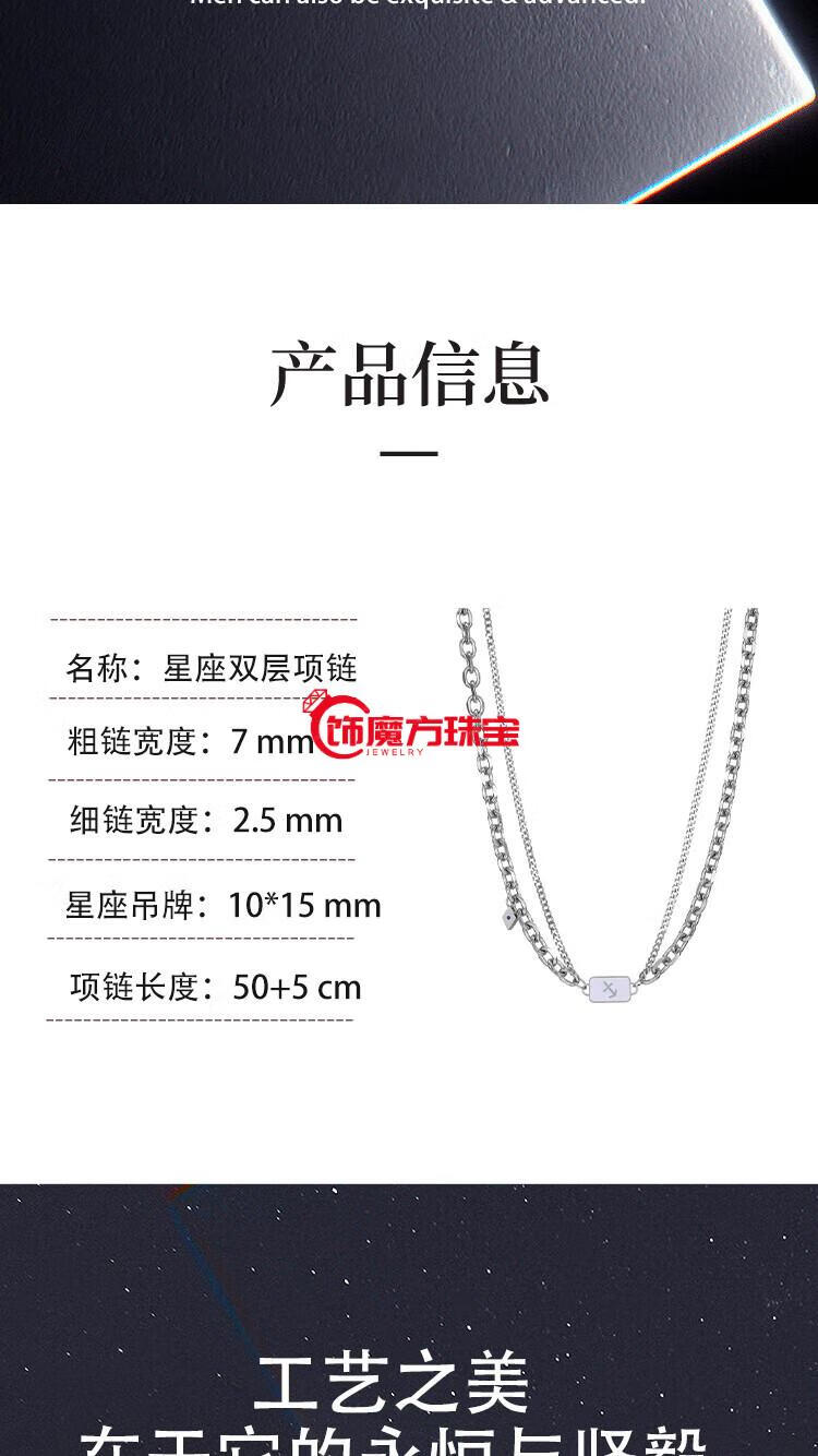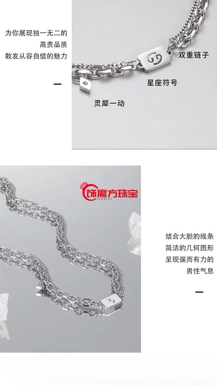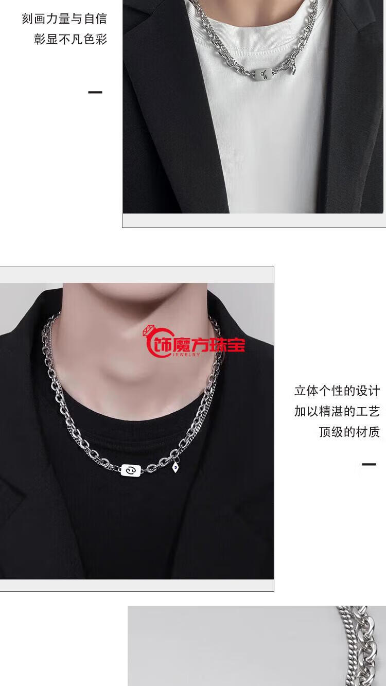 Guanpu Pavilion Fat Donglai's same style men's platinum necklace new platinum twelve zodiac signs boys double chain clavicle chain versatile Cancer cautious + gentle + giving