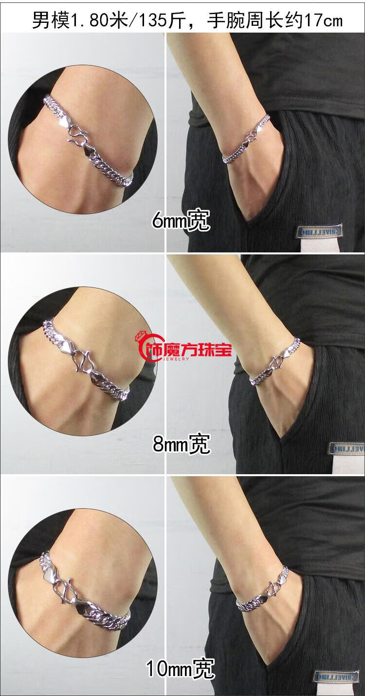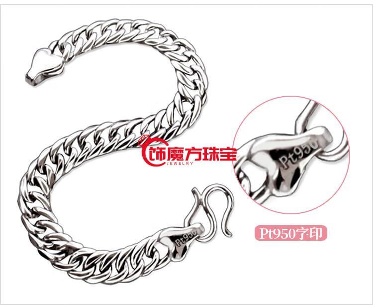 Guanpuge Fat Donglai same style men's platinum bracelet Pt950 light luxury niche boys and girls riding whip chain wallet platinum lifetime 8mm wide 19cm long 24 grams