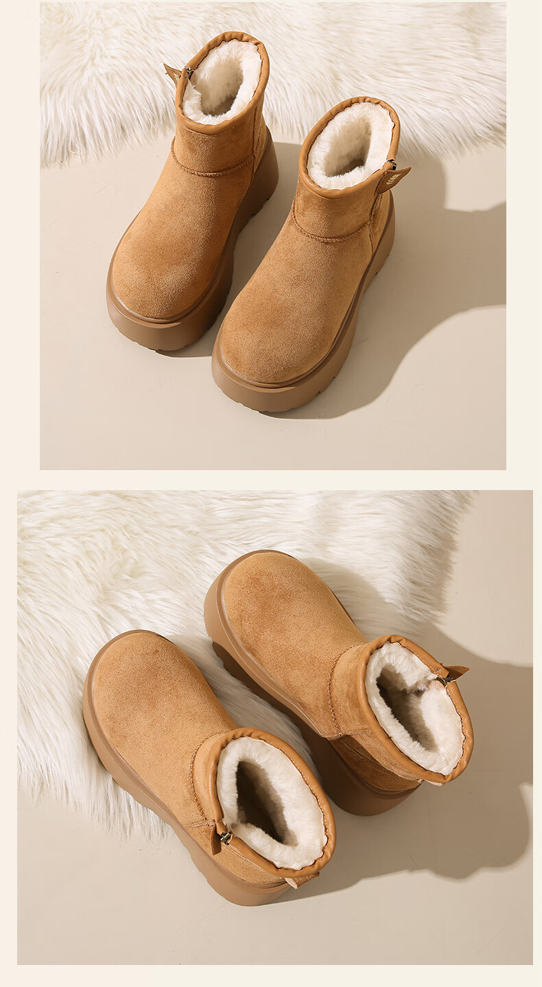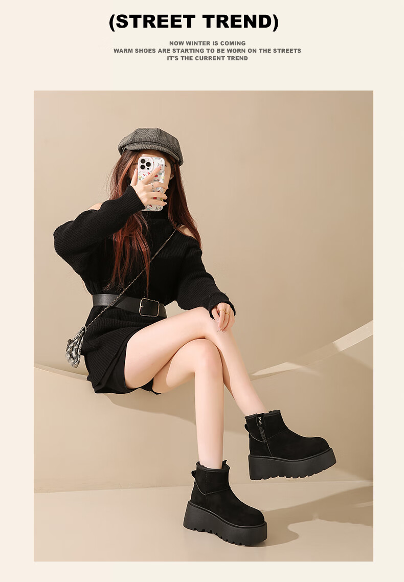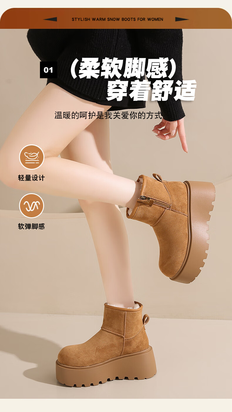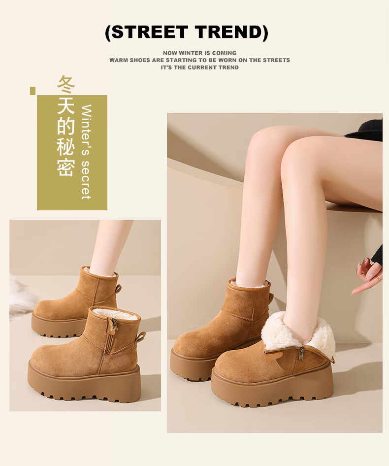 Woodpecker muffin thick-soled snow boots for women 2025 new winter heightening Martin boots plus velvet and thickening to keep warm Northeast large cotton shoes yellow 35