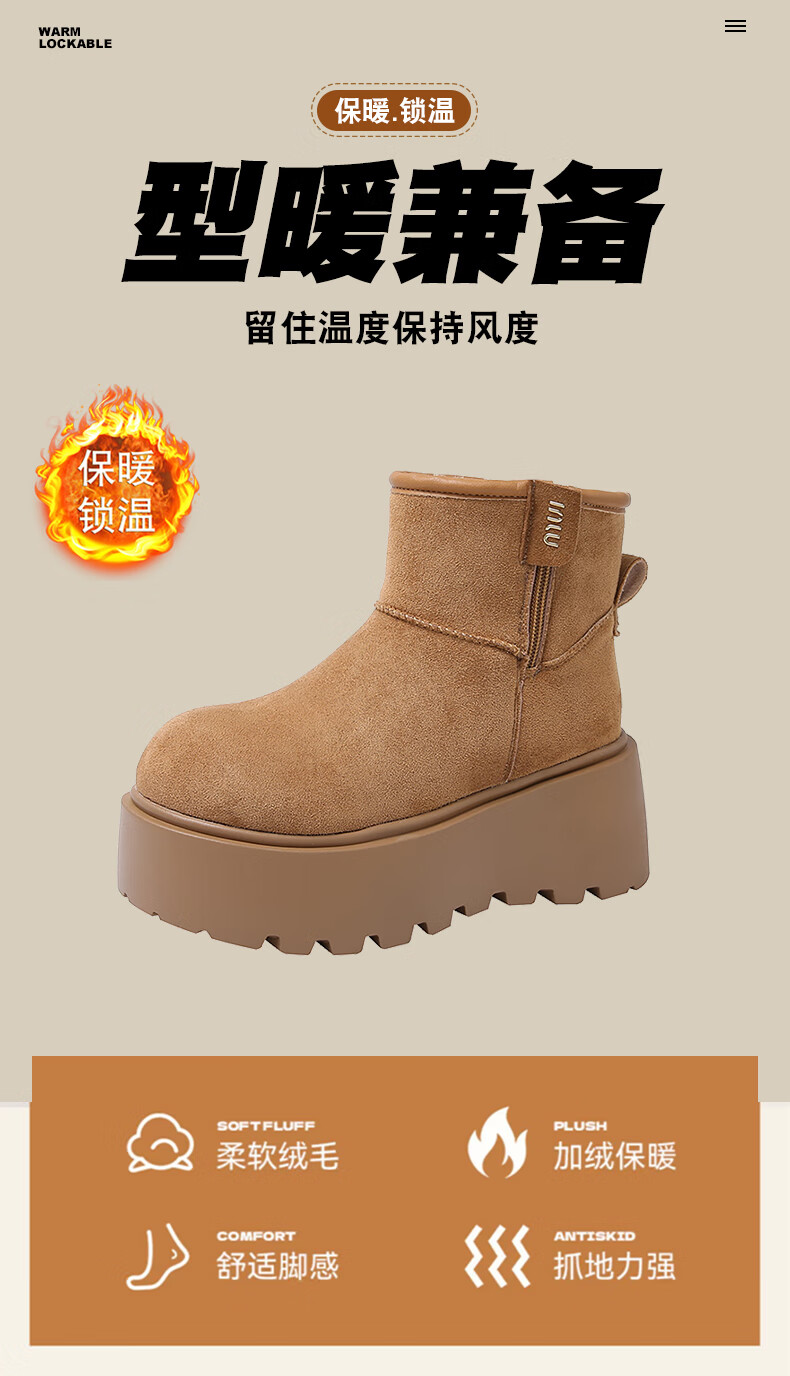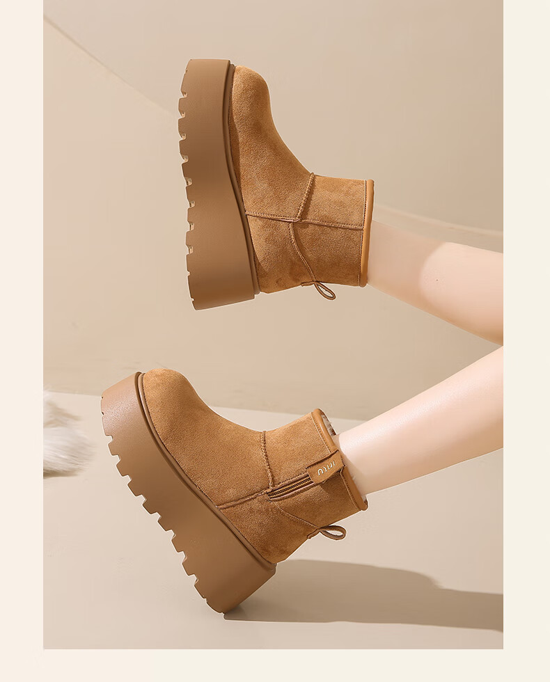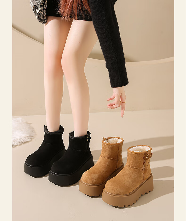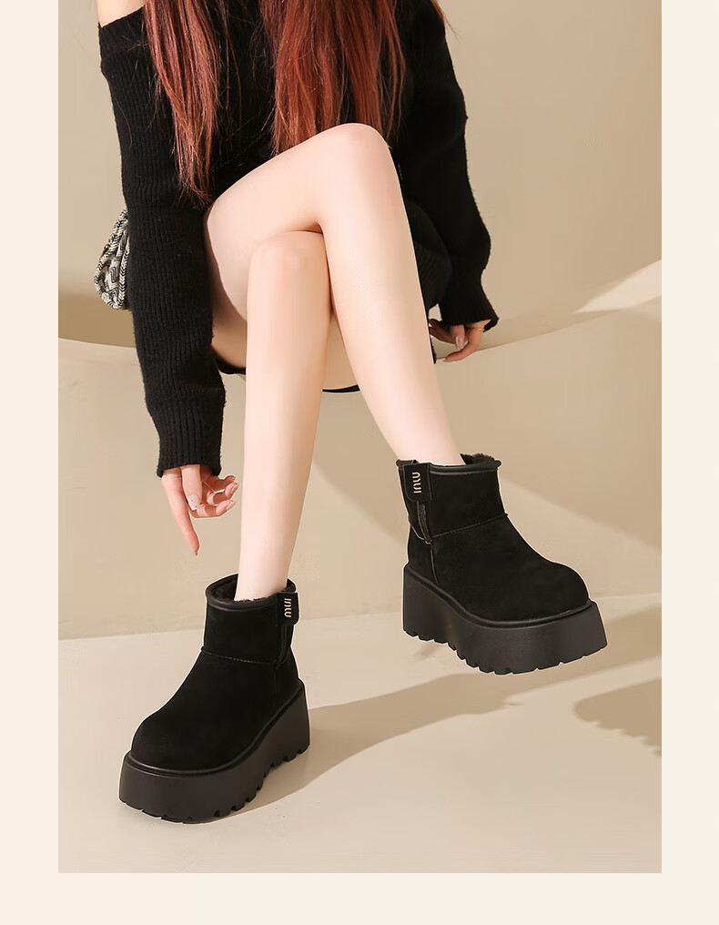 Woodpecker muffin thick-soled snow boots for women 2025 new winter heightening Martin boots plus velvet and thickening to keep warm Northeast large cotton shoes yellow 35