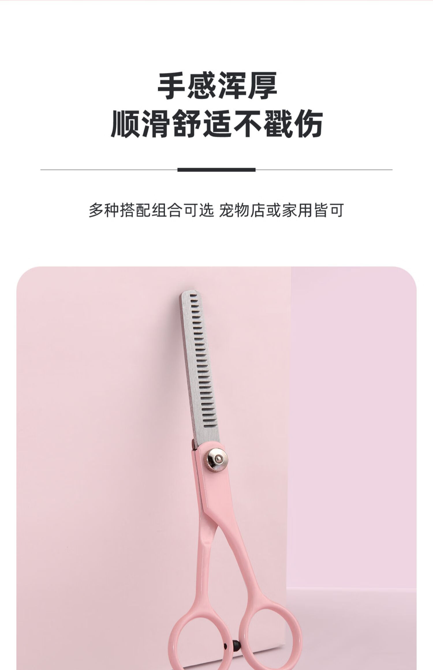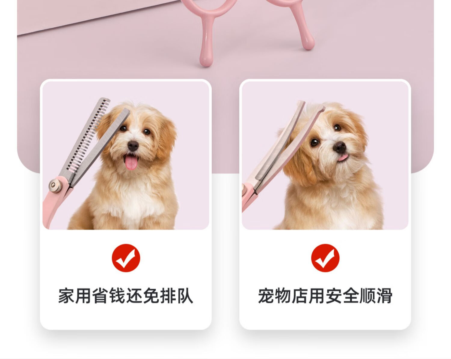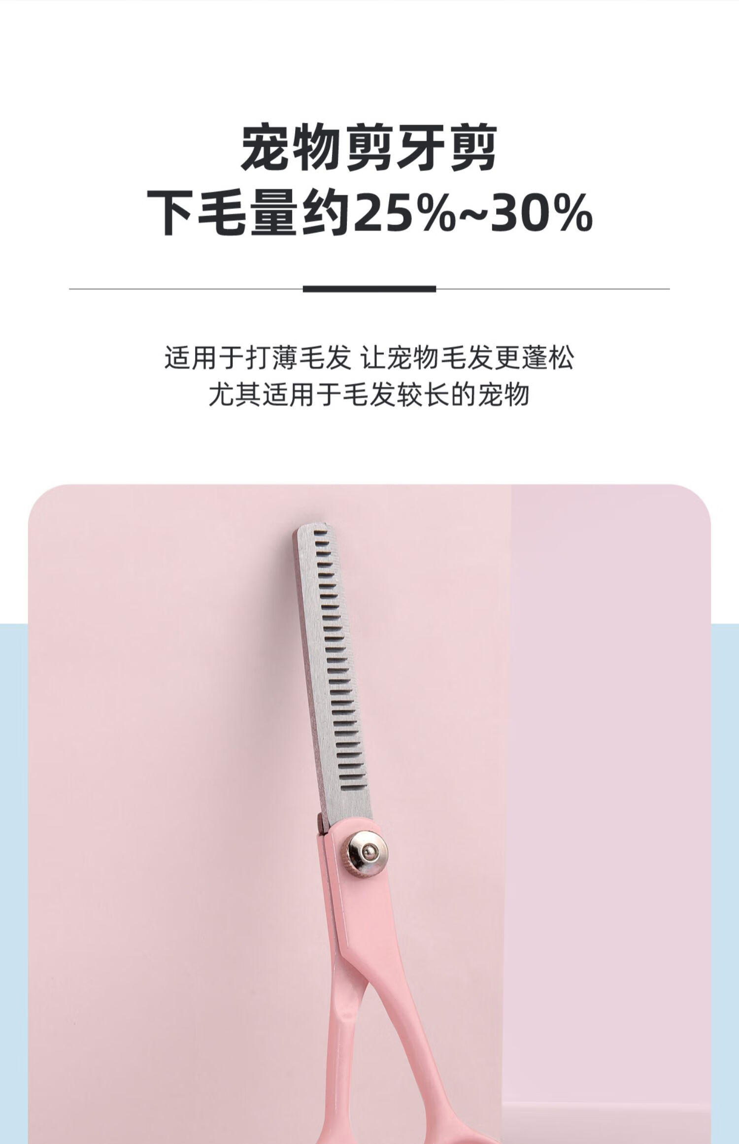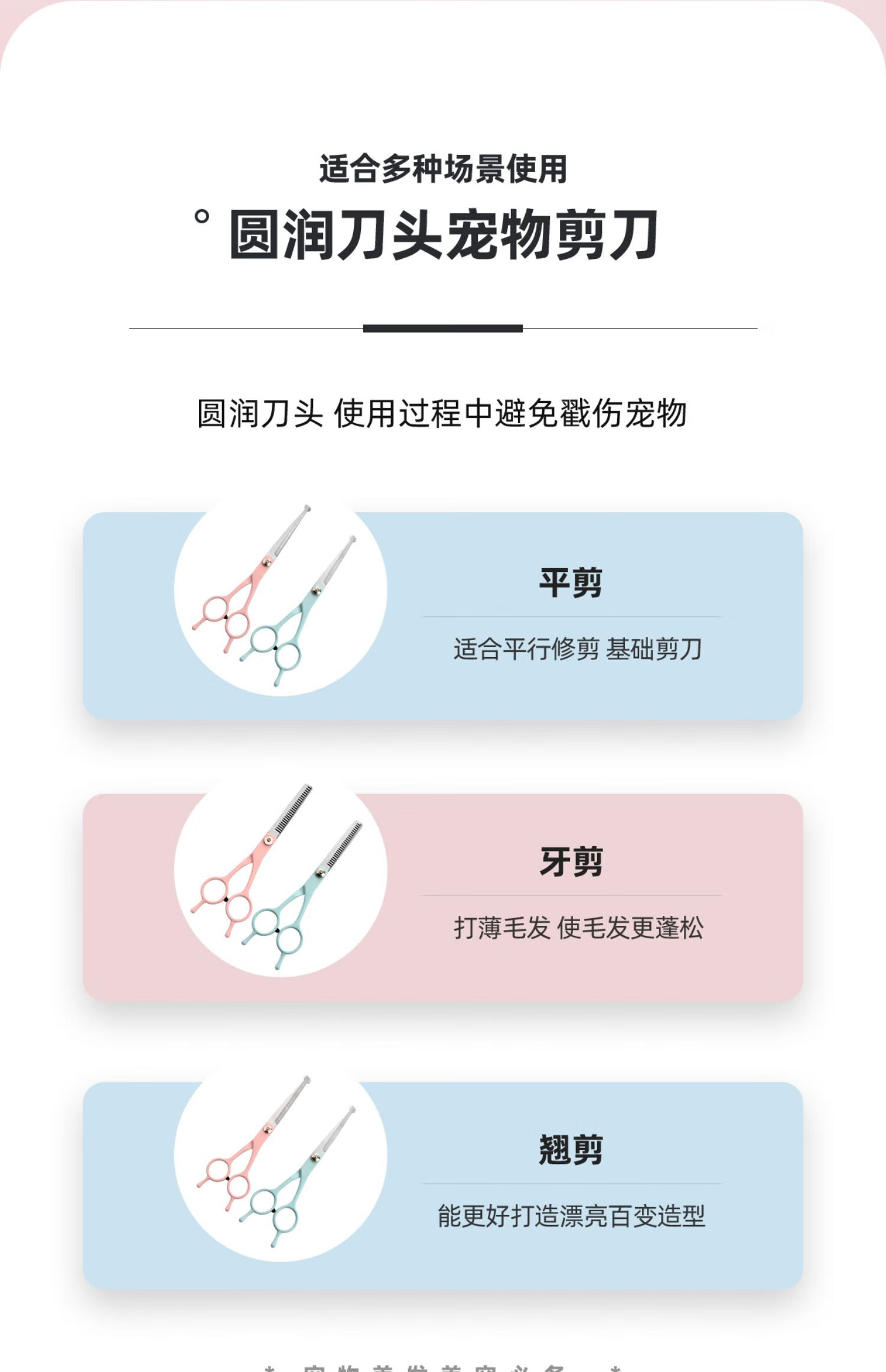 YWZR round-head pet grooming scissors for cats and dogs, special scissors for straight scissors, curved scissors, shaving and trimming scissors tool set, flat scissors + curved scissors + dental scissors + steel comb + leather bag, pink