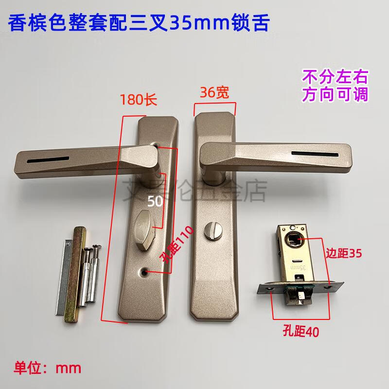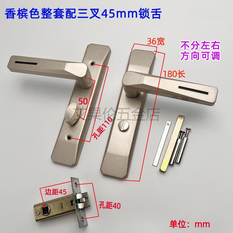 110 hole pitch bathroom door lock balcony bathroom door lock bathroom single tongue lock without key champagne color pair of handles without tongue without key