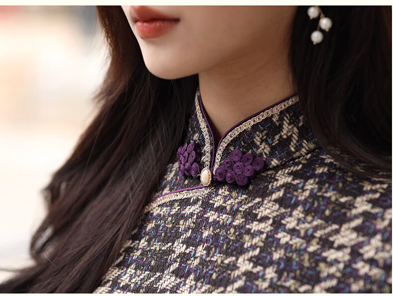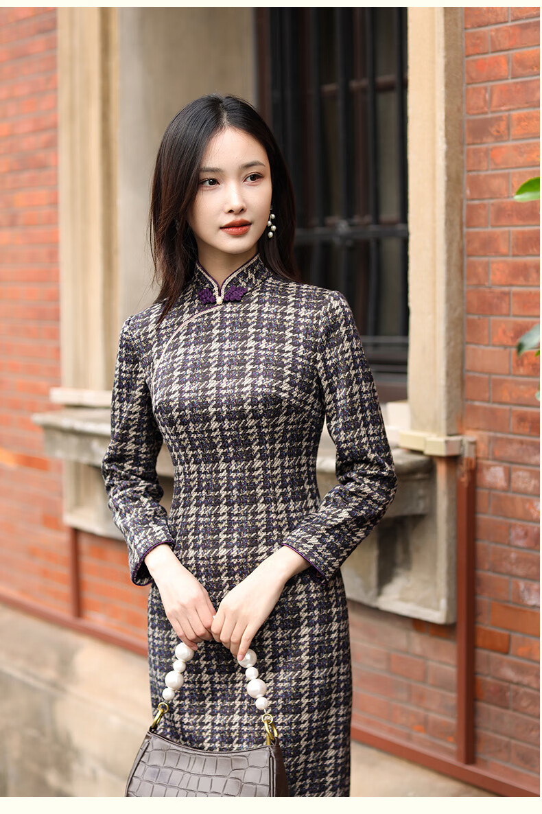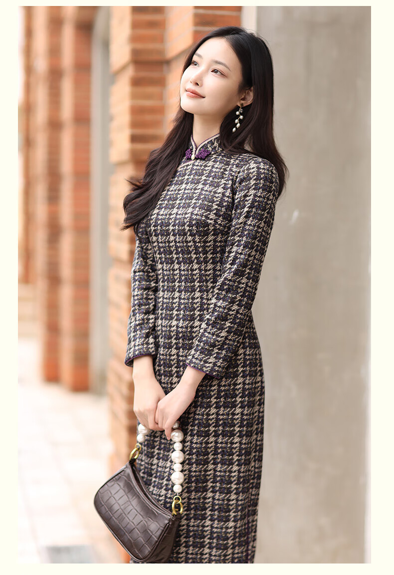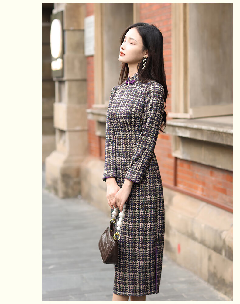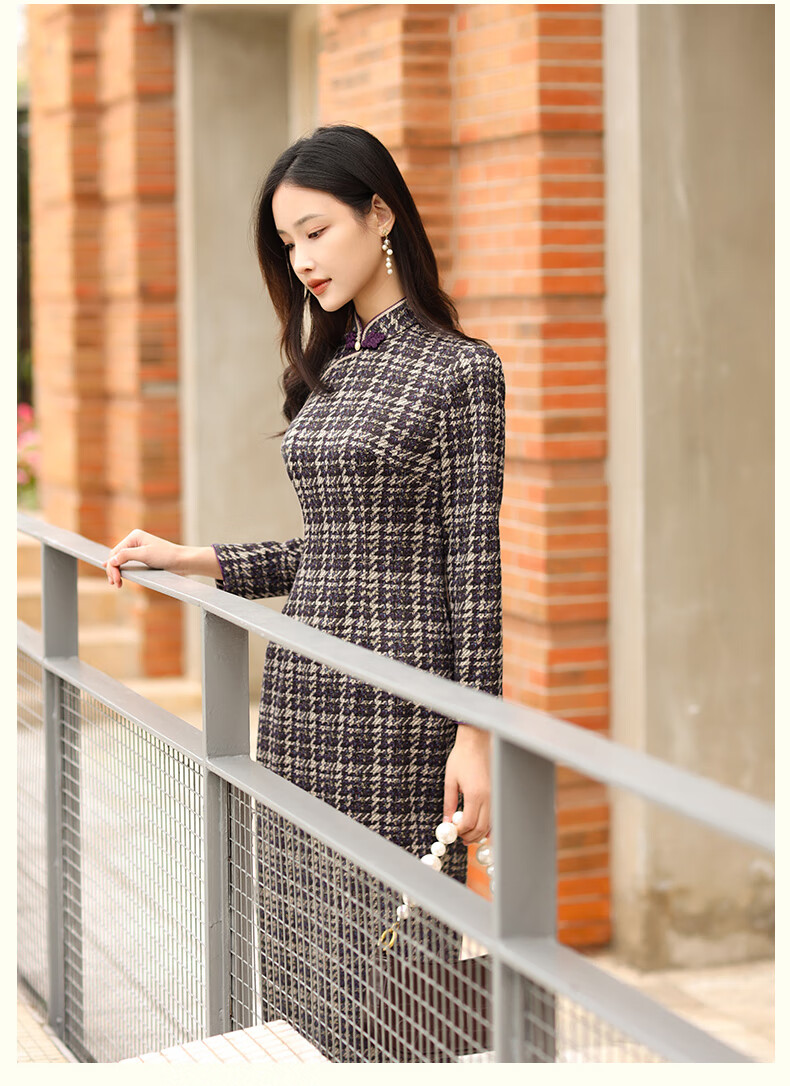 E.Beauty Jinghe 2025 Autumn New Arrival Knitted Printed Small Fragrance Style Cheongsam Retro Republic of China Women Grape Purple M One Size