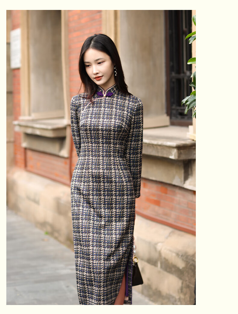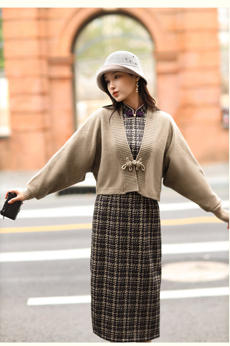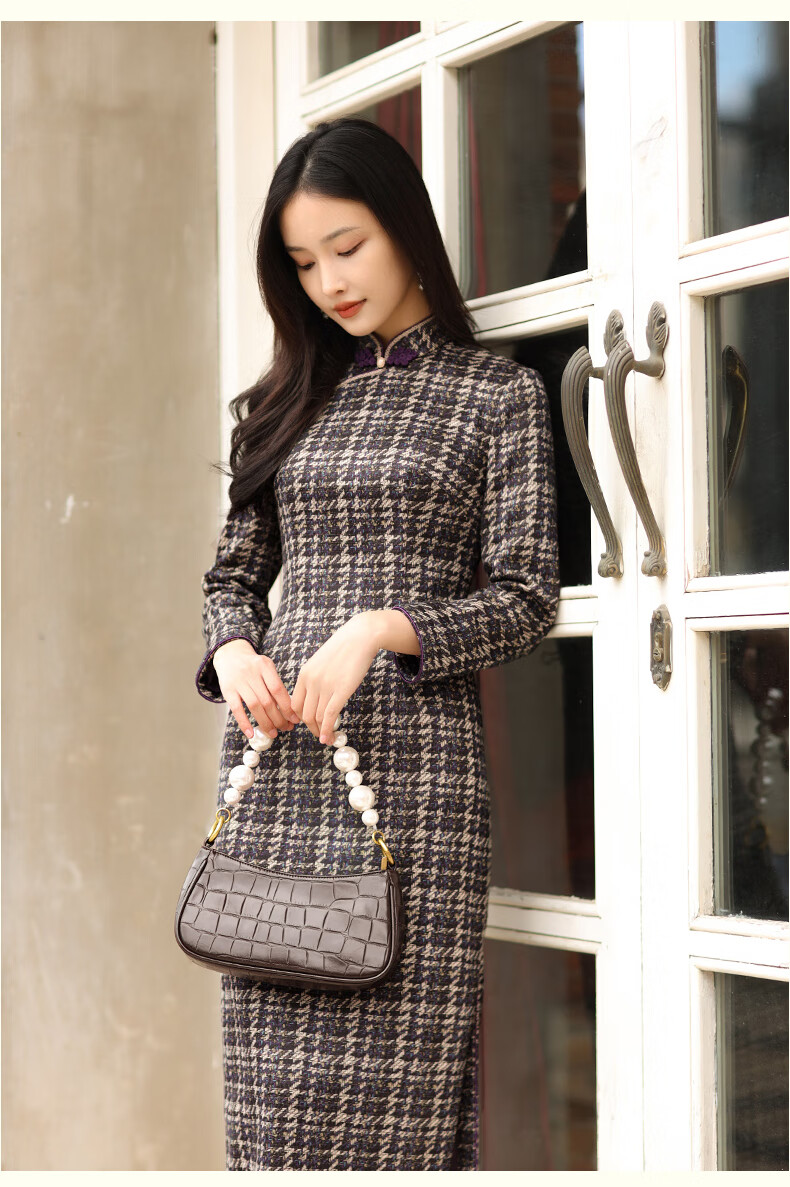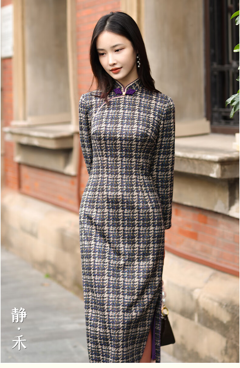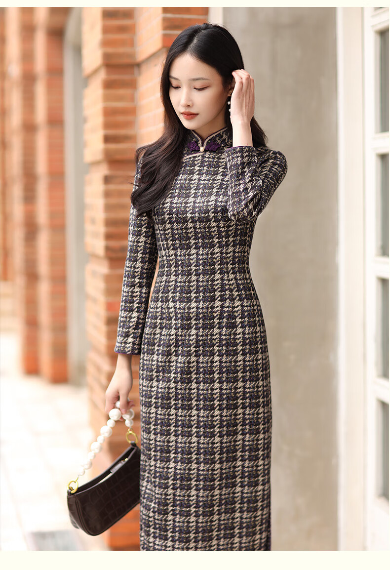 E.Beauty Jinghe 2025 Autumn New Arrival Knitted Printed Small Fragrance Style Cheongsam Retro Republic of China Women Grape Purple M One Size