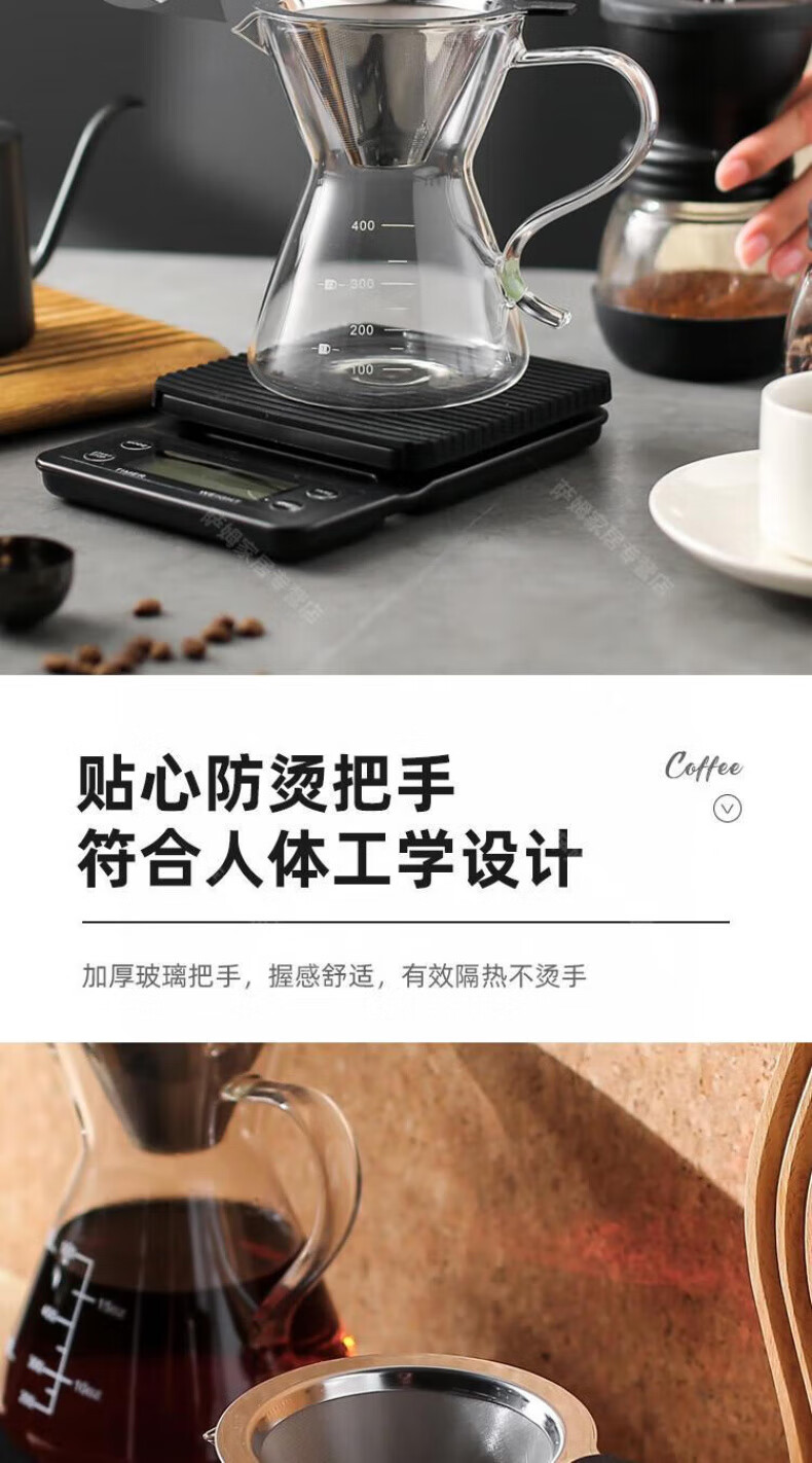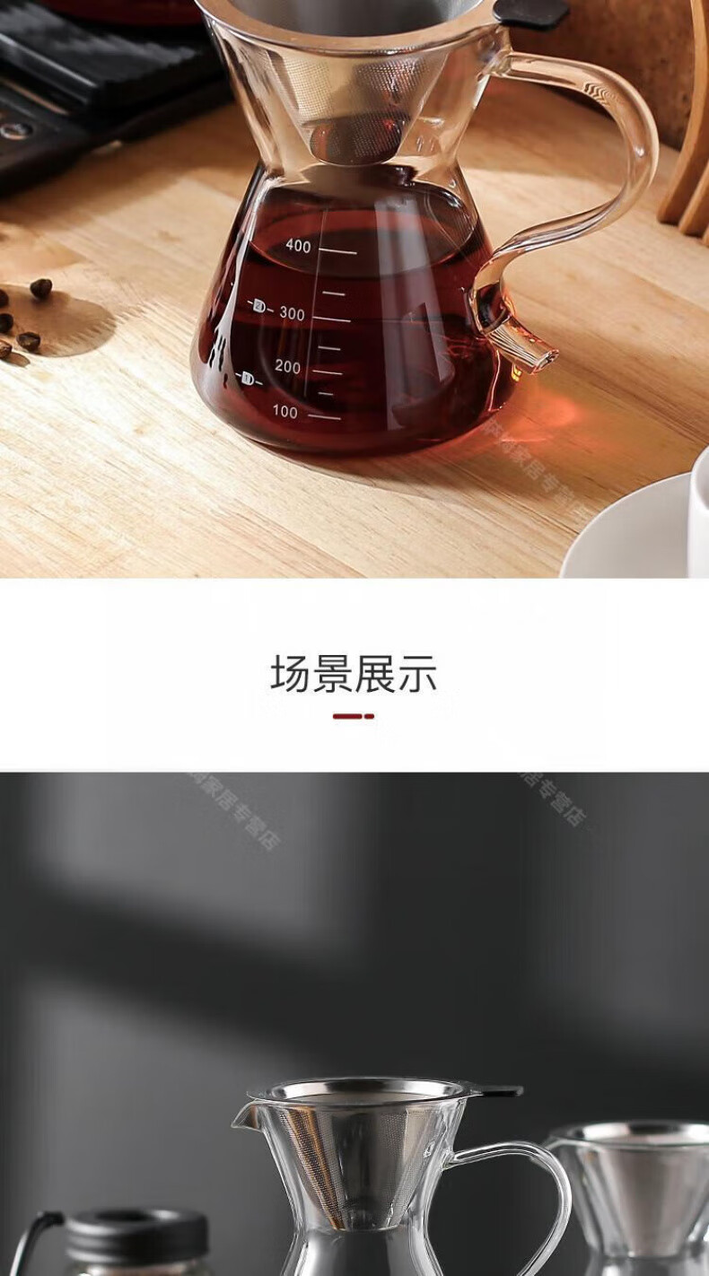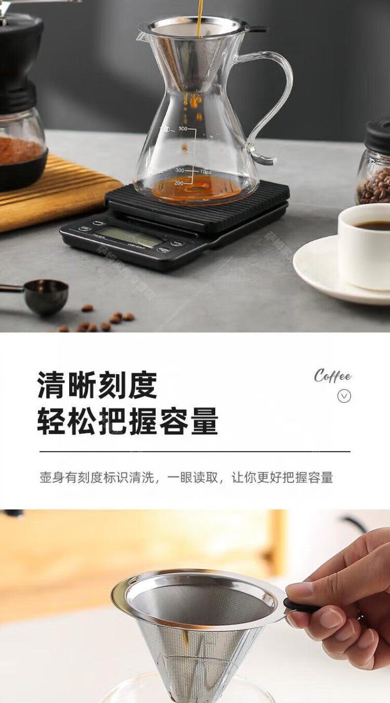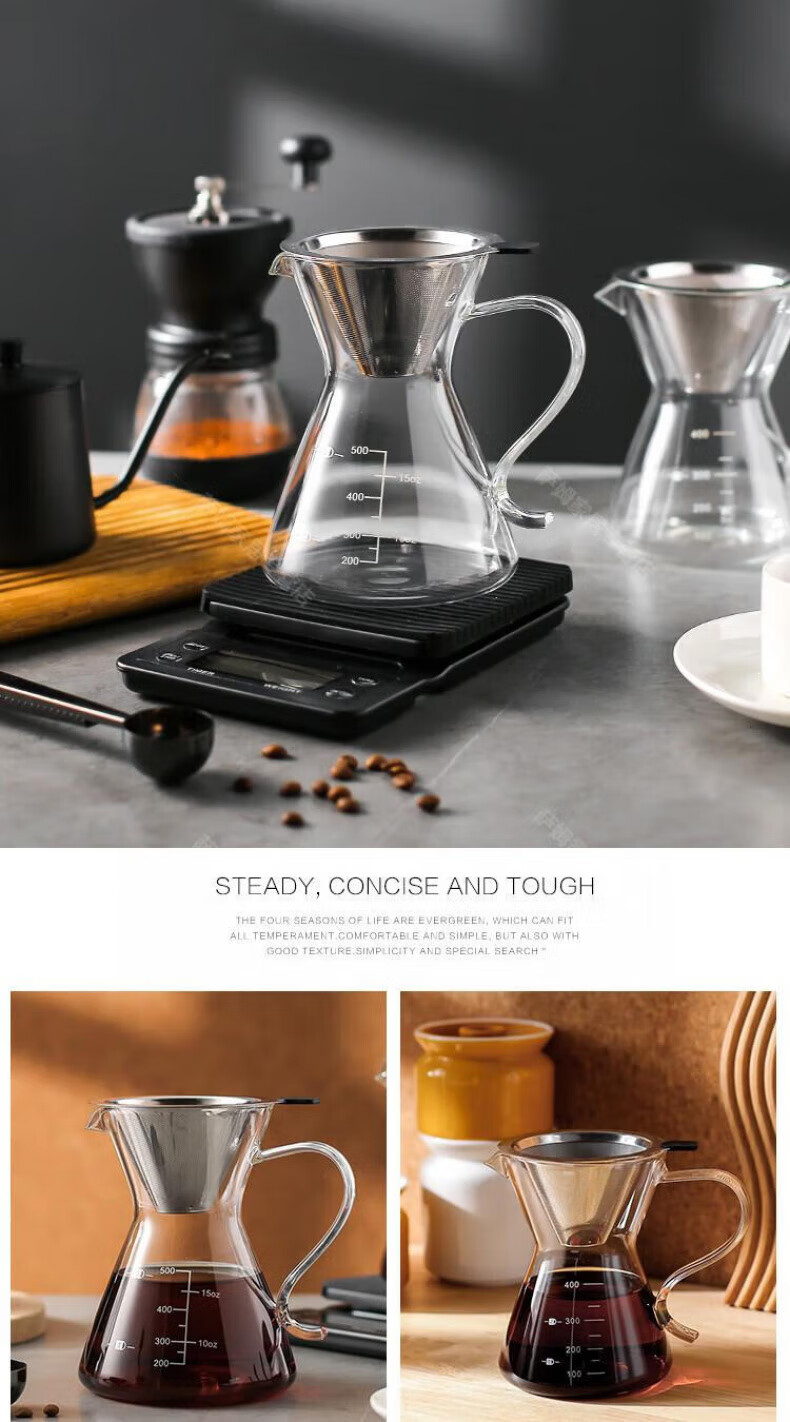 WCZ German hand-brewed coffee pot without coffee filter paper filter cup one-cup filter funnel drip pot sharing pot small glass filter pot + filter 400ml