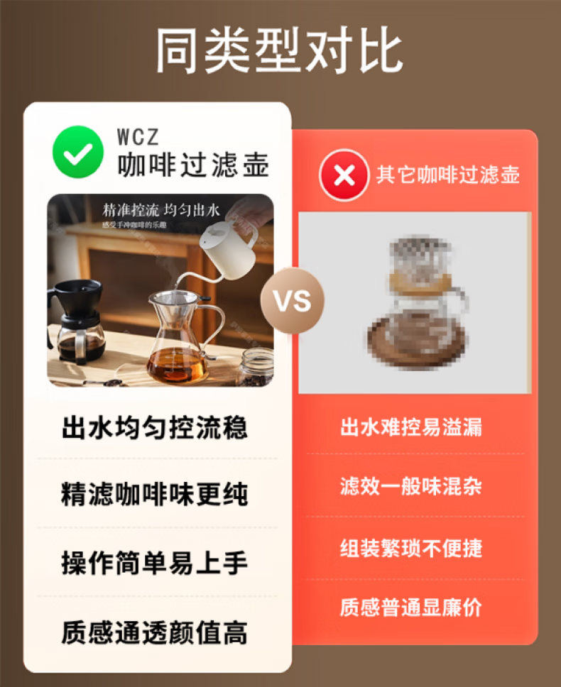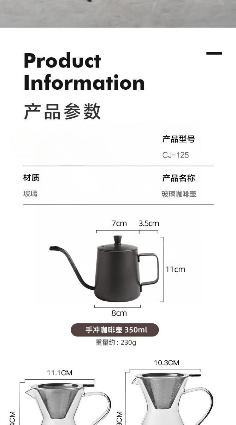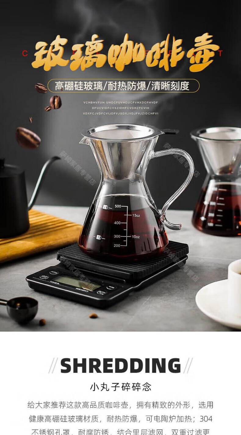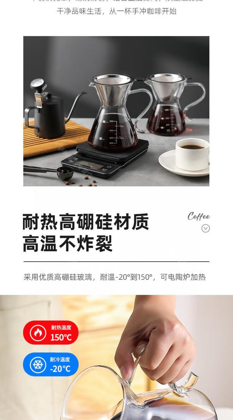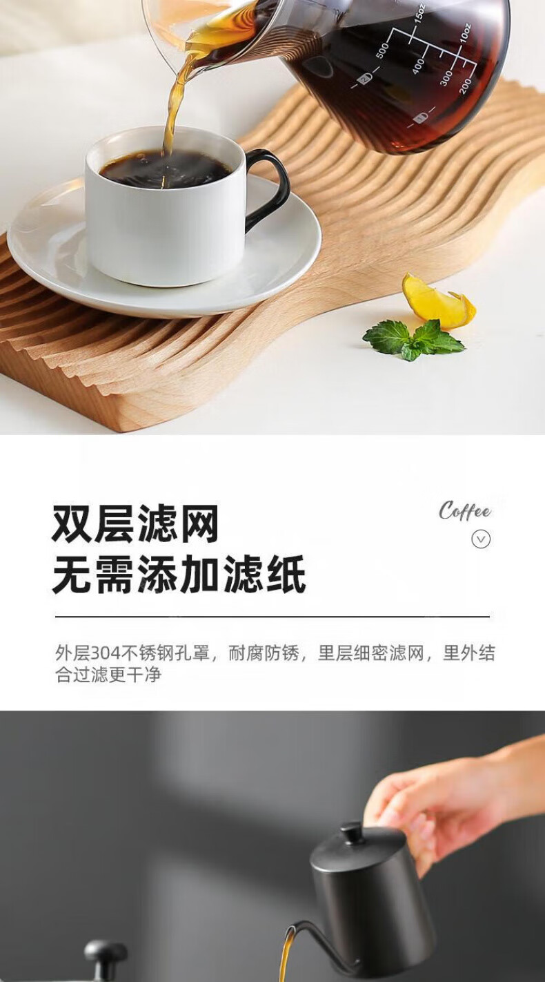 WCZ German hand-brewed coffee pot without coffee filter paper filter cup one-cup filter funnel drip pot sharing pot small glass filter pot + filter 400ml