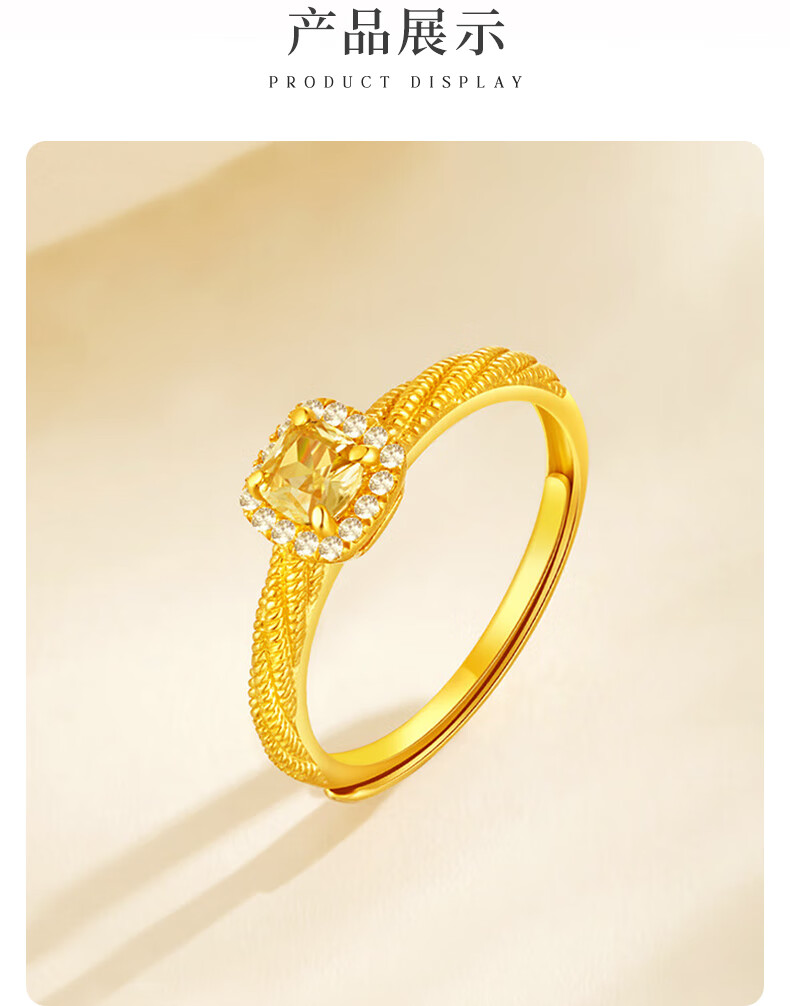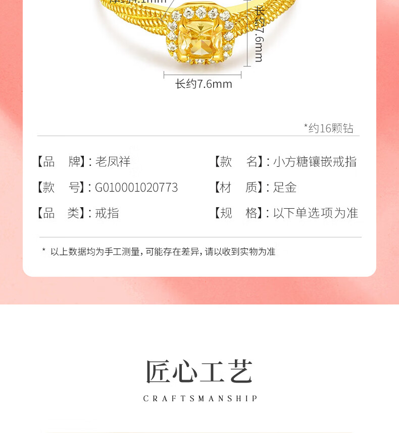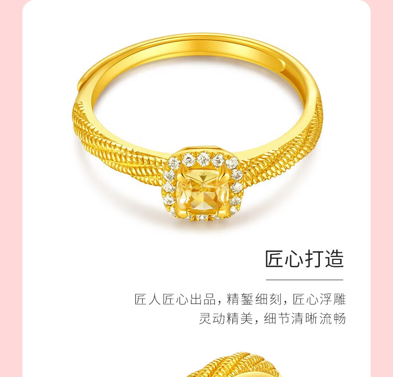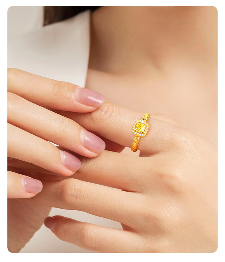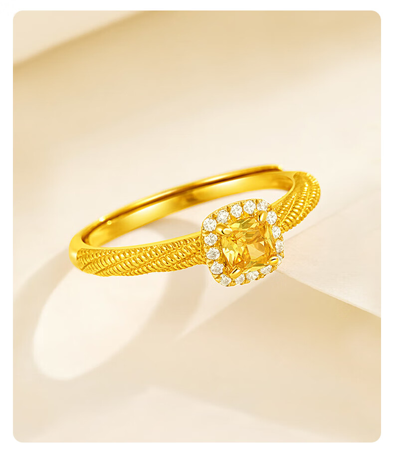 Lao Fengxiang gold ring for women, pure gold Internet celebrity small sugar cube popping live ring as a Mid-Autumn Festival gift for girlfriend’s mother, pure gold small sugar cube inlaid live ring about 2.85 grams