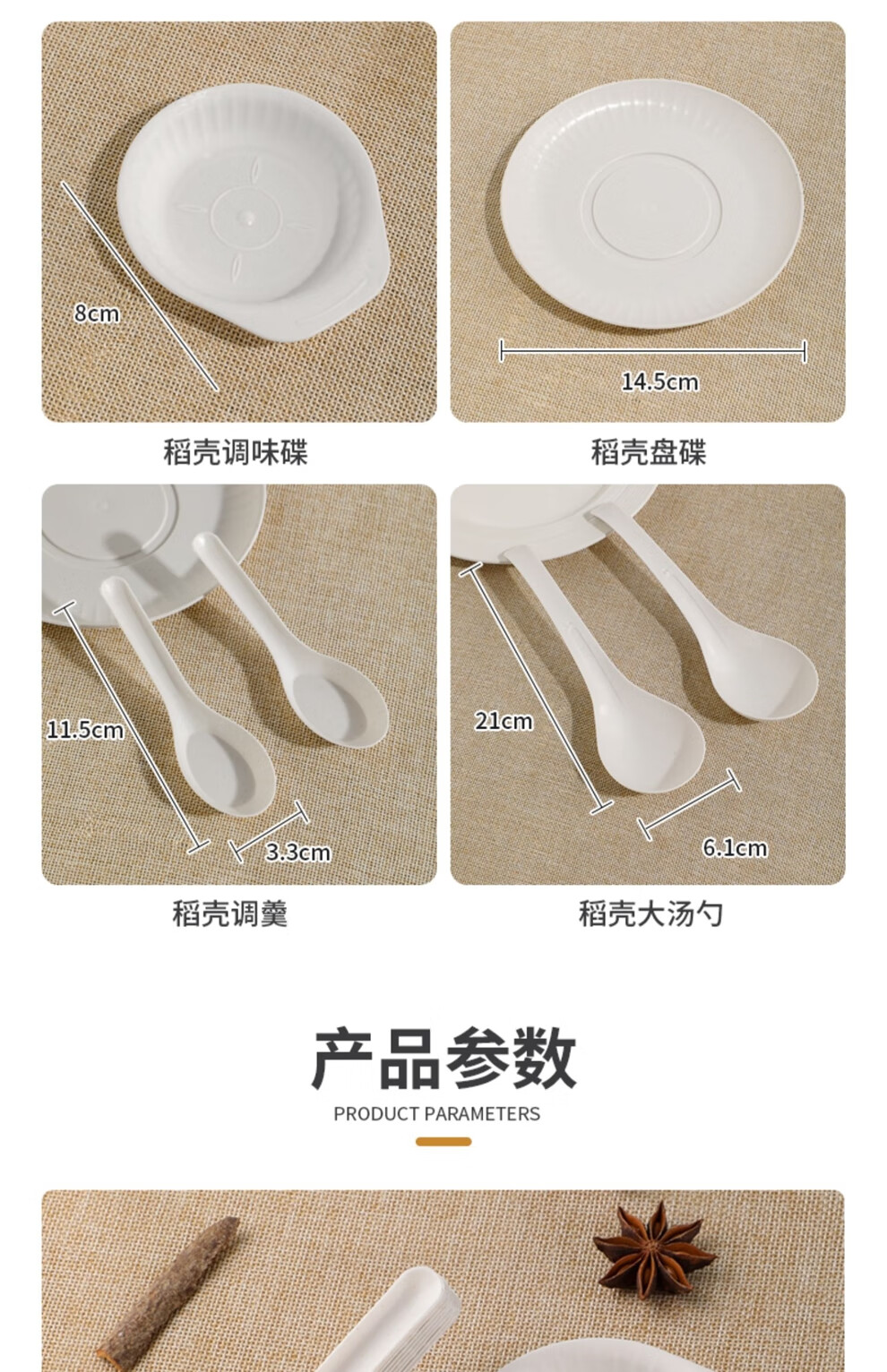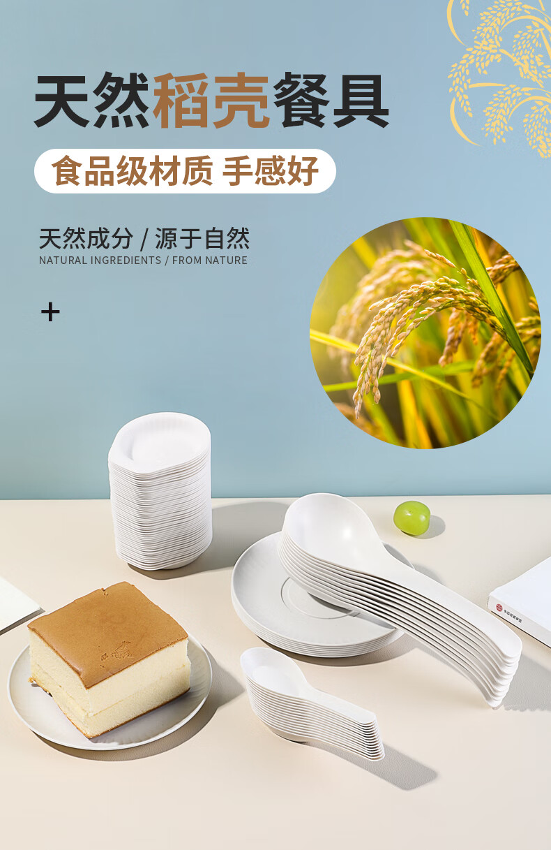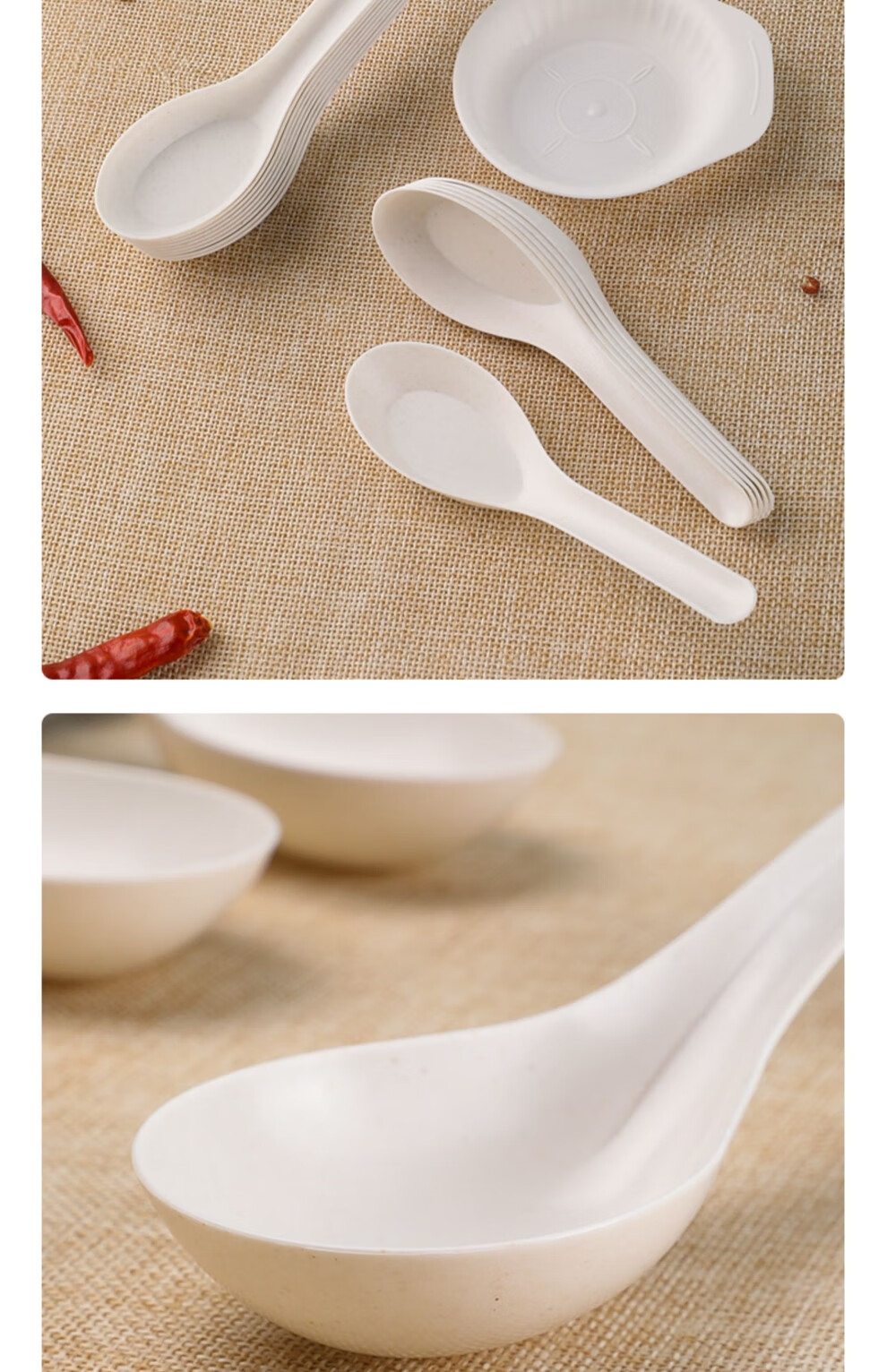 Riheshengtang Rice Husk Disposable Spoon Biodegradable Spoon Fast Food Takeaway Spoon Dessert Spoon Household Commercial Tableware Spoon Small Spoon 50 pcs