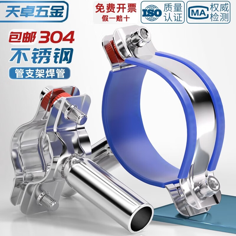 Tianzhuo Hardware 304 stainless steel pipe bracket water pipe fixed extended pipe pipe clamp pipe clamp round pipe welding hoop buckle PVC M32-34 304 material
