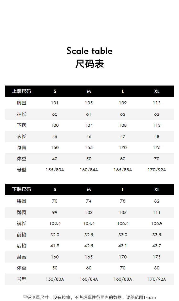 China (cm) 160-165/84-86 165-170 / 88-90 167-172 / 92-96 168-173 / 98-102 170-176 / 106-110