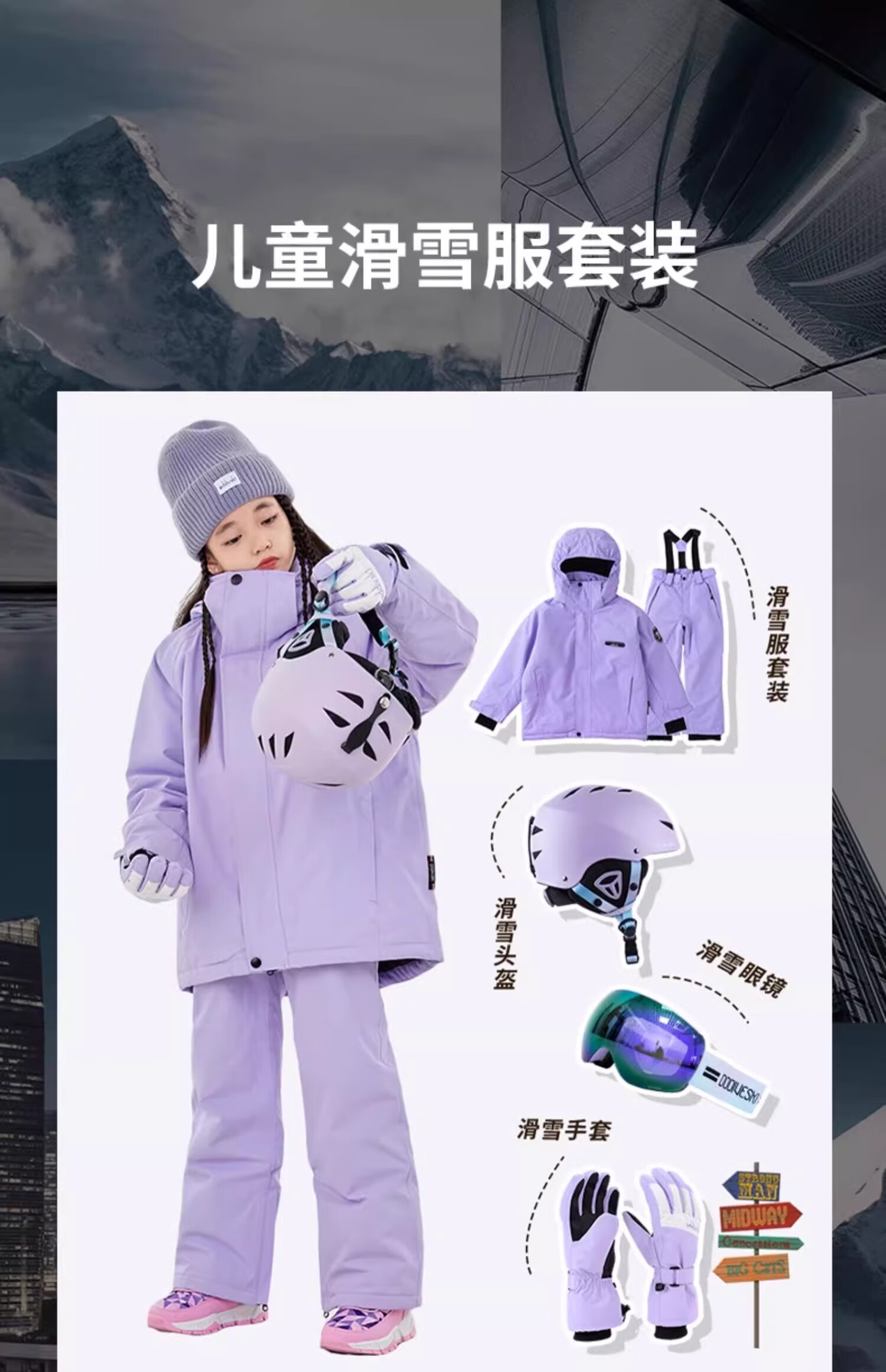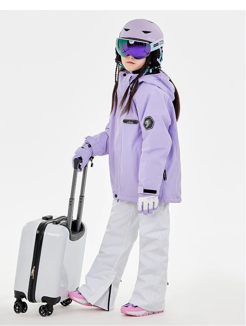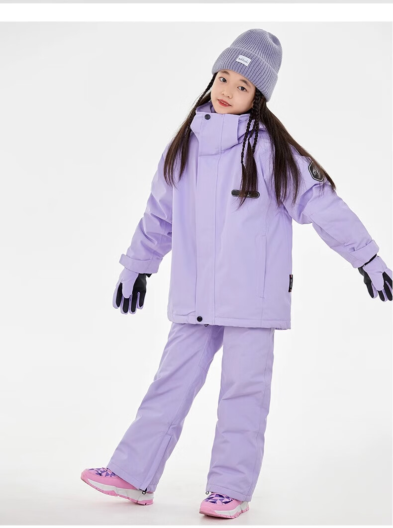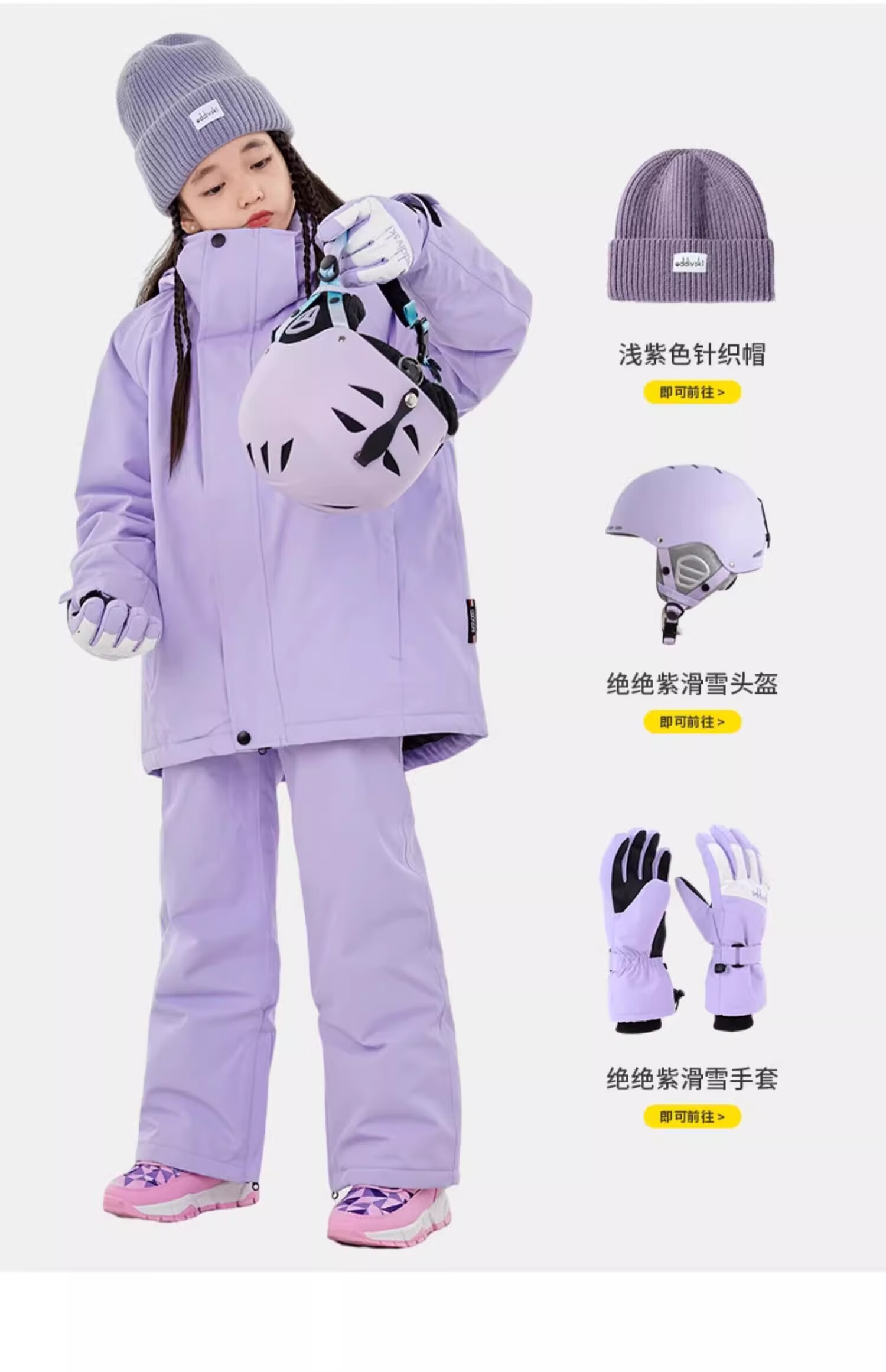 ODDIVSKI children's ski suit, girls' thickened, warm, waterproof and windproof outdoor ski suit and ski pants, complete set of equipment, absolutely purple suit, snow suit + snow pants 120cm