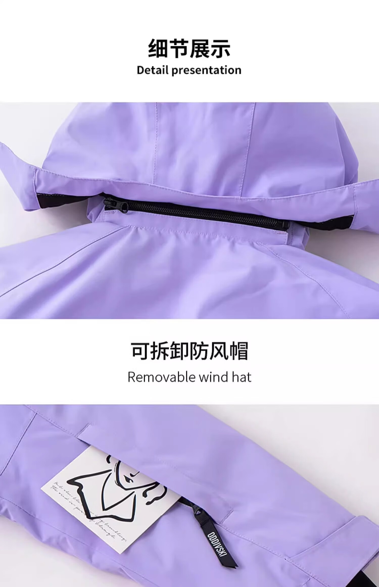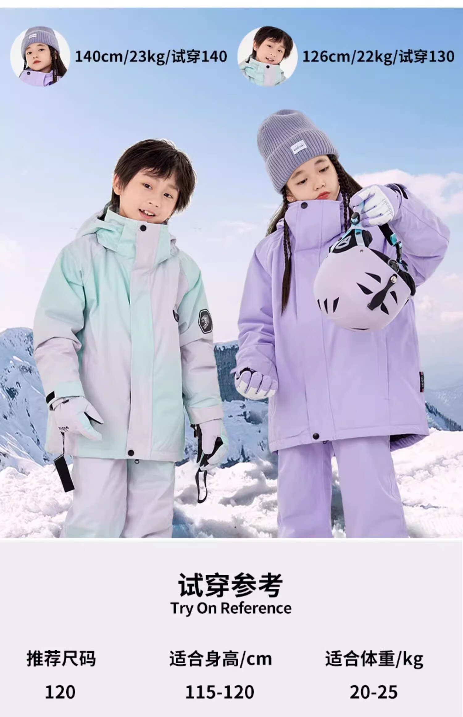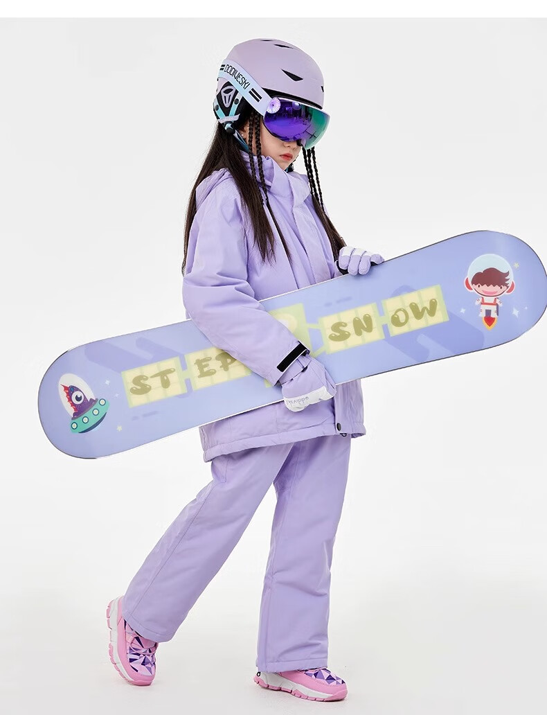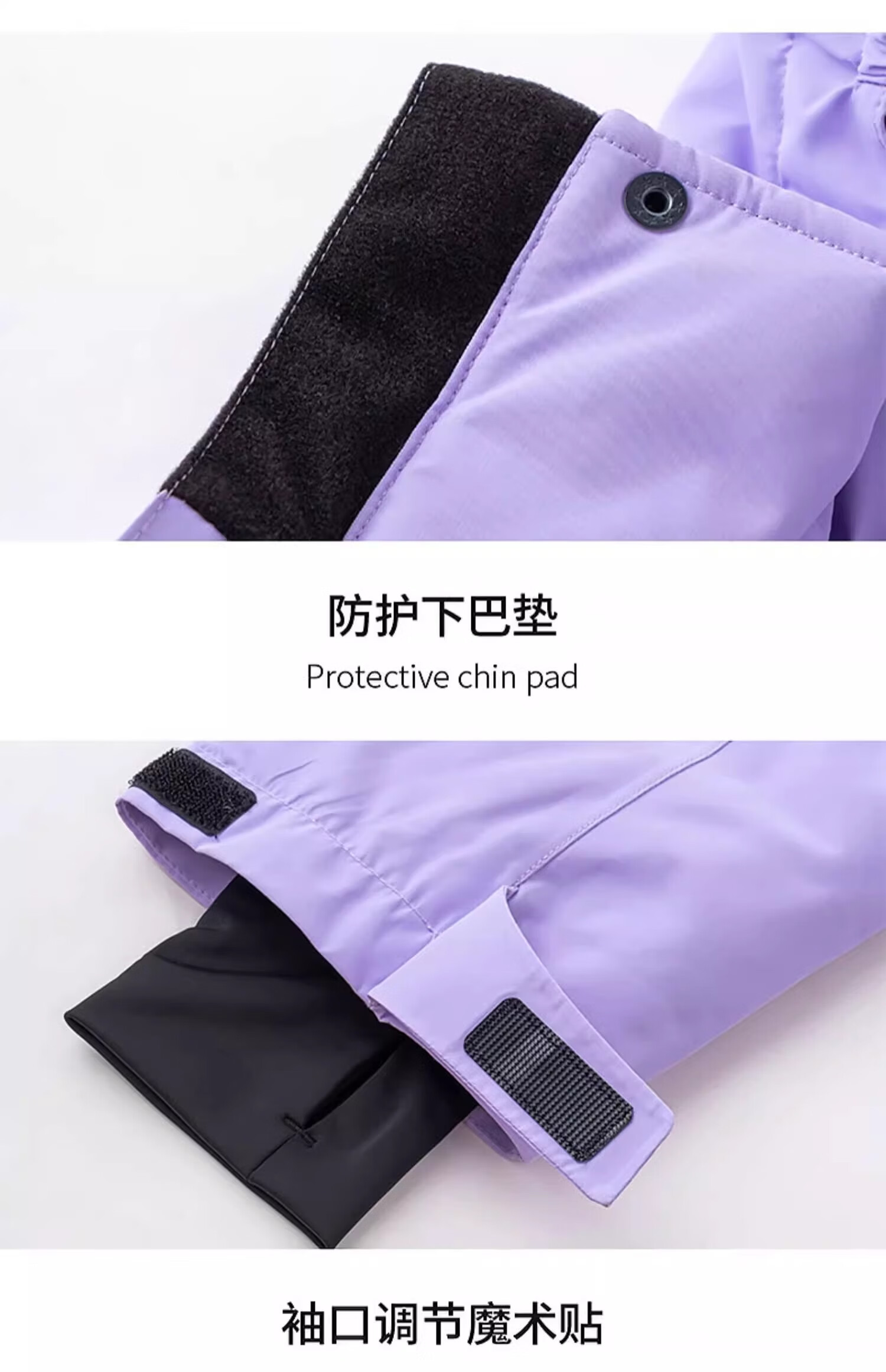 ODDIVSKI children's ski suit, girls' thickened, warm, waterproof and windproof outdoor ski suit and ski pants, complete set of equipment, absolutely purple suit, snow suit + snow pants 120cm