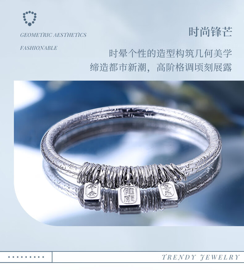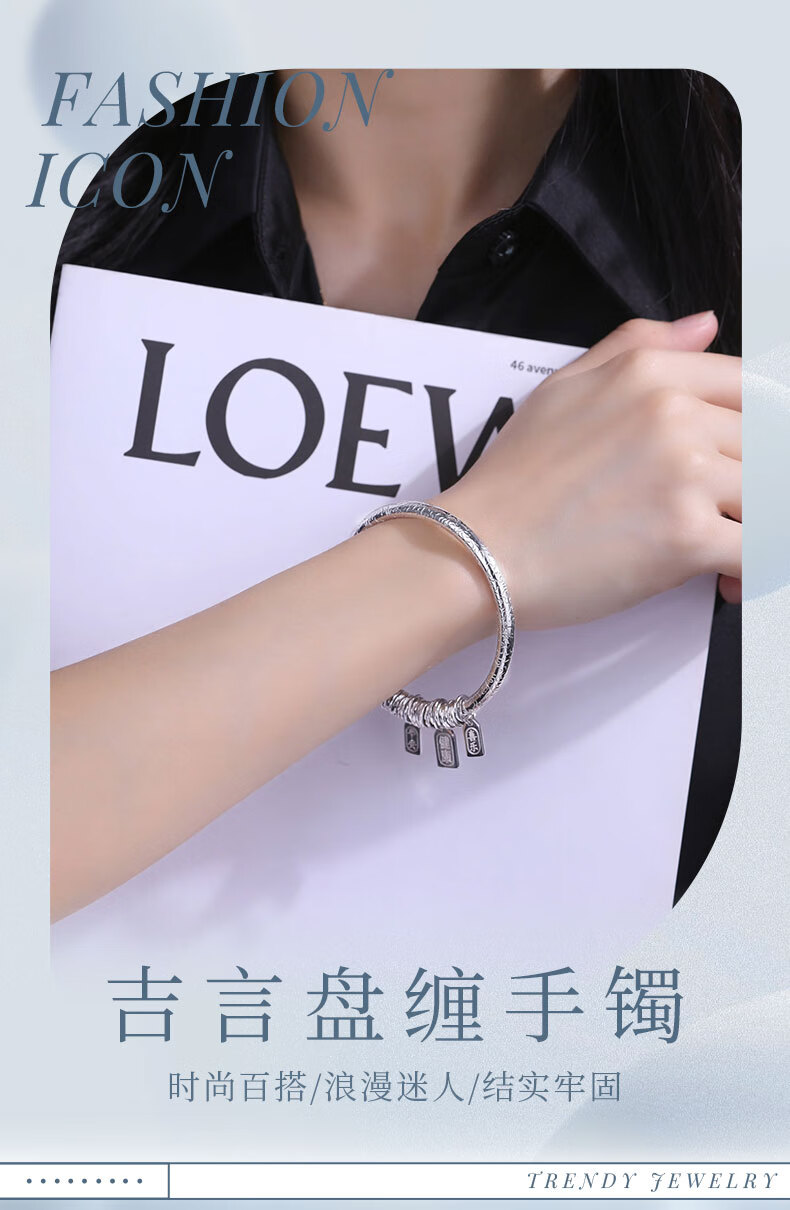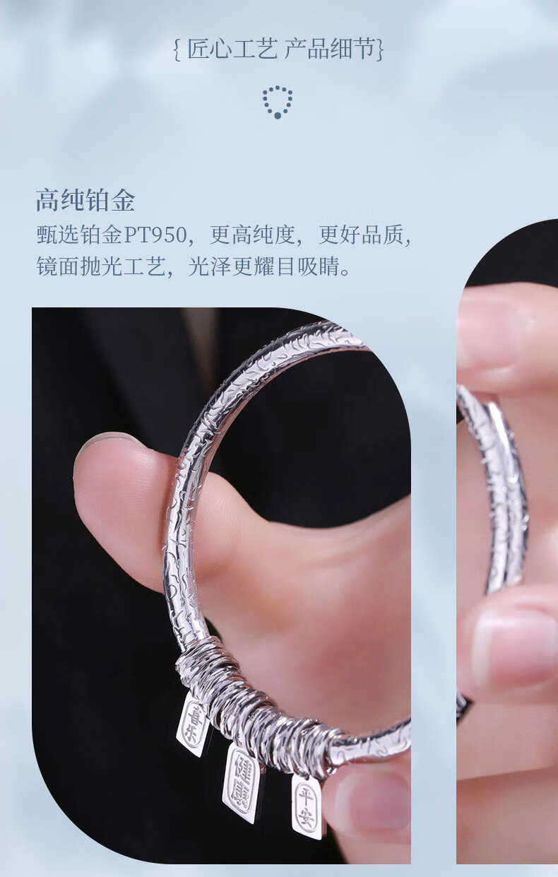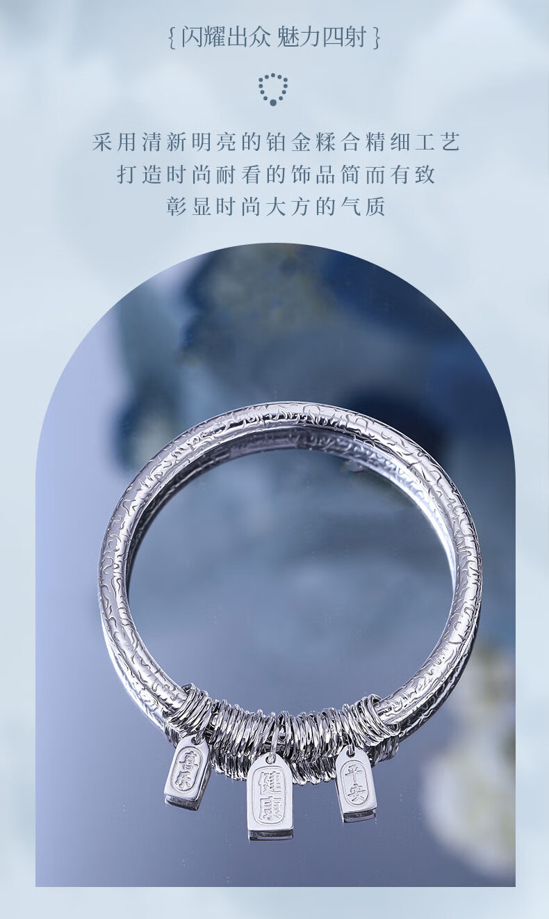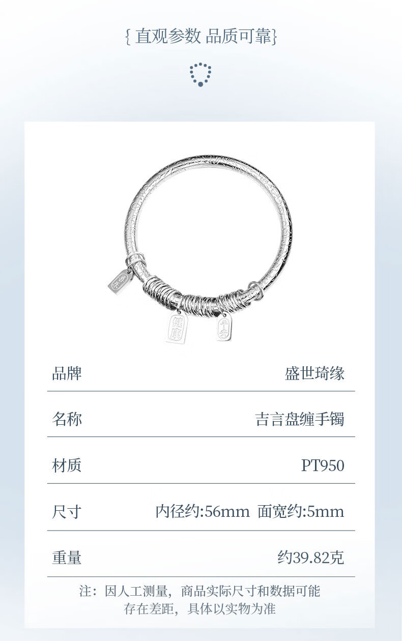 SHENGSHIQIYUAN pt950 platinum bracelet women's auspicious words platinum bracelet new auspicious words coiled bracelet platinum bracelet semi-solid inner diameter 54mm weight 39-40g thick about 5mm