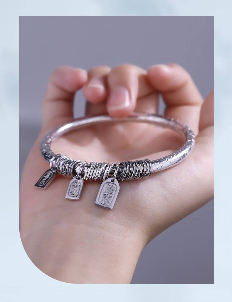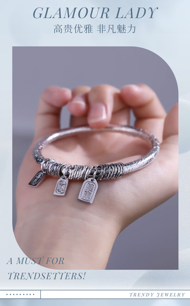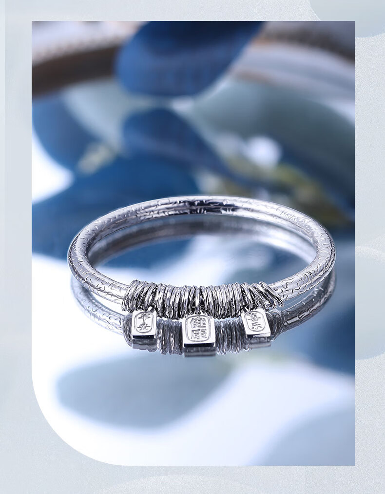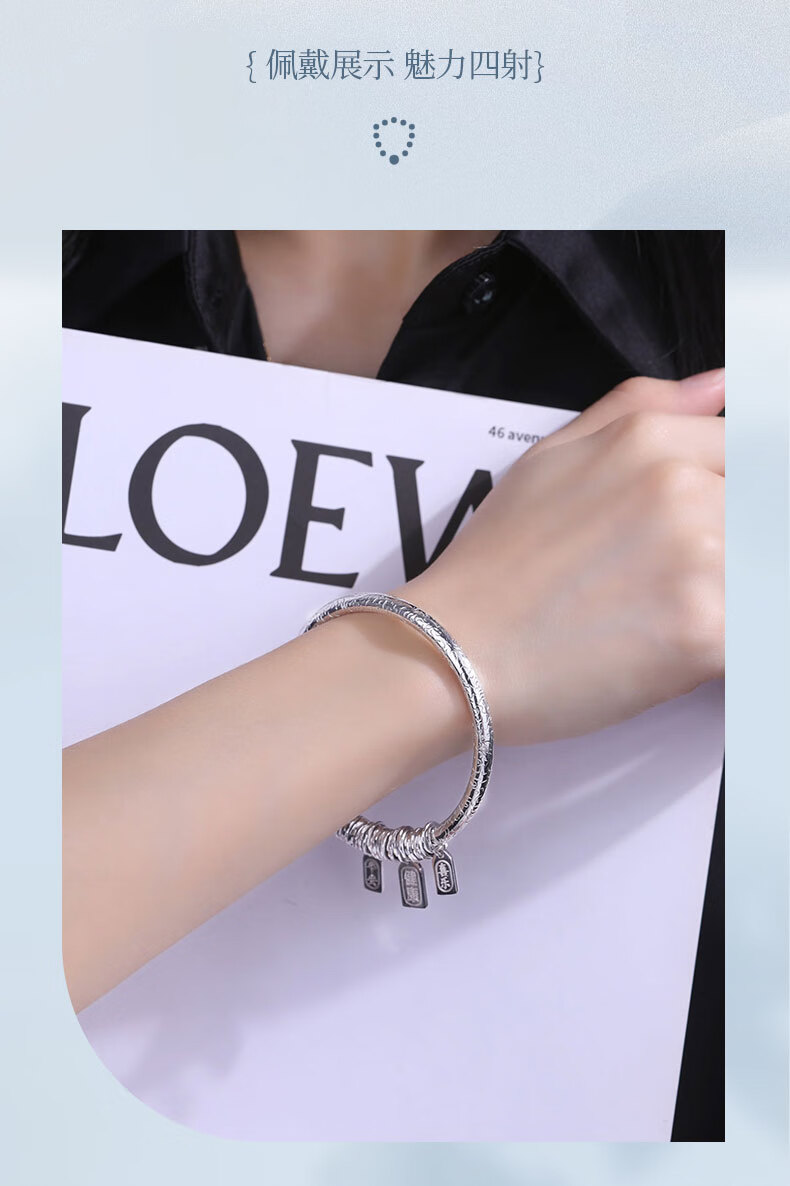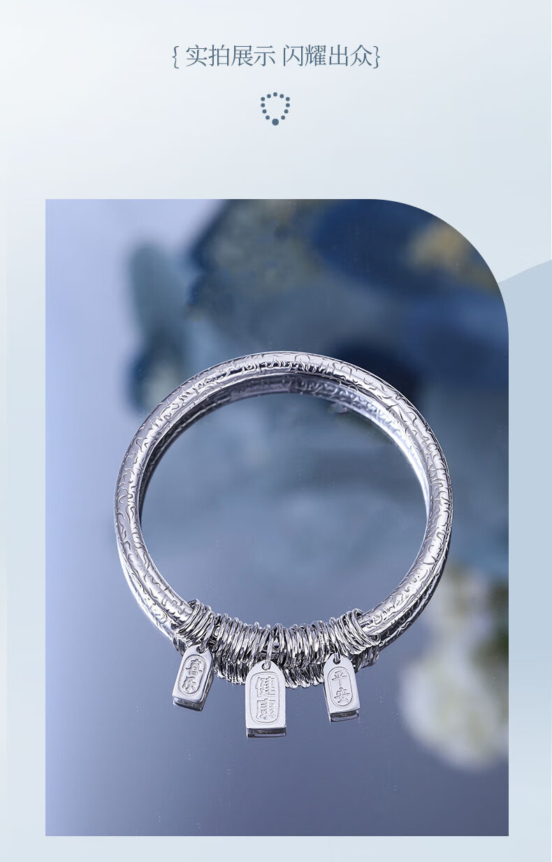 SHENGSHIQIYUAN pt950 platinum bracelet women's auspicious words platinum bracelet new auspicious words coiled bracelet platinum bracelet semi-solid inner diameter 54mm weight 39-40g thick about 5mm