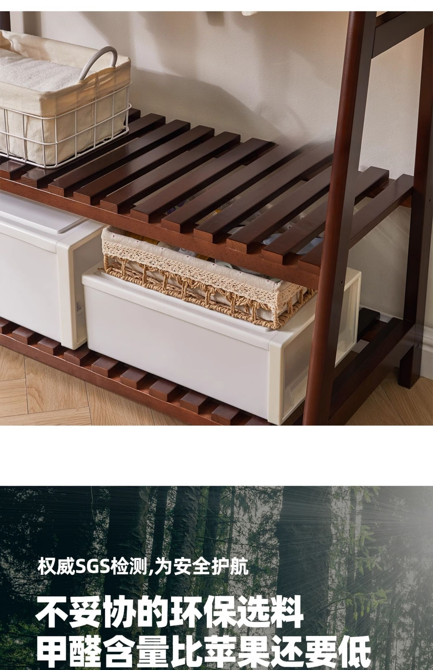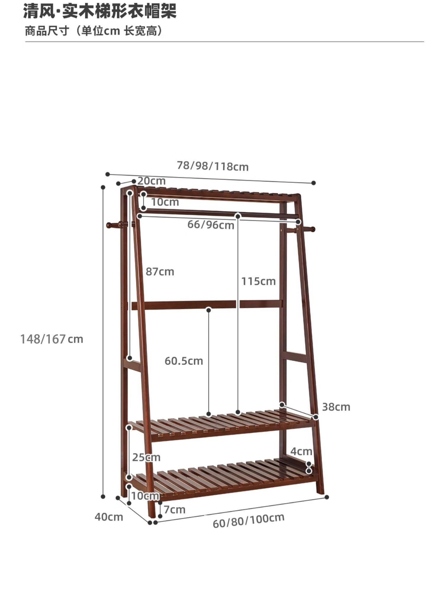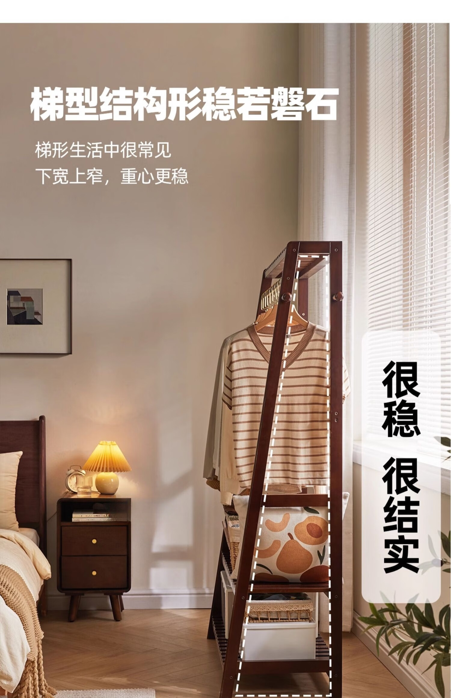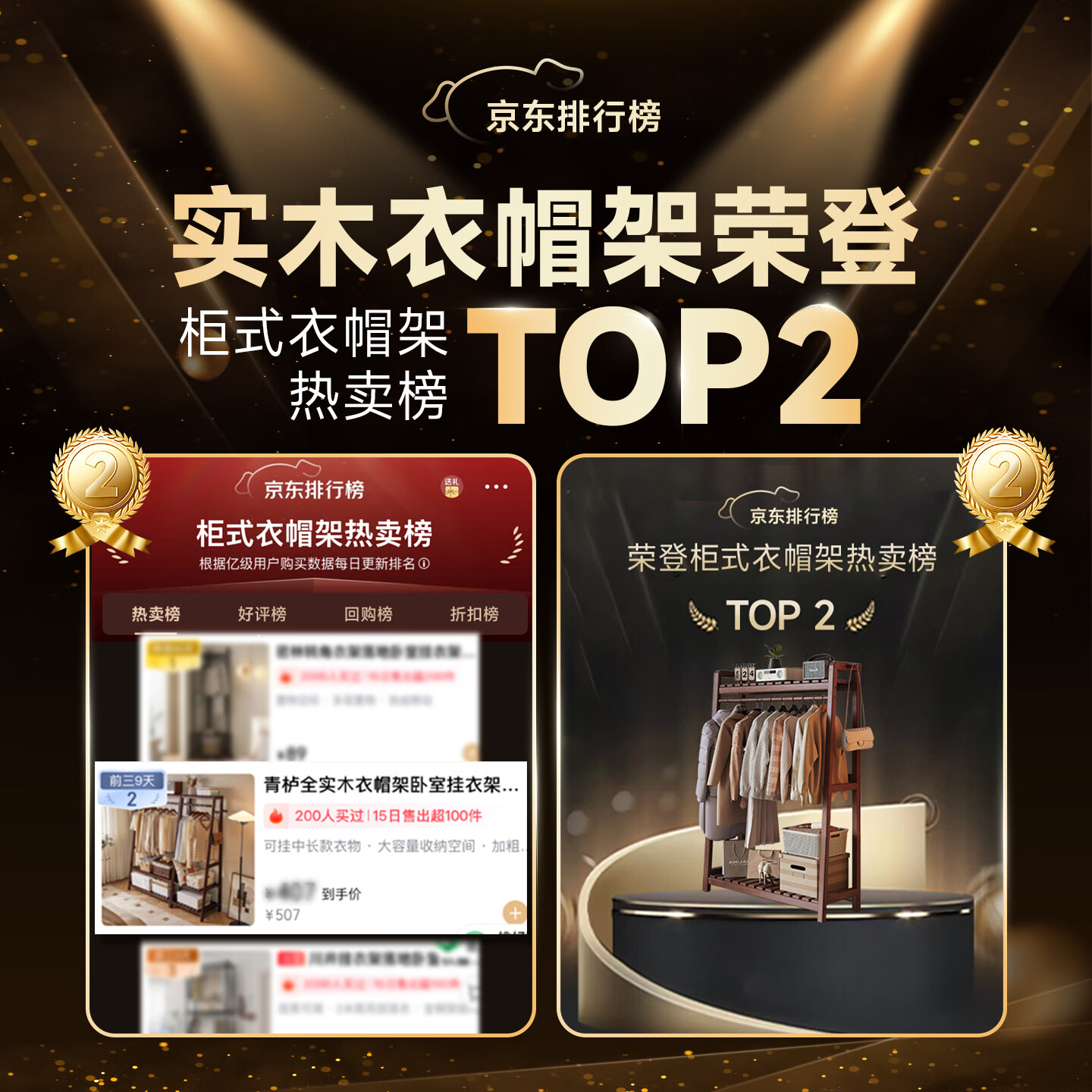 Qingju all solid wood coat rack bedroom clothes rack room storage rack high-end multi-functional new floor-standing clothes rack Heightened double-layer walnut color 118cm German imported SUP grade beech wood + door-to-door delivery