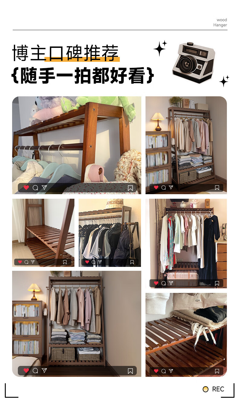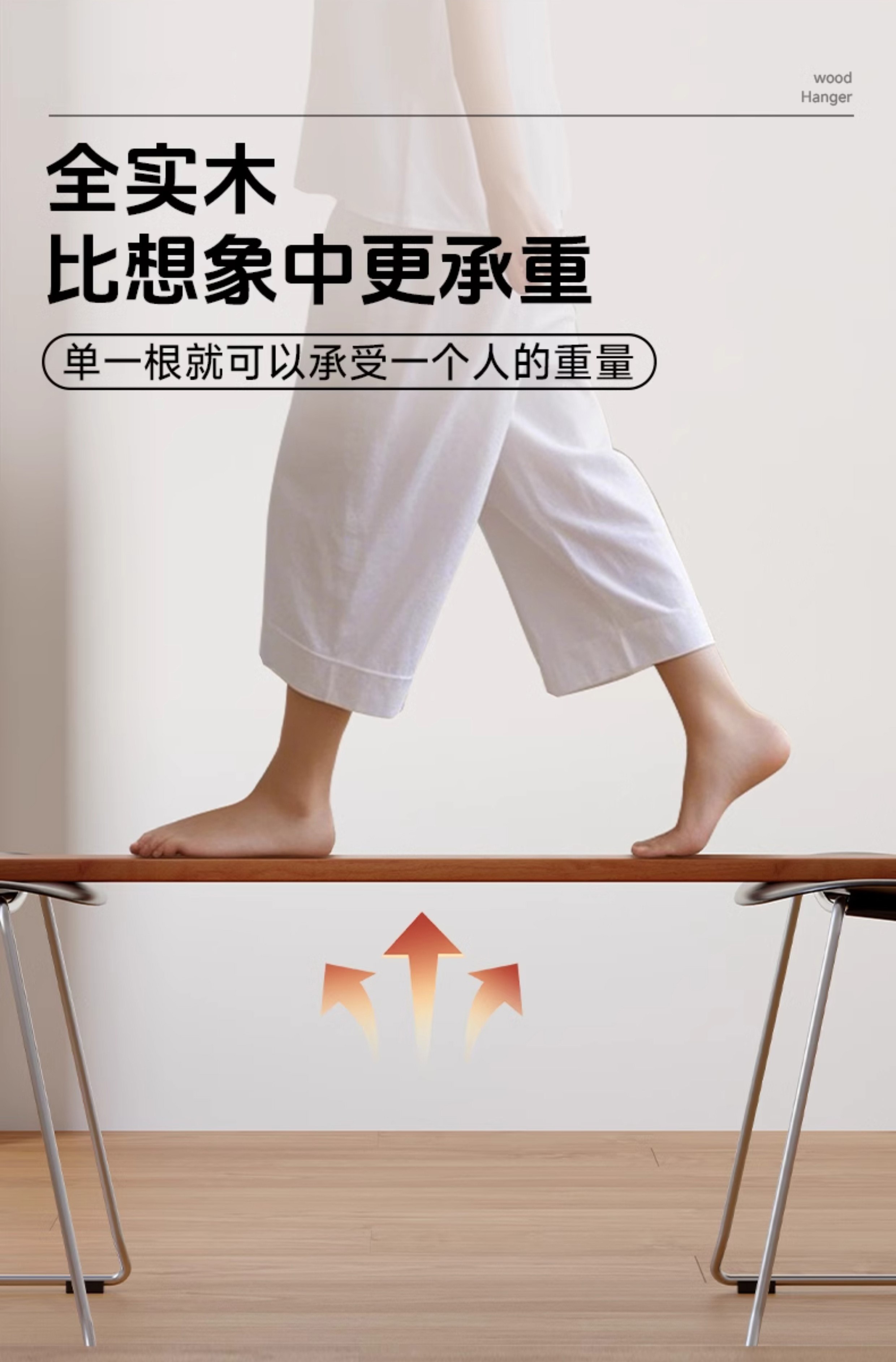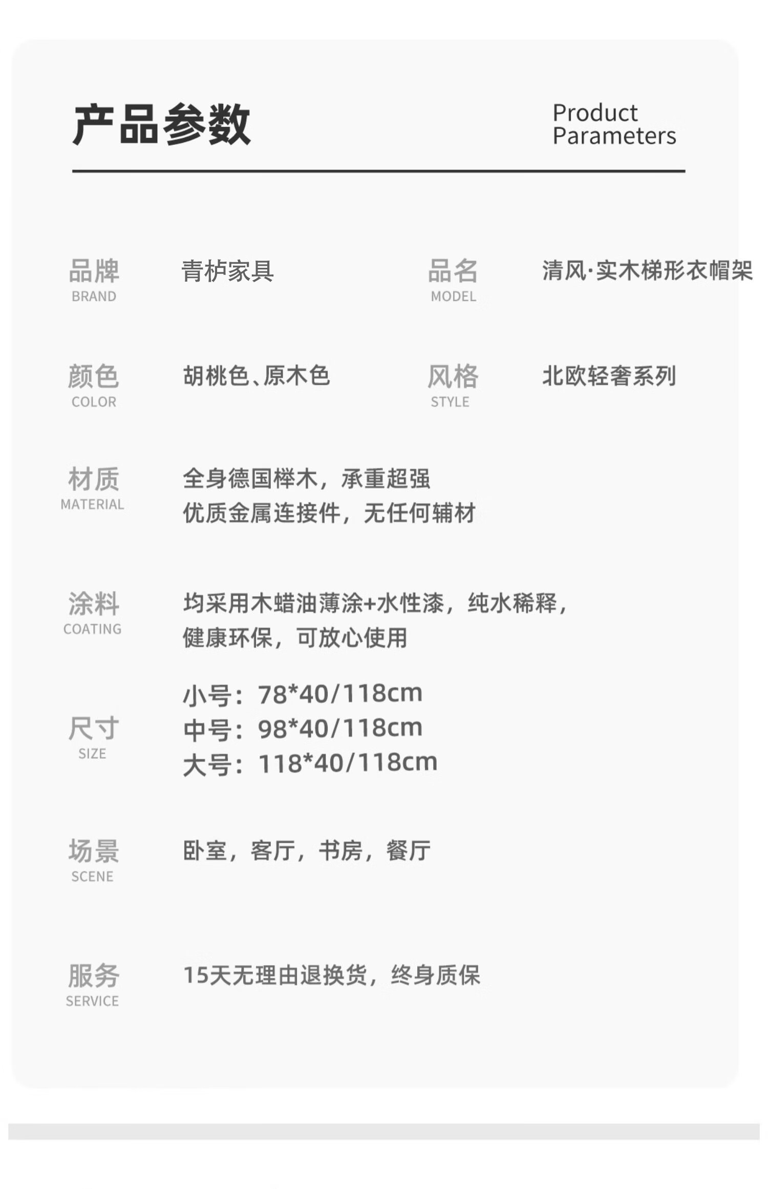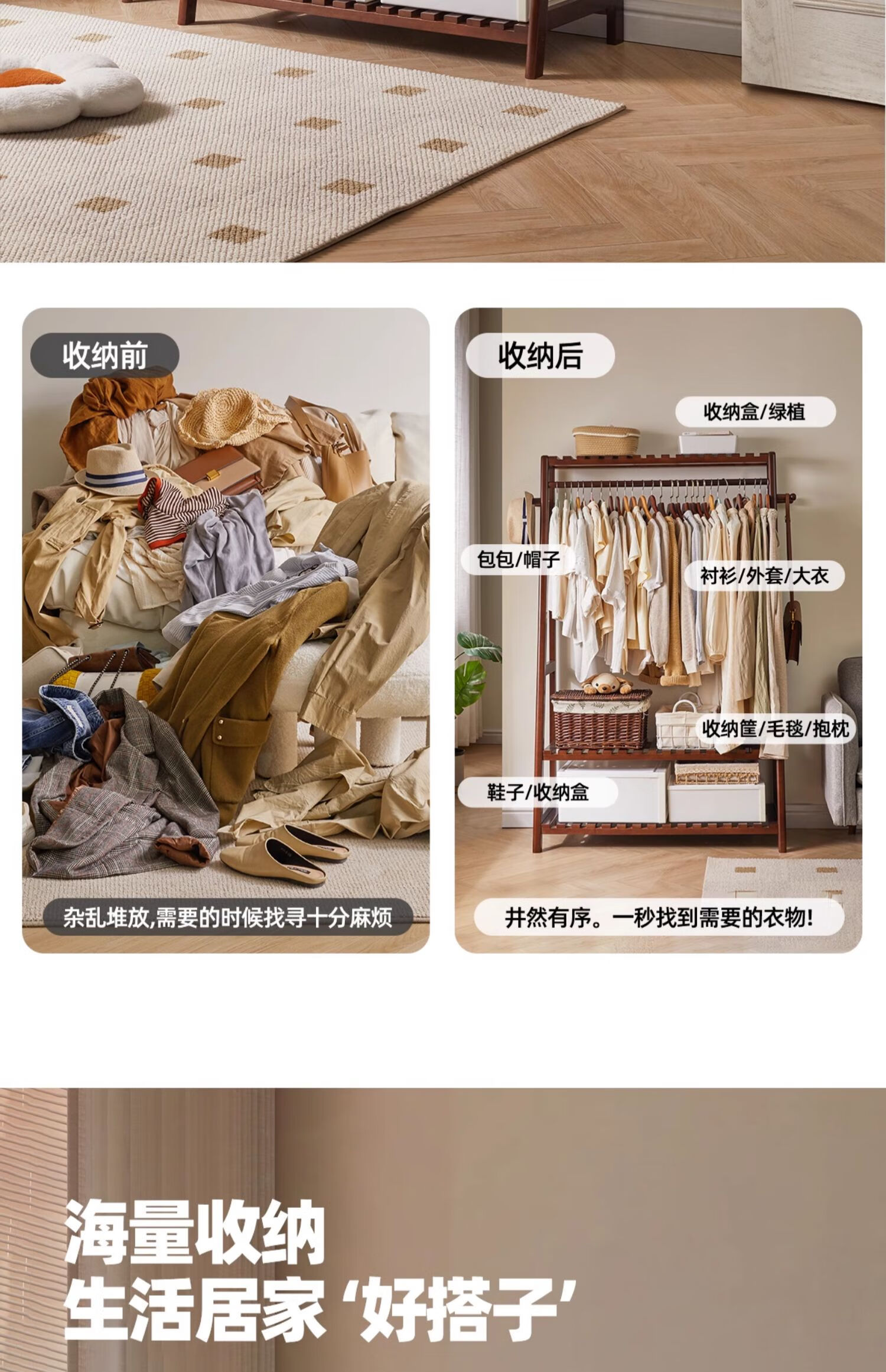 Qingju all solid wood coat rack bedroom clothes rack room storage rack high-end multi-functional new floor-standing clothes rack Heightened double-layer walnut color 118cm German imported SUP grade beech wood + door-to-door delivery