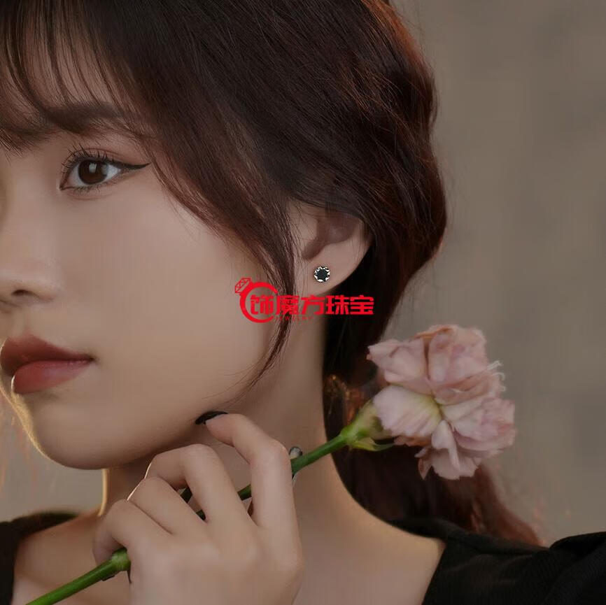 Guanpu Pavilion Fat Donglai's same style men's platinum earrings PT950 black agate men's and women's niche design no-removal platinum earrings platinum black agate earrings