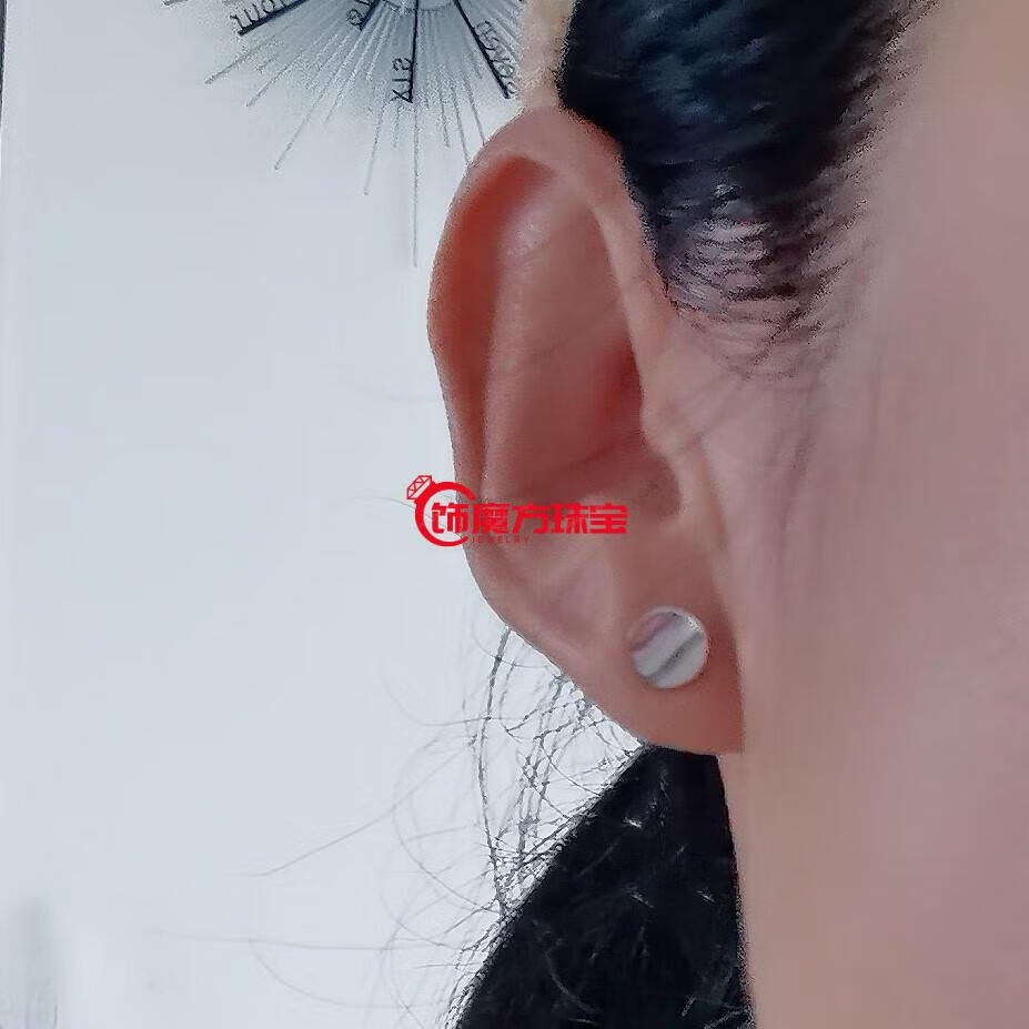 Guanpu Pavilion Fat Donglai same style men's platinum earrings geometric design glossy pt950 fashion single round hollow earrings about 1 gram single in stock