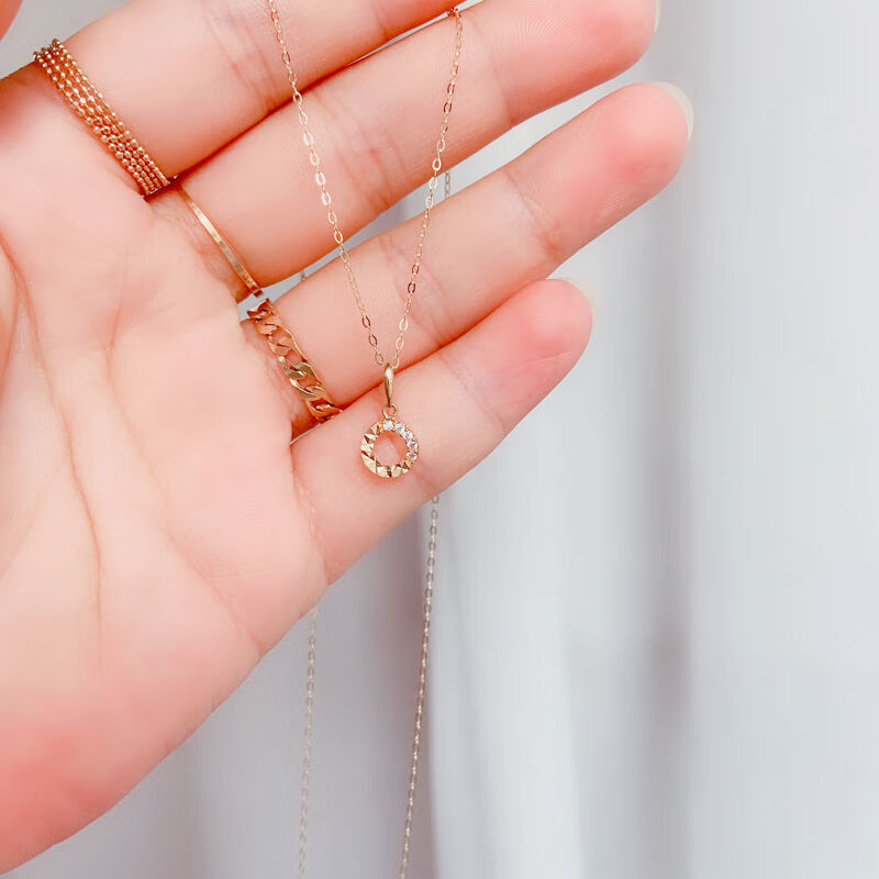 DYN South Korea imported pure 14K gold pendant for women with faceted hollow donut small ring k gold clavicle chain pendant for women individual pendant