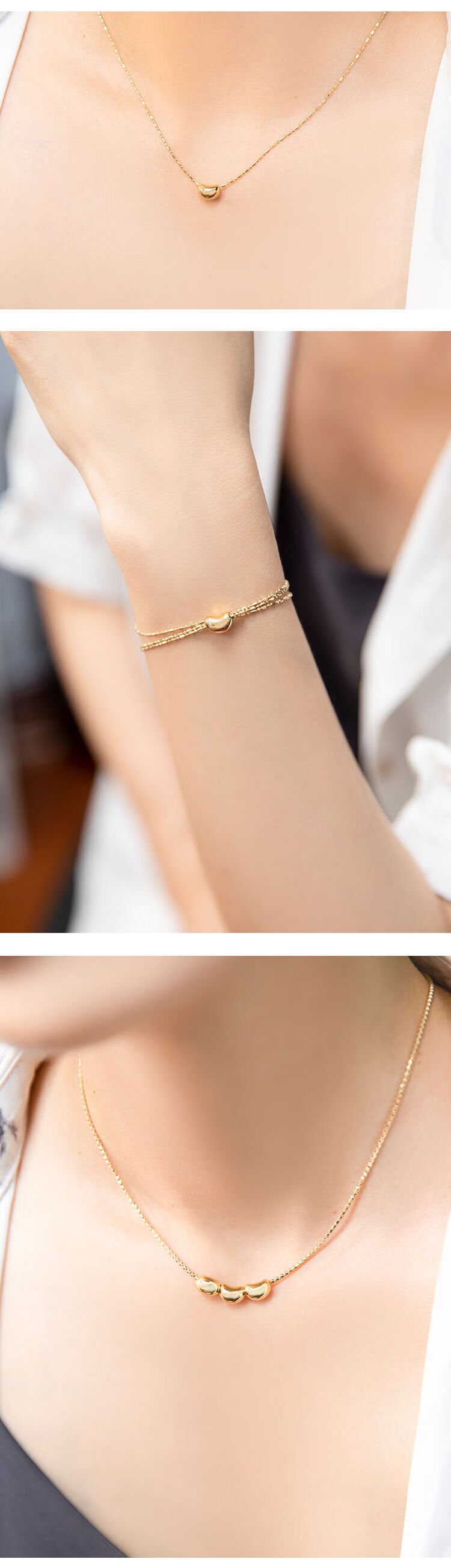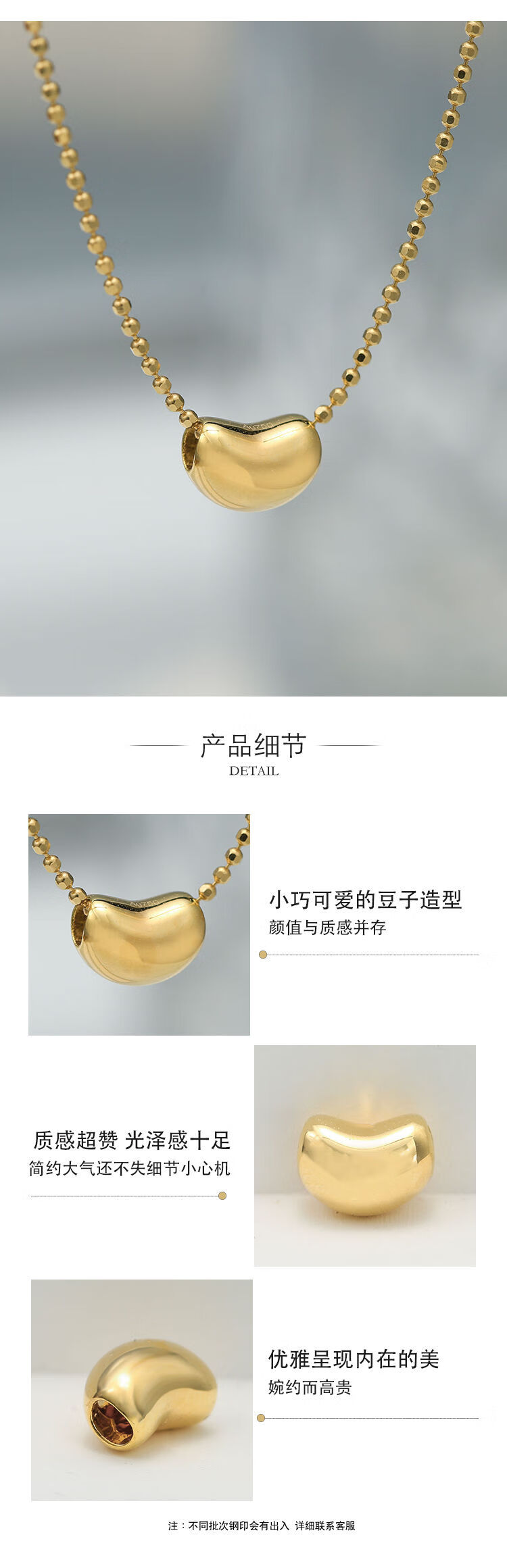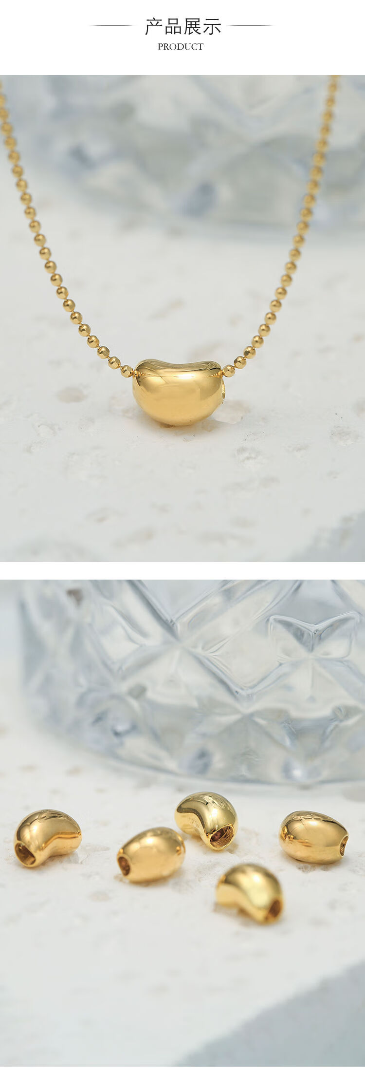 DYN Acacia 18K gold plain gold red bean ins pea pendant sweet cool casual versatile loose bead necklace light gold customized (1 piece) about 0.12g