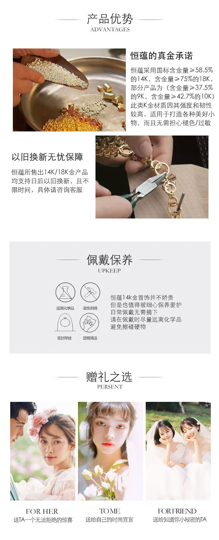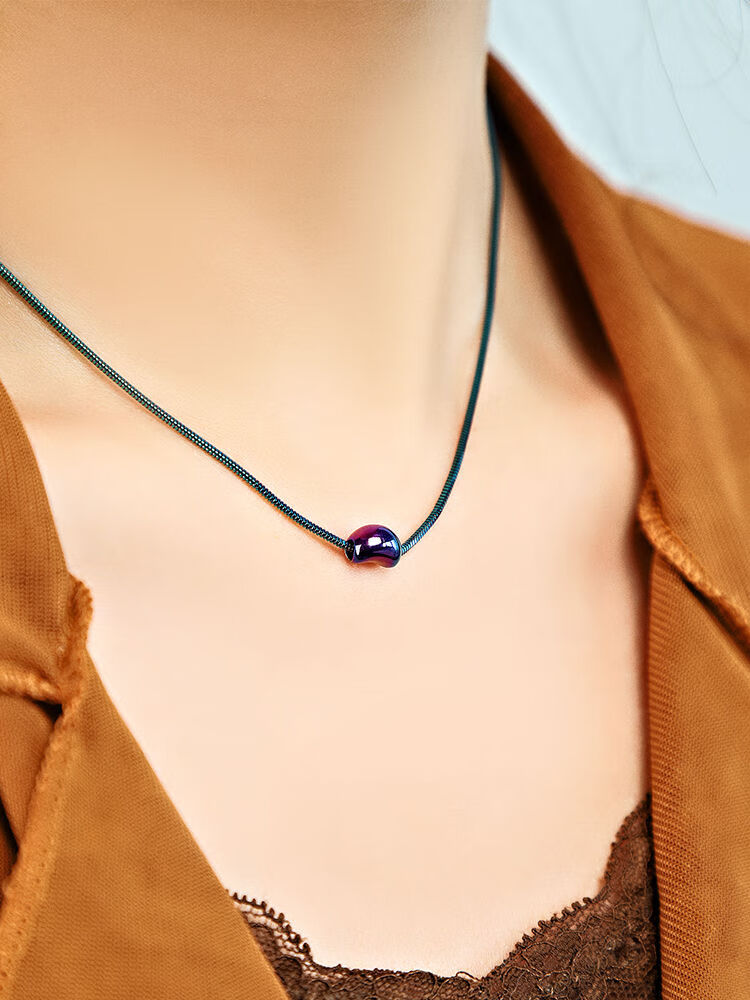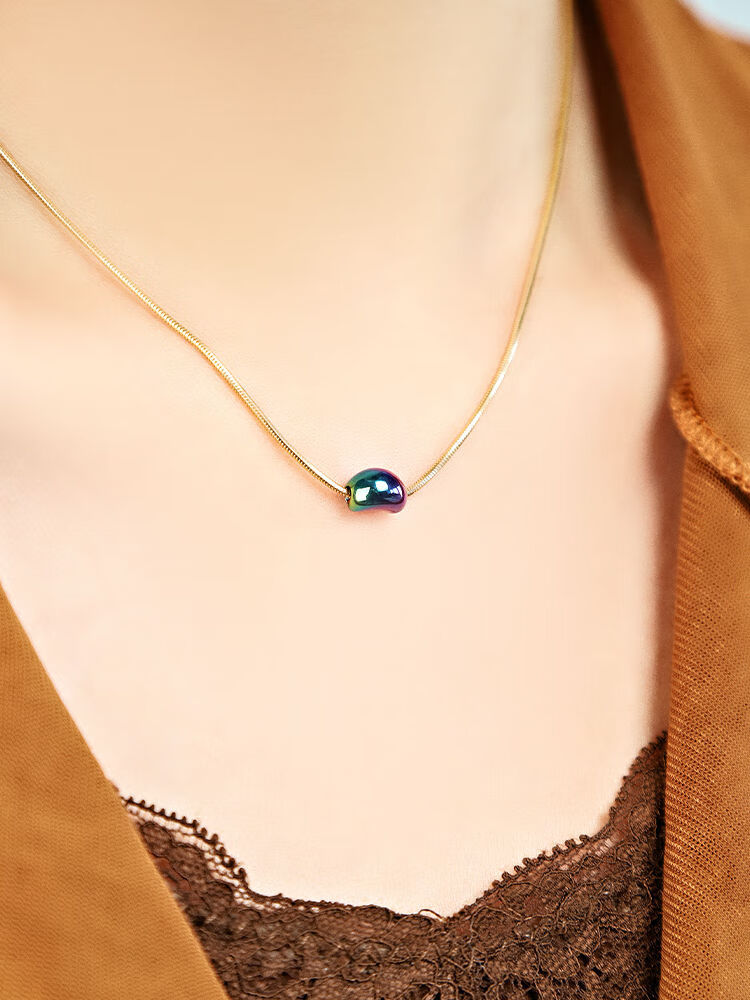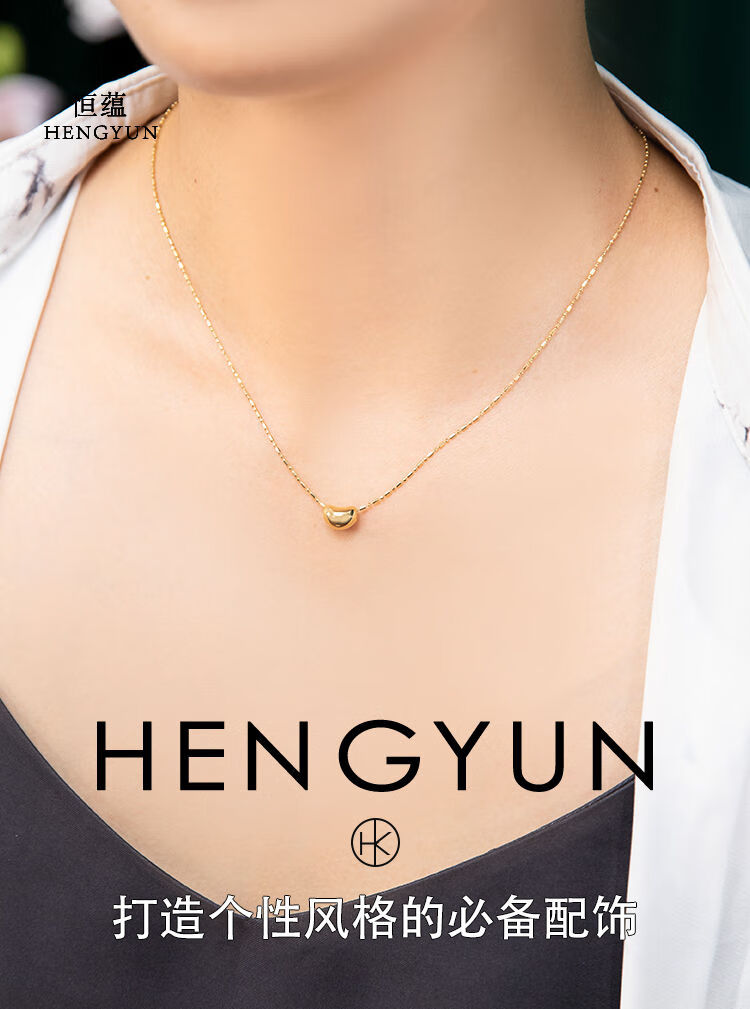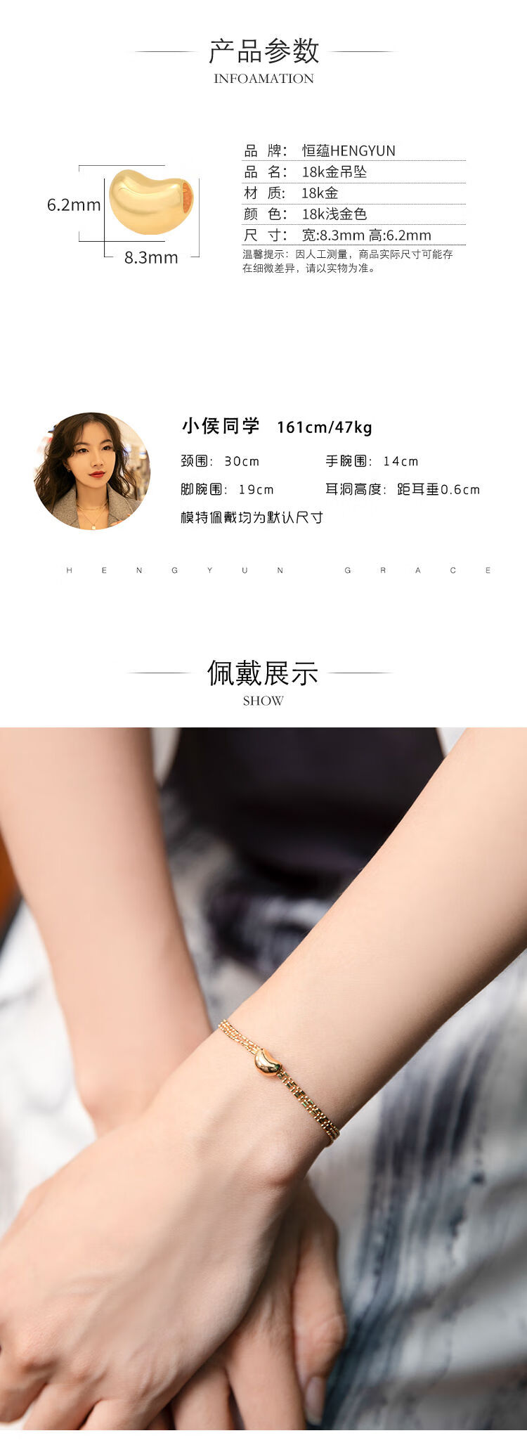 DYN Acacia 18K gold plain gold red bean ins pea pendant sweet cool casual versatile loose bead necklace light gold customized (1 piece) about 0.12g