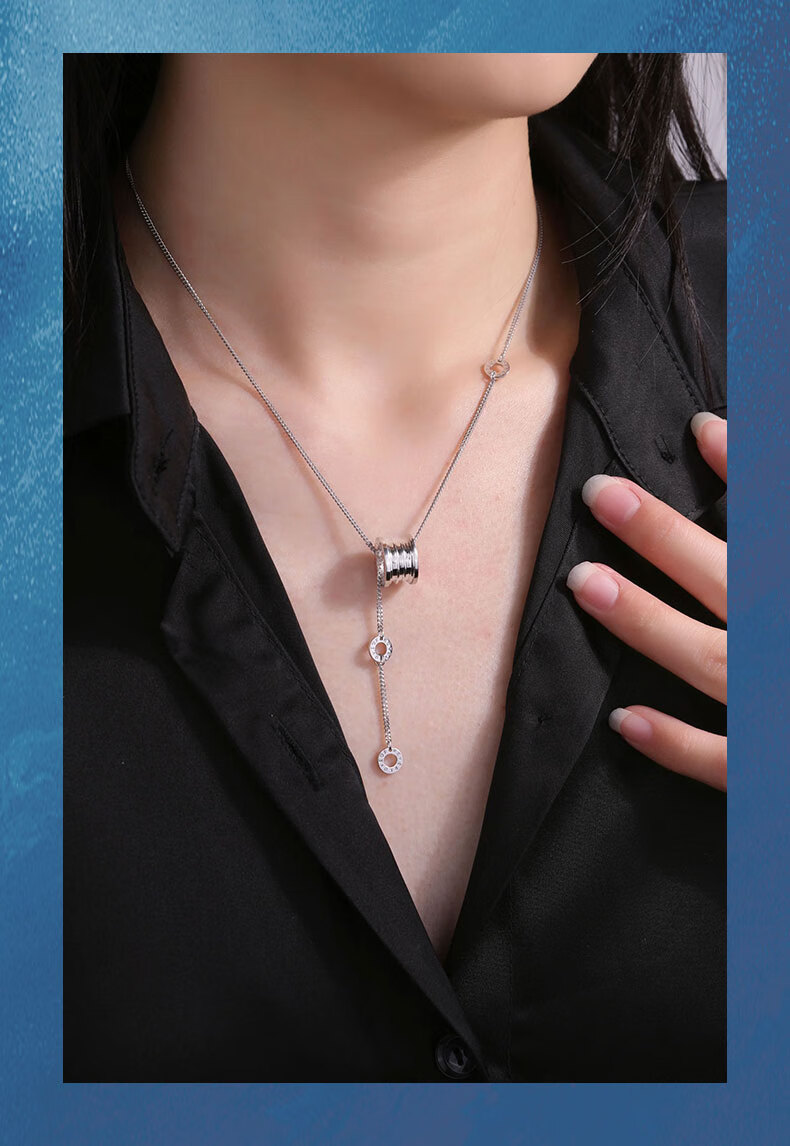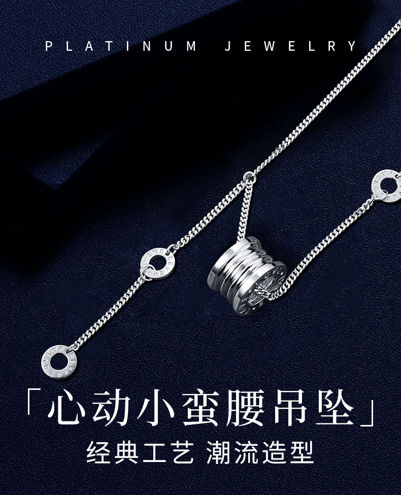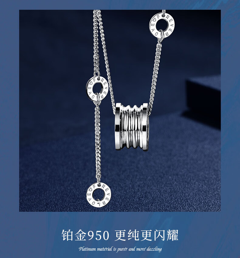 Shengshi Qiyuan pt950 platinum necklace for women platinum platinum necklace women's sweater chain new platinum small waist necklace for girlfriend 14.16g heart-beating small waist necklace