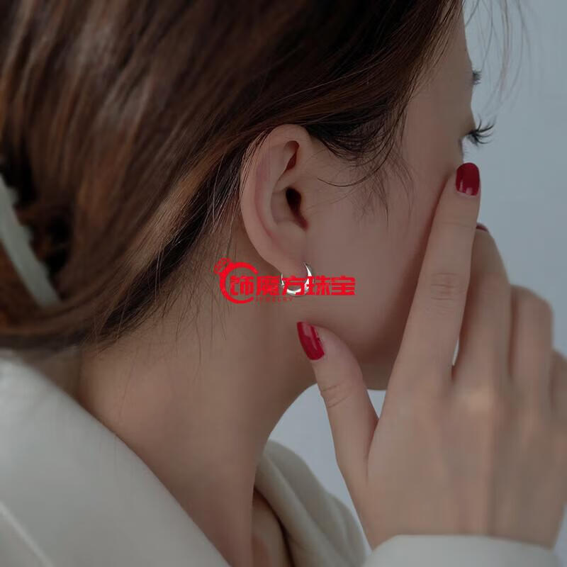 Guanpu Pavilion Fat Donglai's same style pt950 platinum plain hoop earrings PT950 women's simple and versatile ear hoops with a sense of temperament earrings for girls, small fat hoop earrings