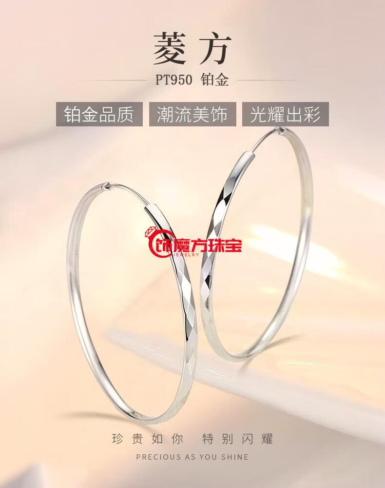 Guanpu Pavilion Fat Donglai's same style pt950 platinum earrings large hoop PT950 diamond square women's plain hoop 2024 new style simple and versatile pair of platinum diamond square earrings (30mm)